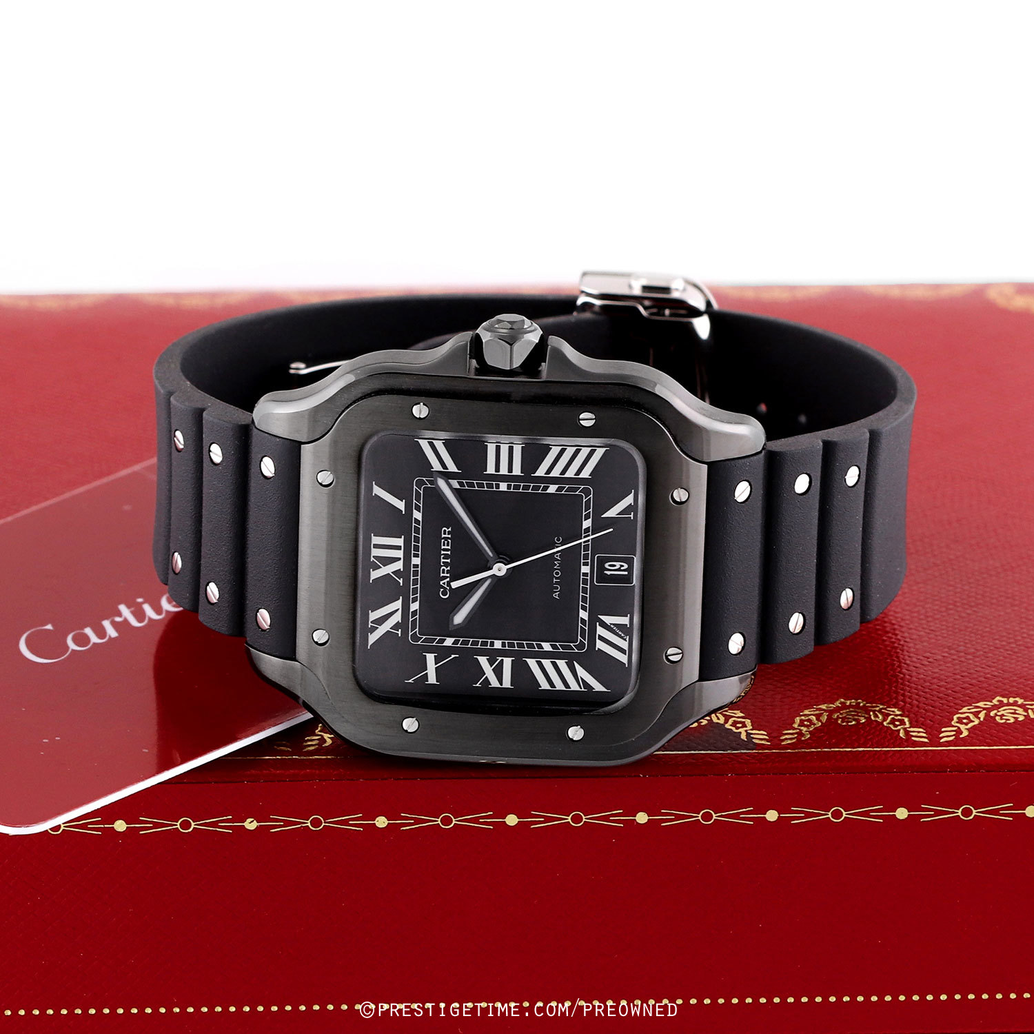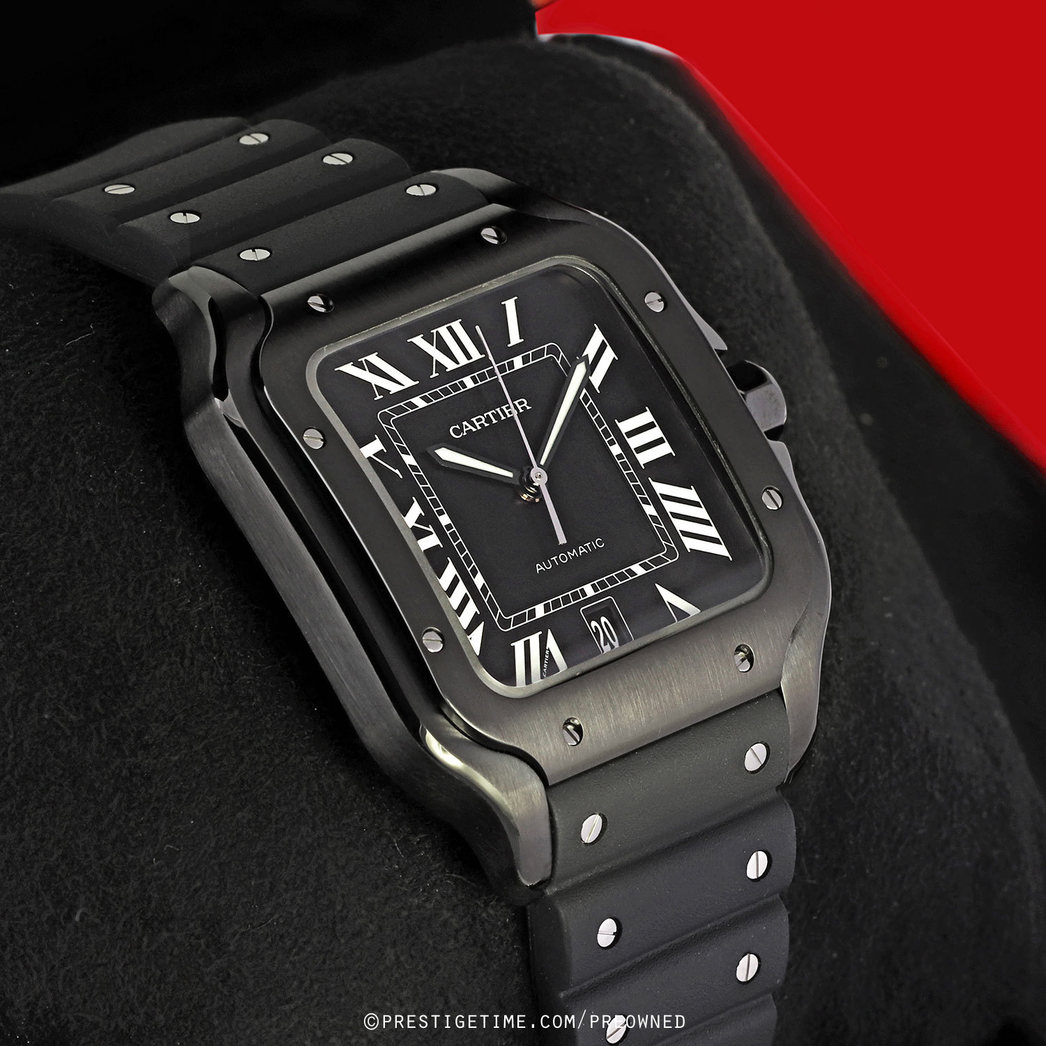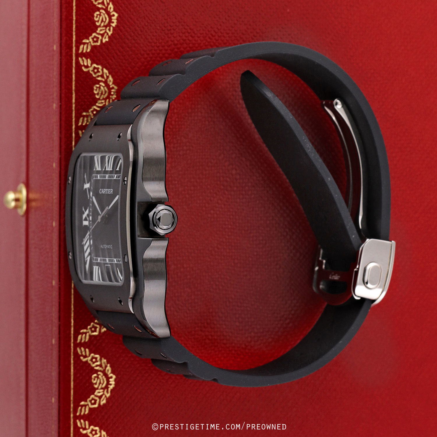 - Fitted on a Cartier original black rubber strap, featuring polished screw accents and with an interchangeable stainless deployant buckle. The strap is excellent near-new condition with only very light signs of wear & with its full wear lifespan remaining. We would be comfortable rating this strap as in 99% condition.