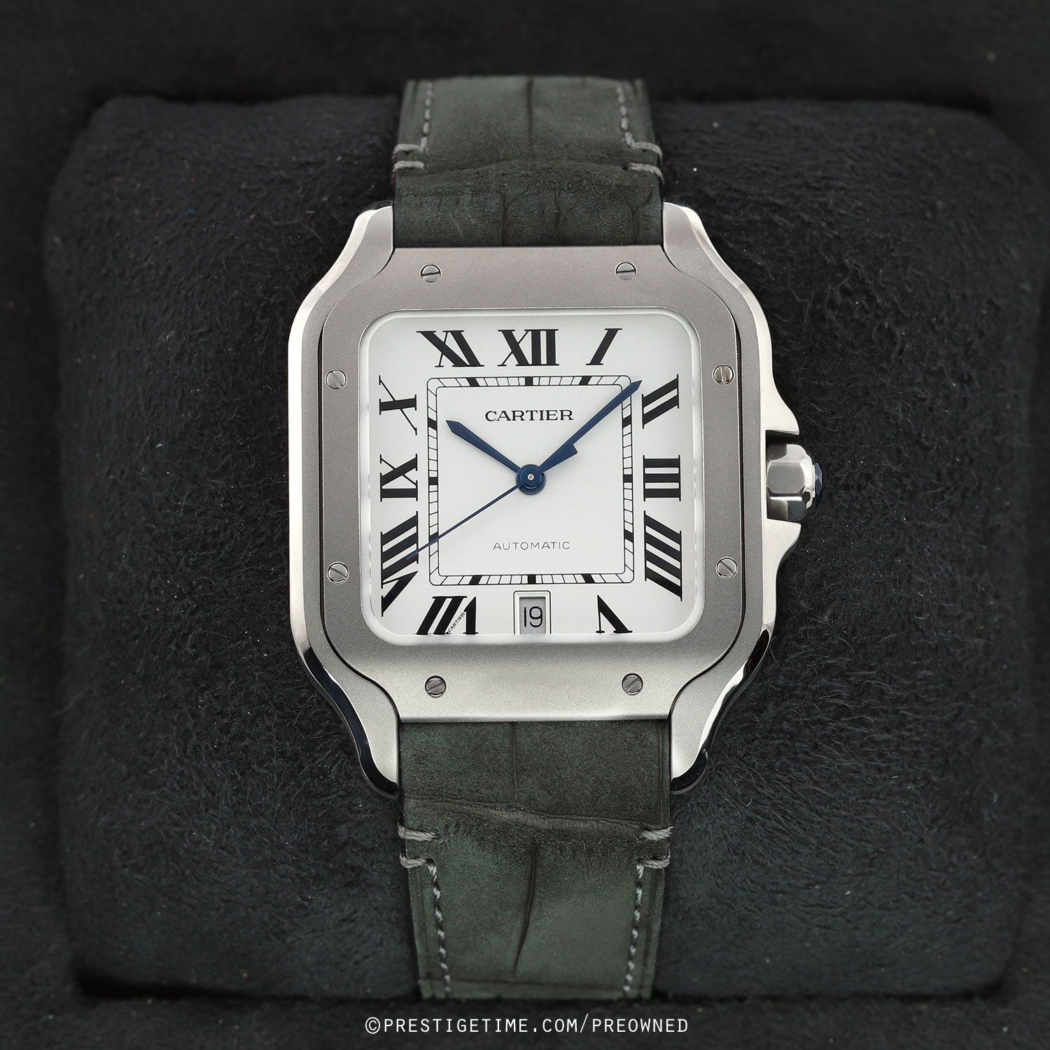 - Delivered with an addition Cartier original dark grey nuck (semi-rawhide finish) grey alligator leather strap with a stainless steel deployant clasp. The strap is unworn, brand new & crisp with its full wear lifespan remaining.