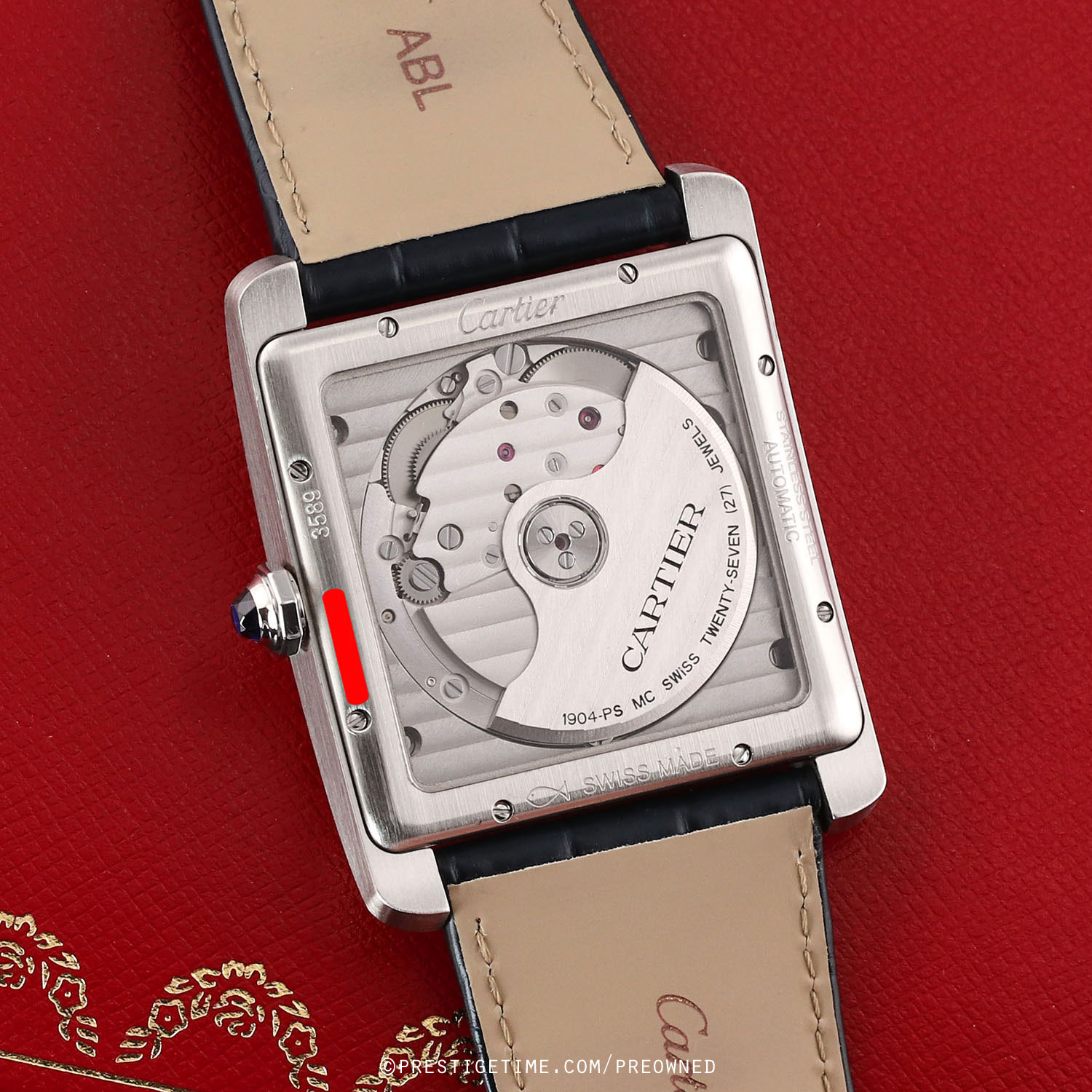 Movement: Powered by a Cartier in-house manufactured caliber 1904-PS MC, beats at 28,800 vph, contains 27 jewels & has a power reserve of +/- 42 hours.