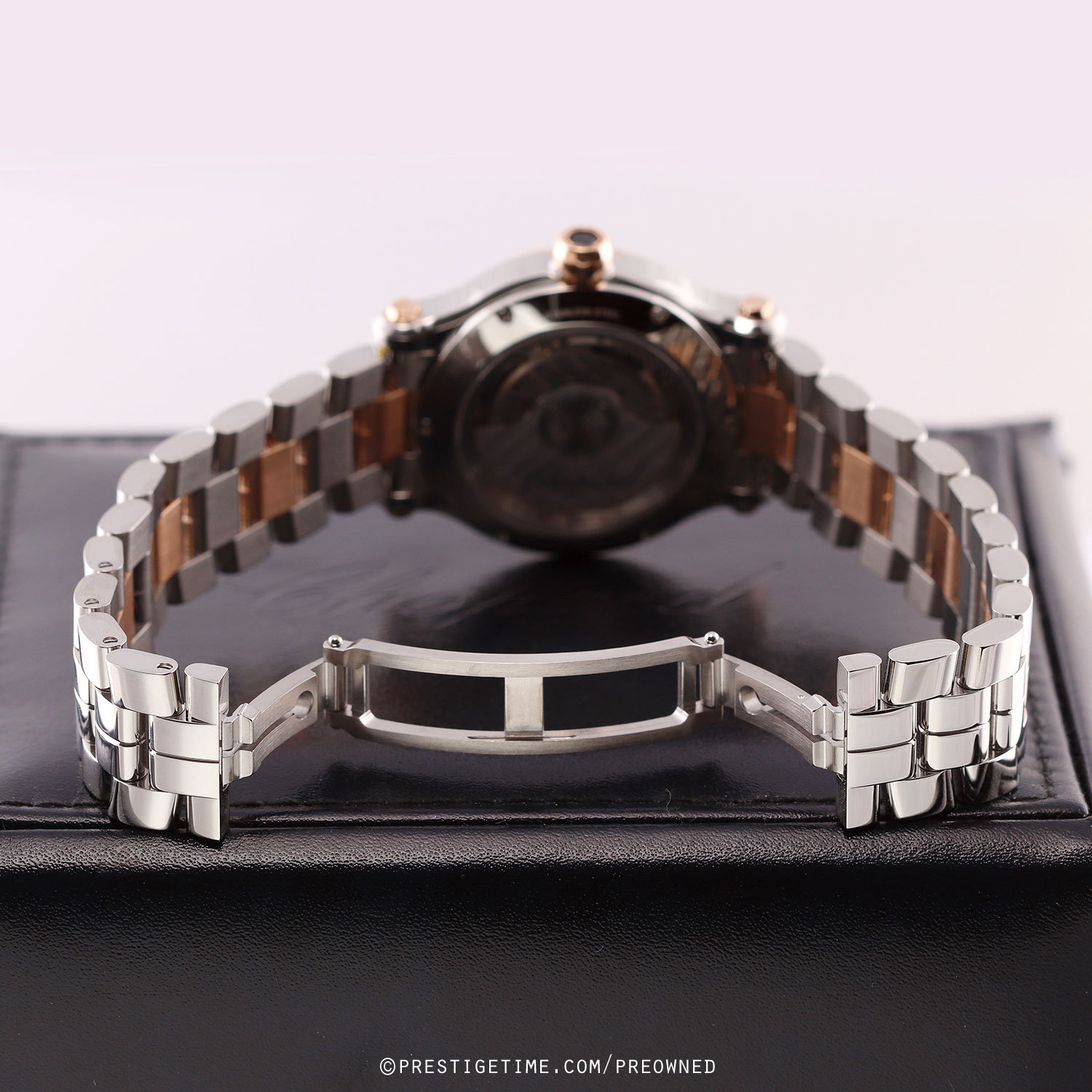 Bracelet: Fitted on its original polished stainless steel & 18kt rose gold bracelet with a butterfly style folding clasp. The bracelet is fully linked & will fit up to a 7" wrist.