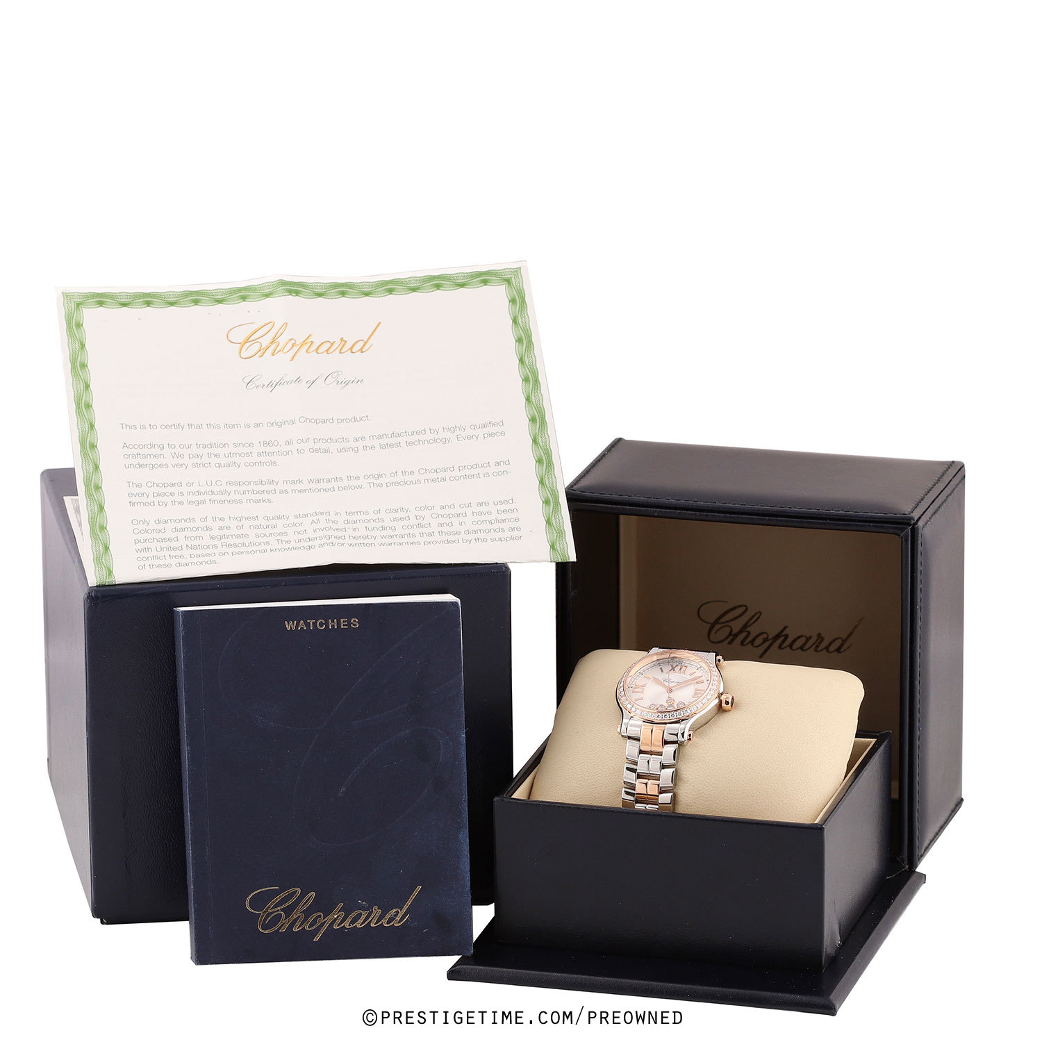 Movement: Powered by a Chopard in-house calibre 09.01-C, beats at 25,200 vph (3.5Hz), contains 27 jewels & has a power reserve of +/- 42 hours.