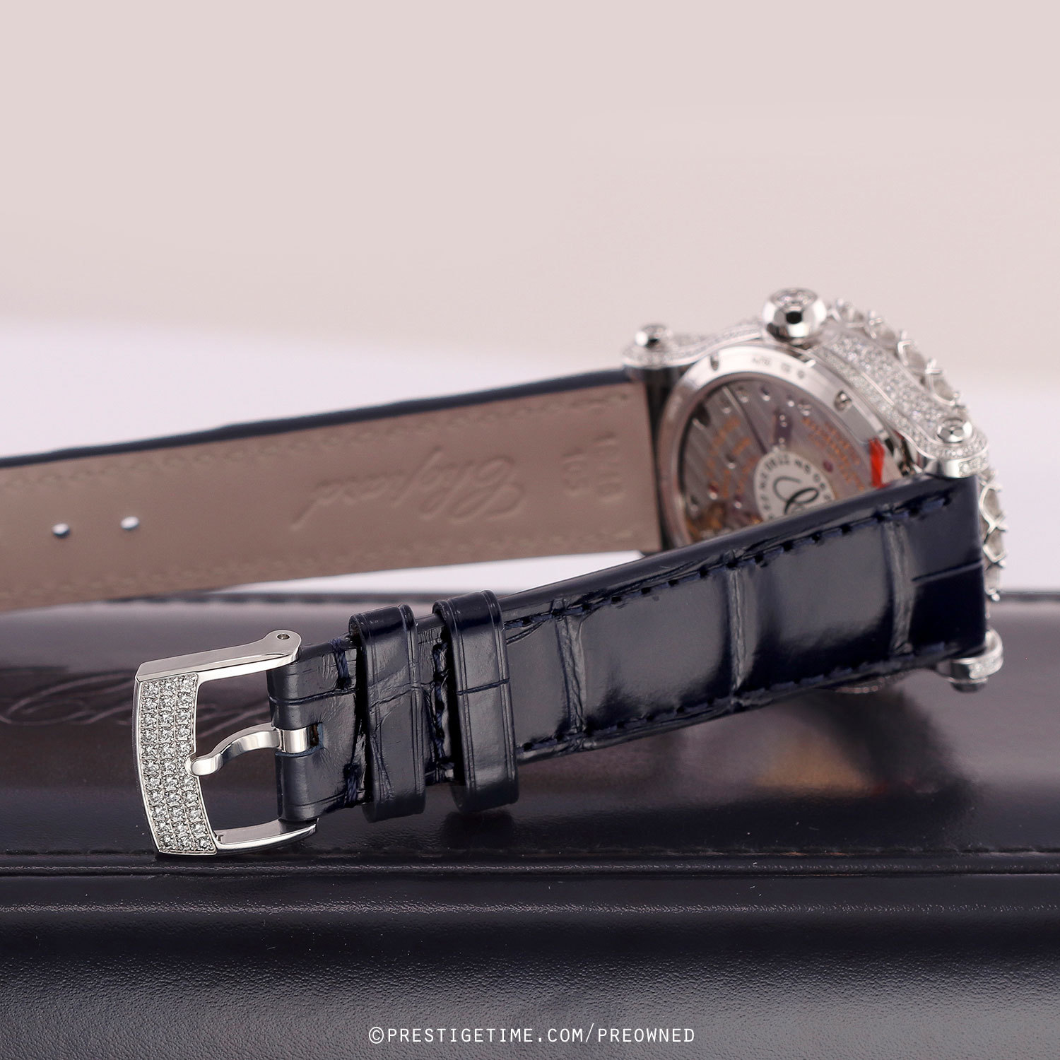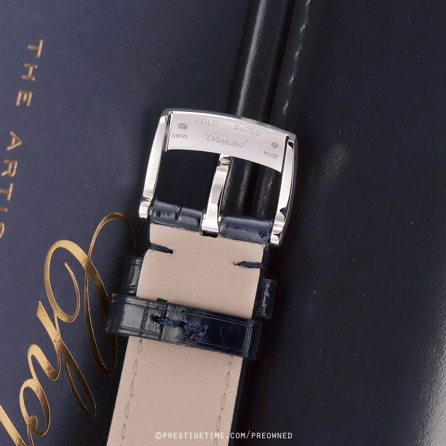 Strap: Fitted on its original Chopard shiny dark blue alligator leather strap with a polished 18kt white gold tang buckle. The strap is unworn in new condition with its full wear life-span remaining.