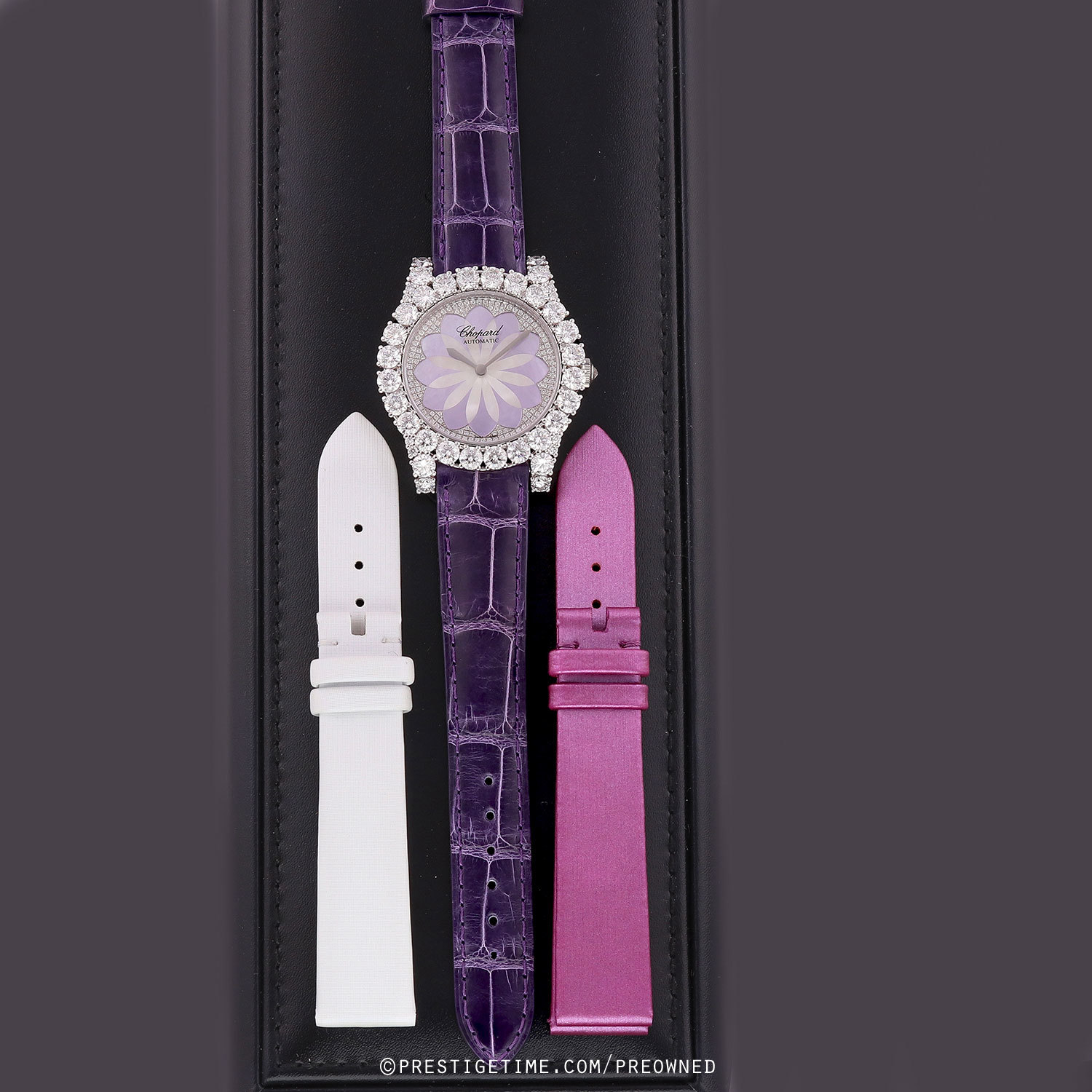 - Delivered with an addition Chopard original purple satin strap. The strap is brand new & unworn in new condition with its full wear life-span remaining.