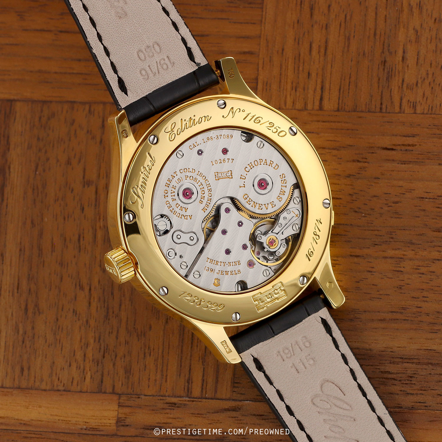 Movement: Powered by a Chopard in-house manual winding caliber L.U.C 1.98-37089, COSC certified, beats at 28,800 vph (4Hz), contains 39 jewels & has a power reserve of 216 hours (9 days).