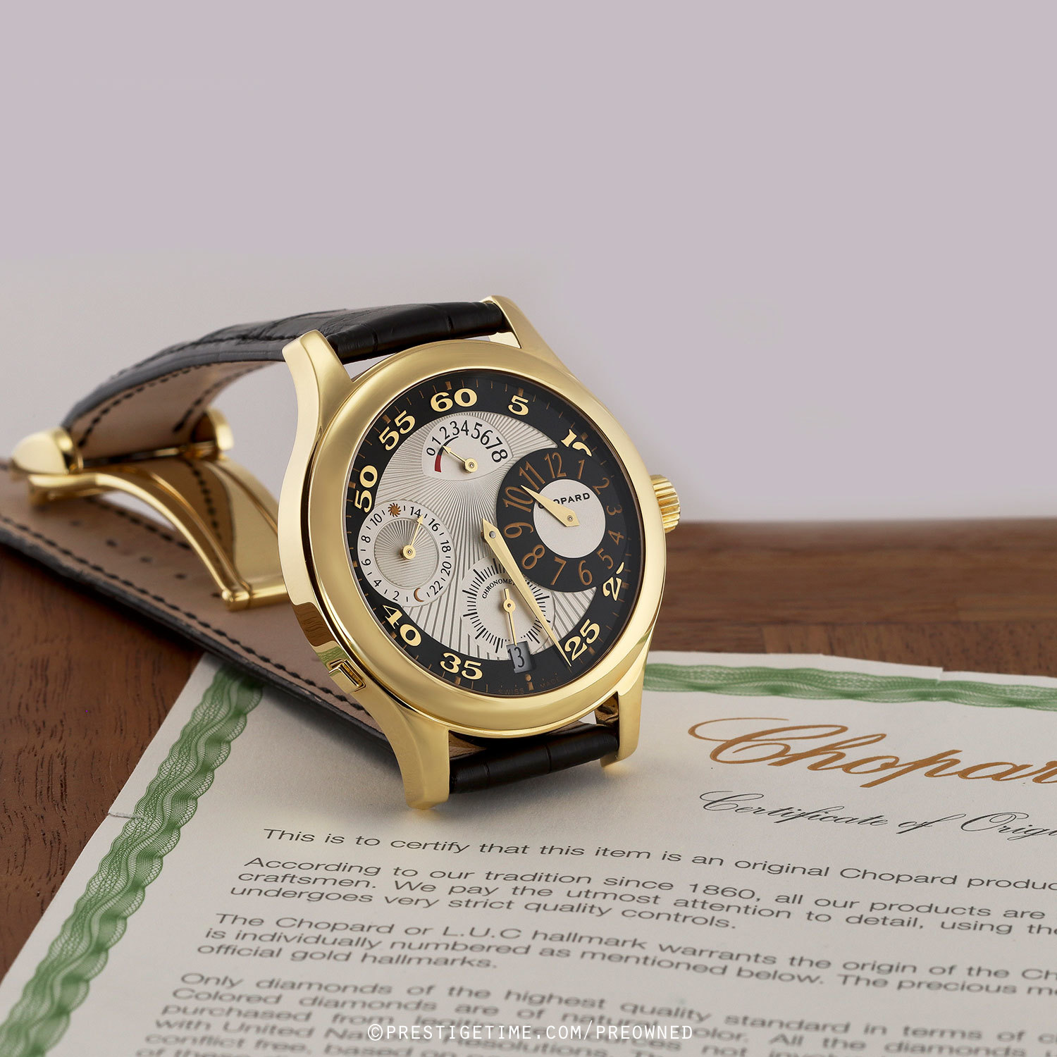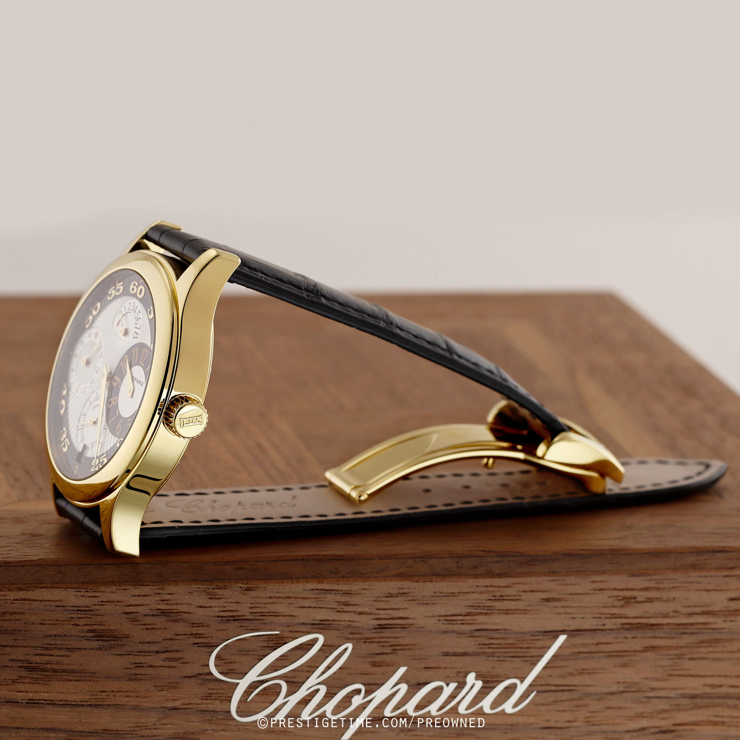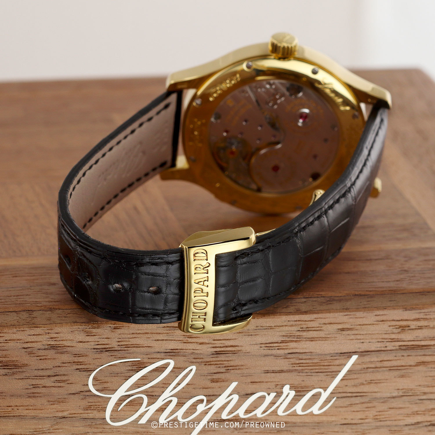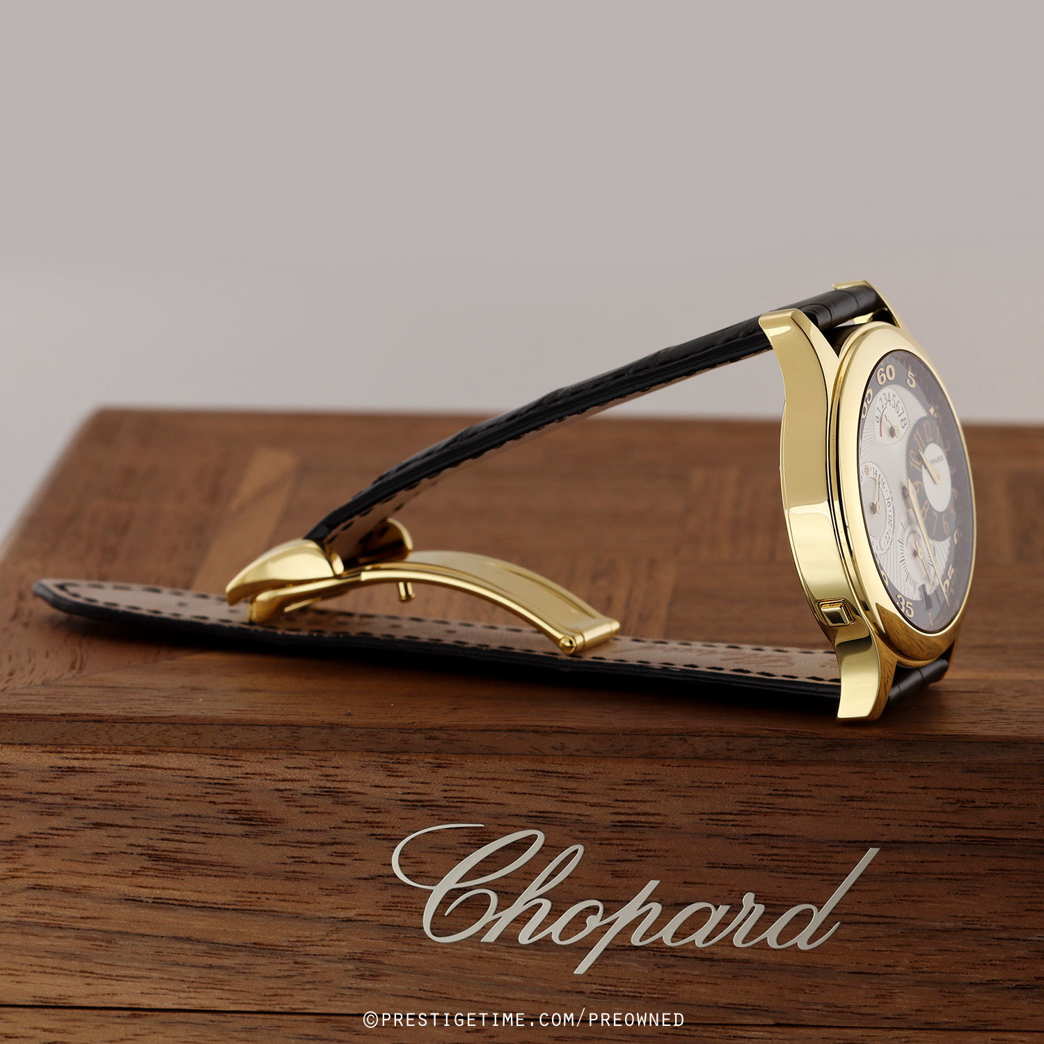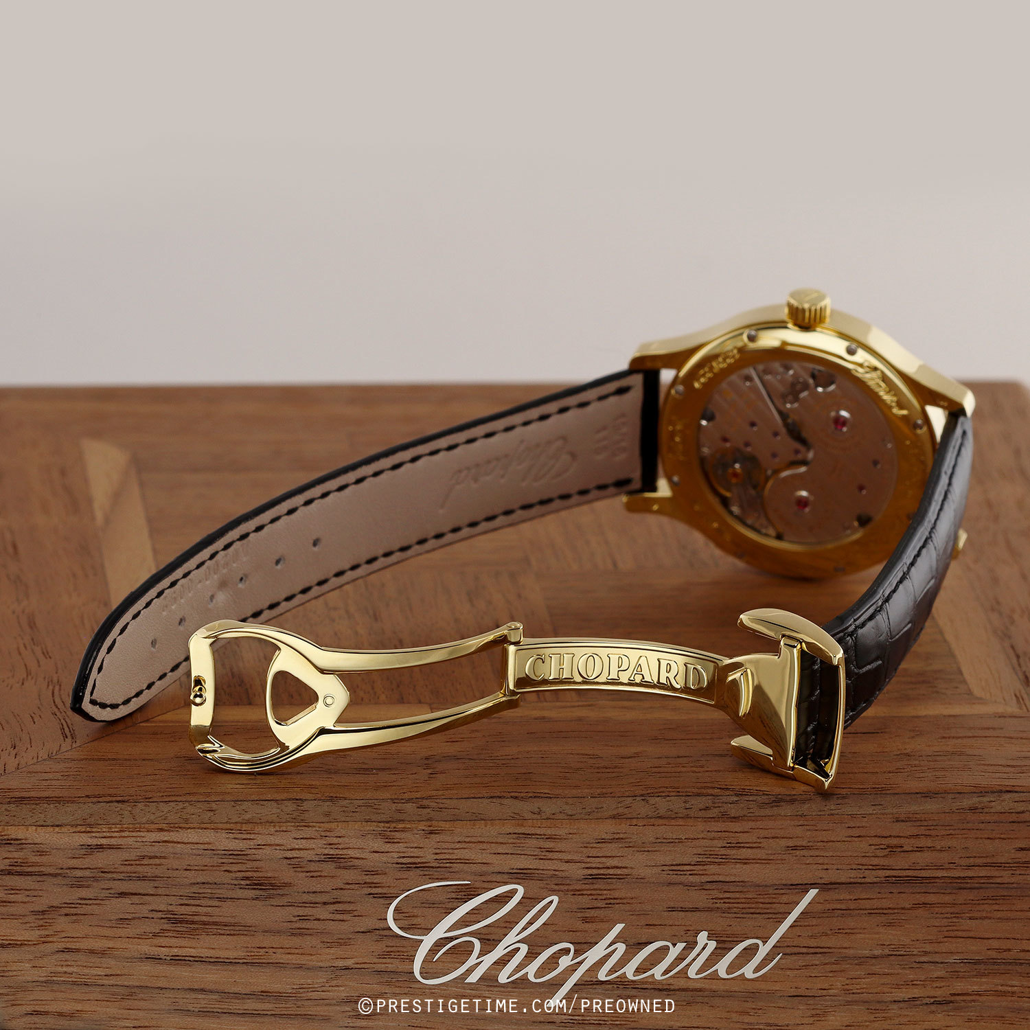 Strap: Fitted on its original Chopard matte black alligator leather strap with a solid 18kt white gold deployant buckle. The strap is in excellent near new condition (97%) with the majority of its wear lifespan remaining.