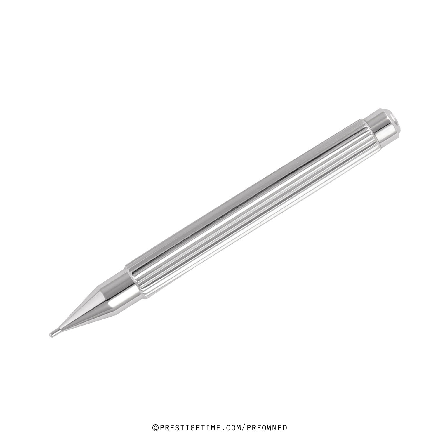 Stainless steel stylus tool in special leather holder (pusher for recessed buttons). Logo engraving is present & clear.