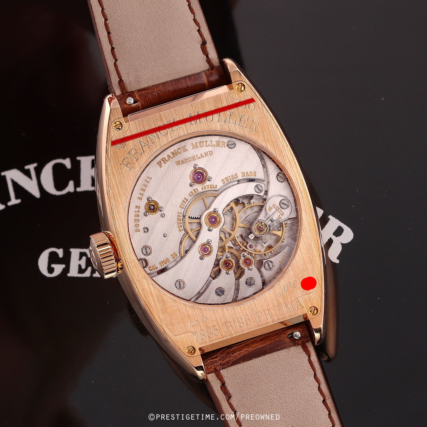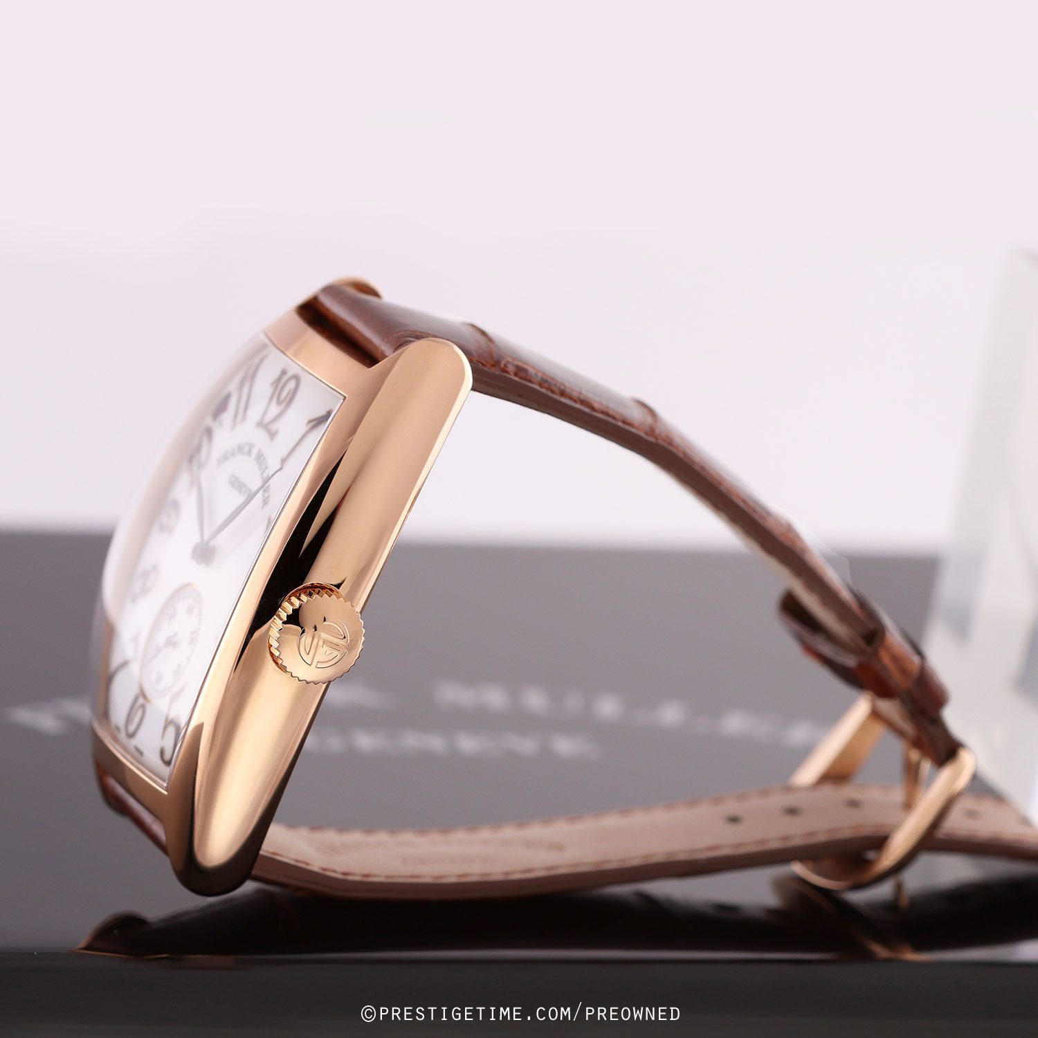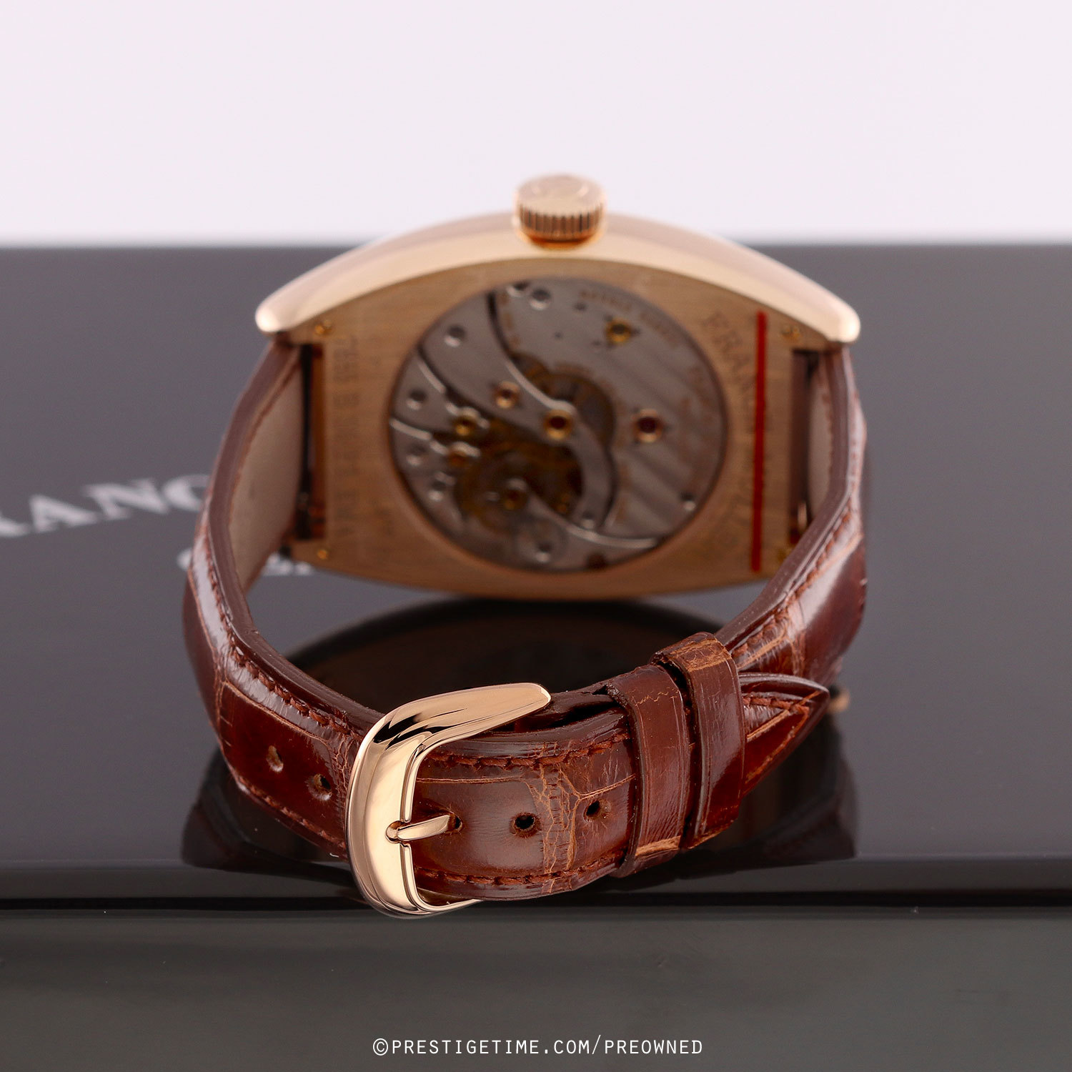 Strap: Fitted with its original Franck Muller honey-brown alligator leather strap & a rose gold tang buckle. The strap is unworn, in new condition, with its full wear lifespan remaining.