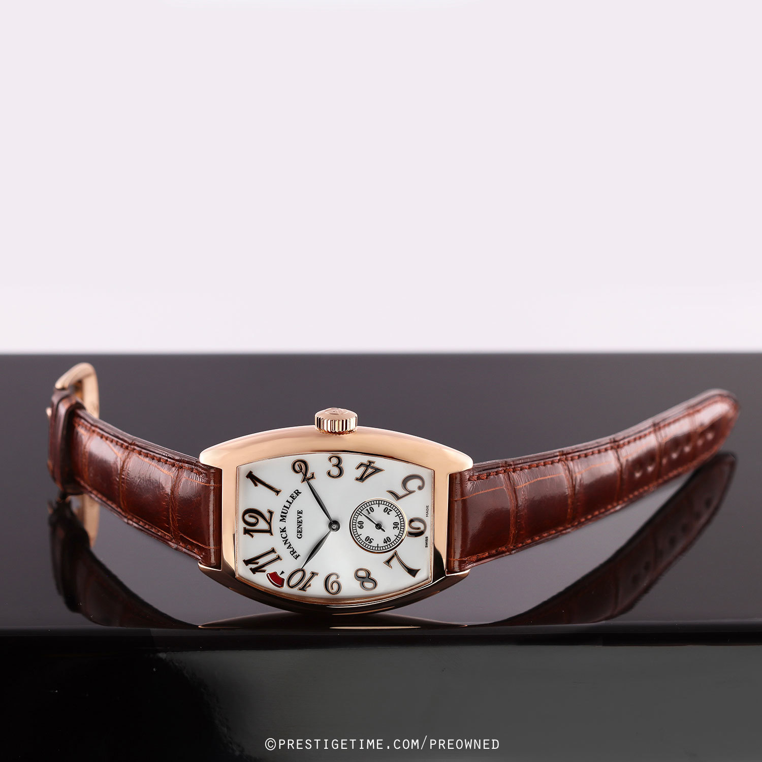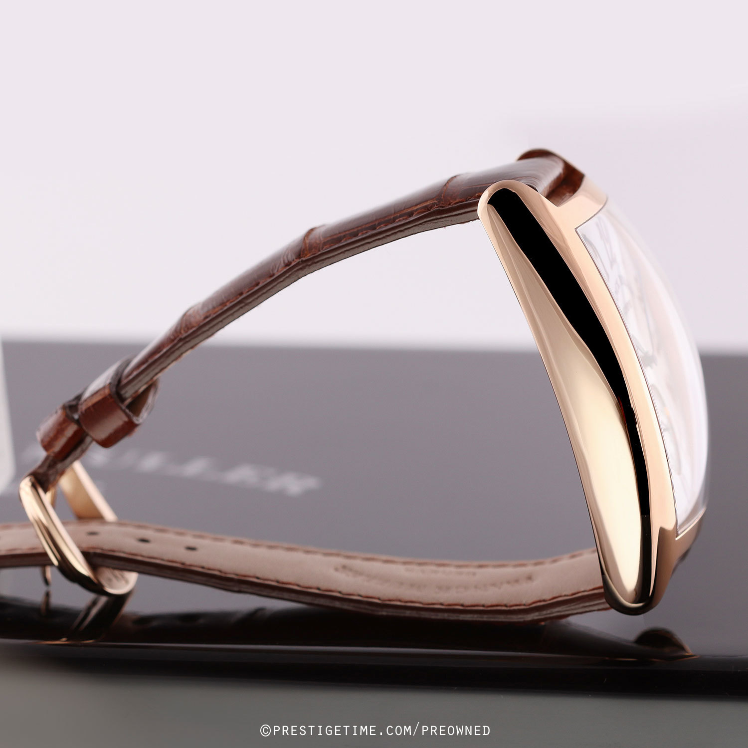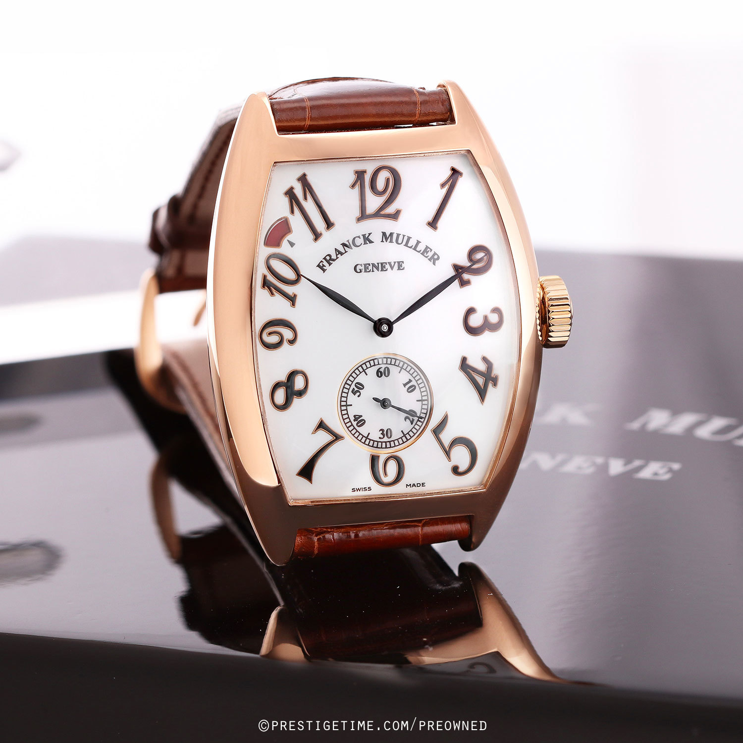 Strap: Fitted with its original Franck Muller honey-brown alligator leather strap & a rose gold tang buckle. The strap is unworn, in new condition, with its full wear lifespan remaining.