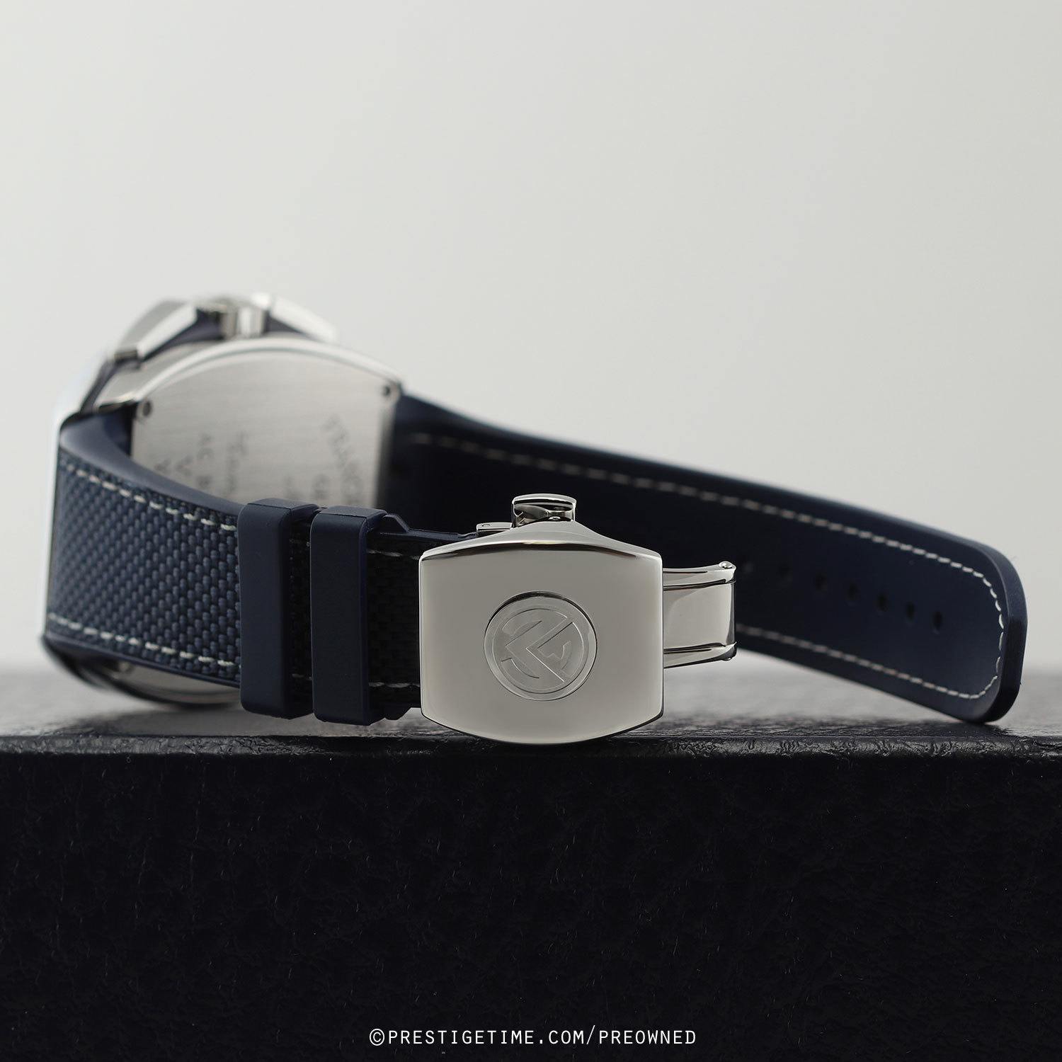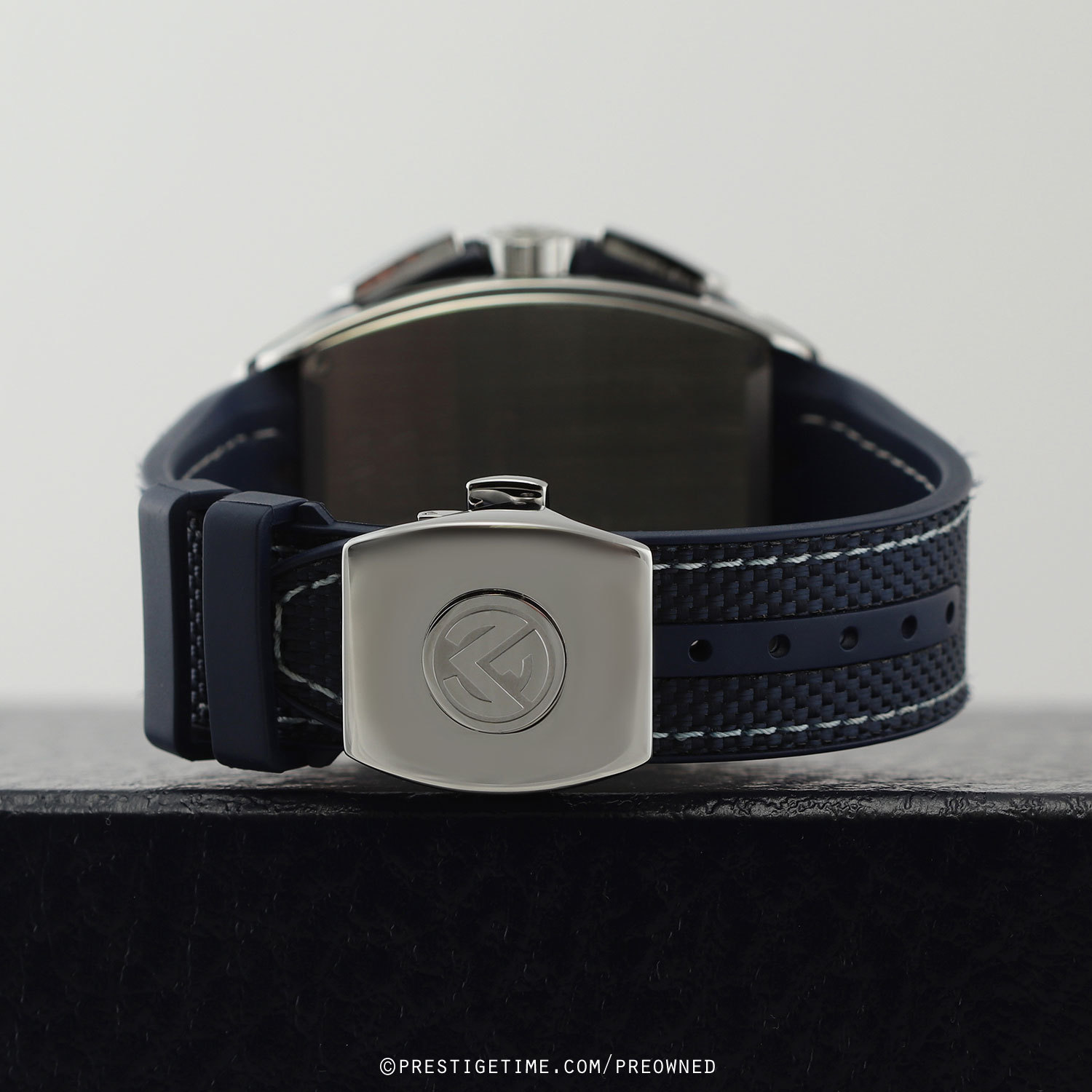 Strap: Fitted on its original blue rubber with blue fabric top strap and with a stainless steel deployant clasp. The strap is in 98% condition with almost its full wear life-span remaining.