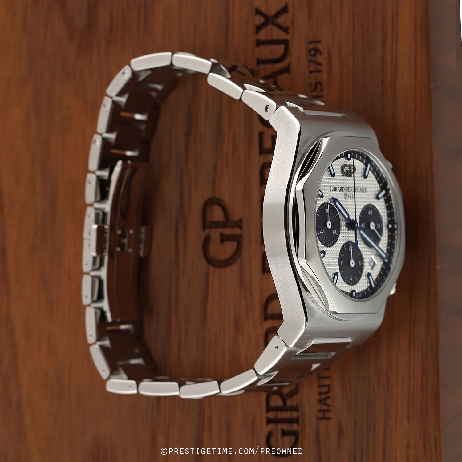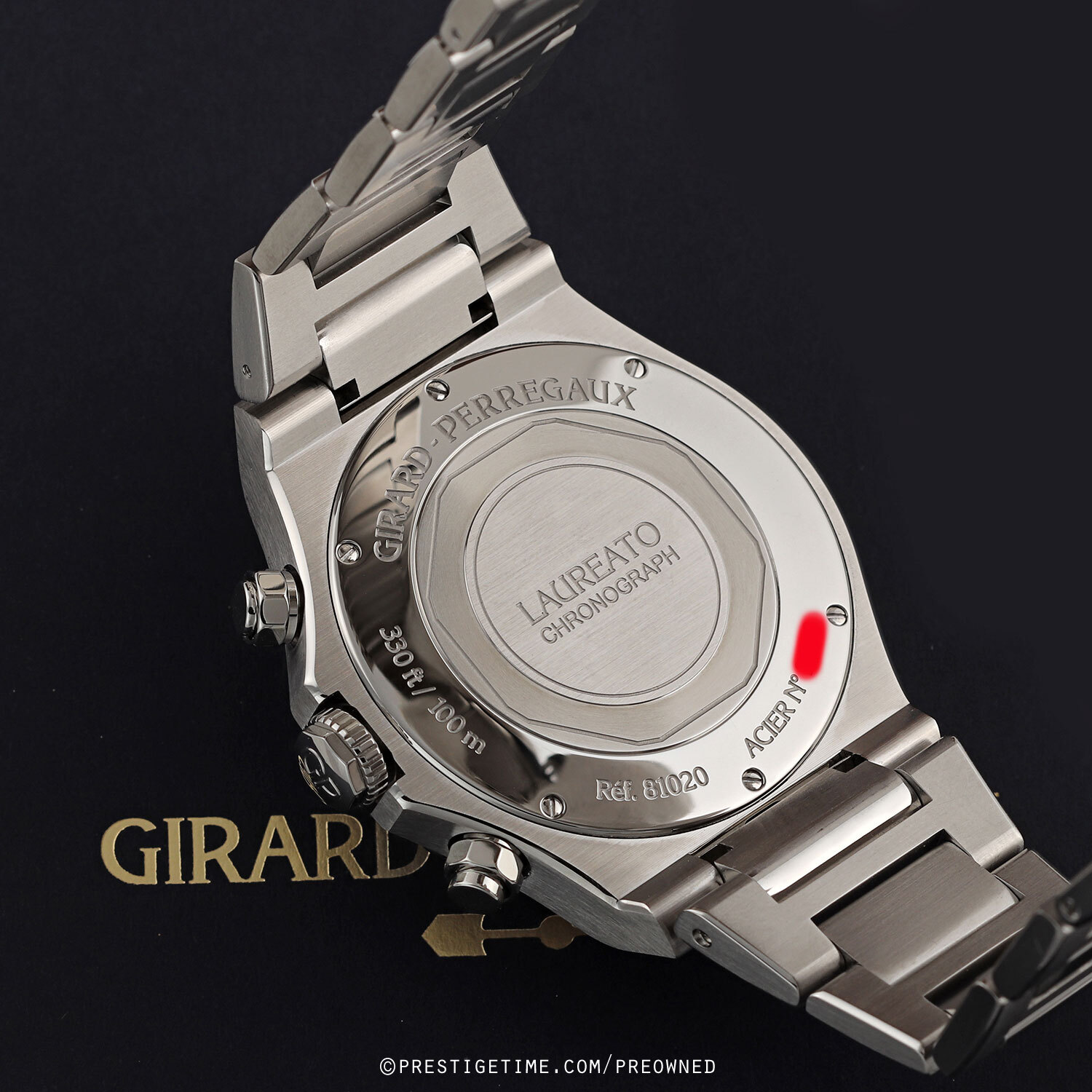 Movement: Powered by a Girard Perregaux caliber GP03300, beats at 28,800 vph (4Hz), composed out of 419 parts, contains 63 jewels & has a power reserve of +/- 46 hours.