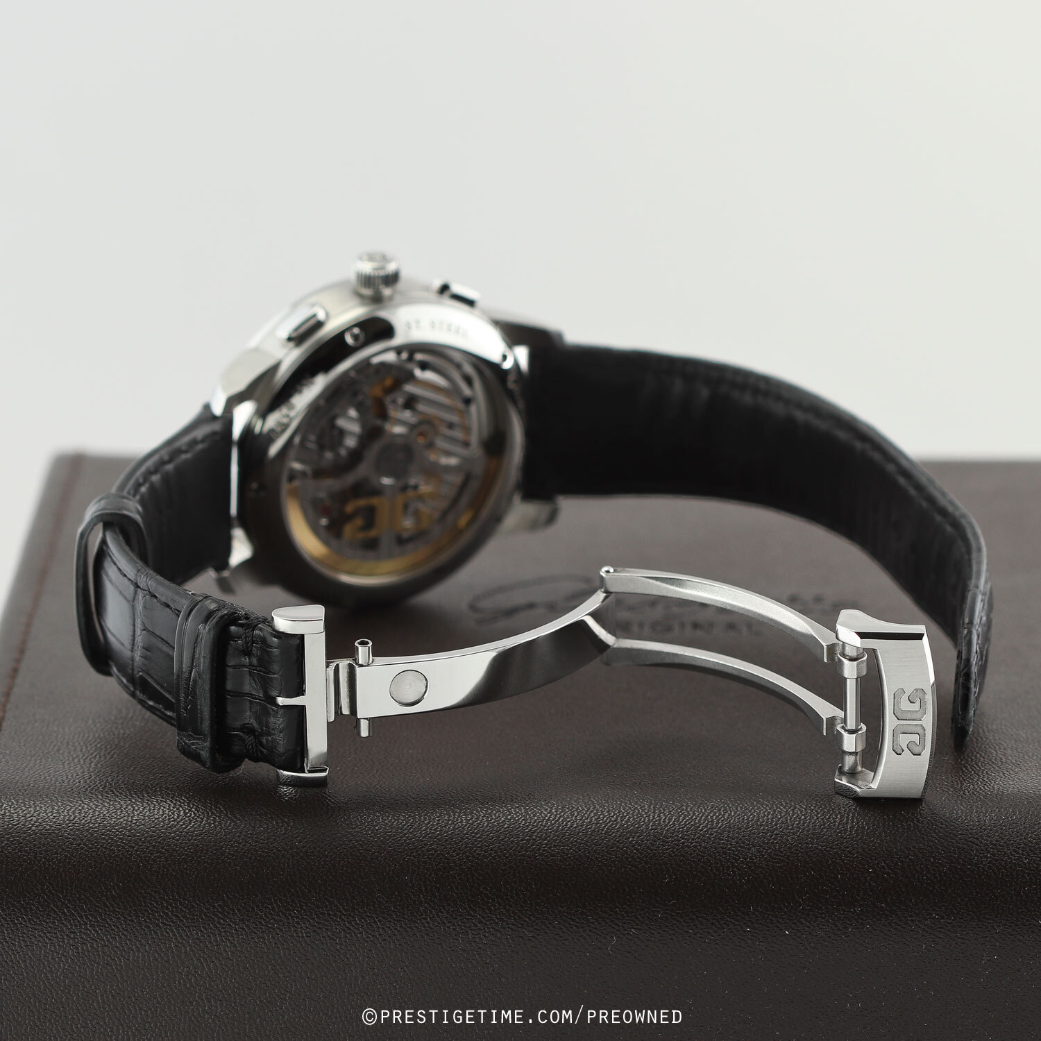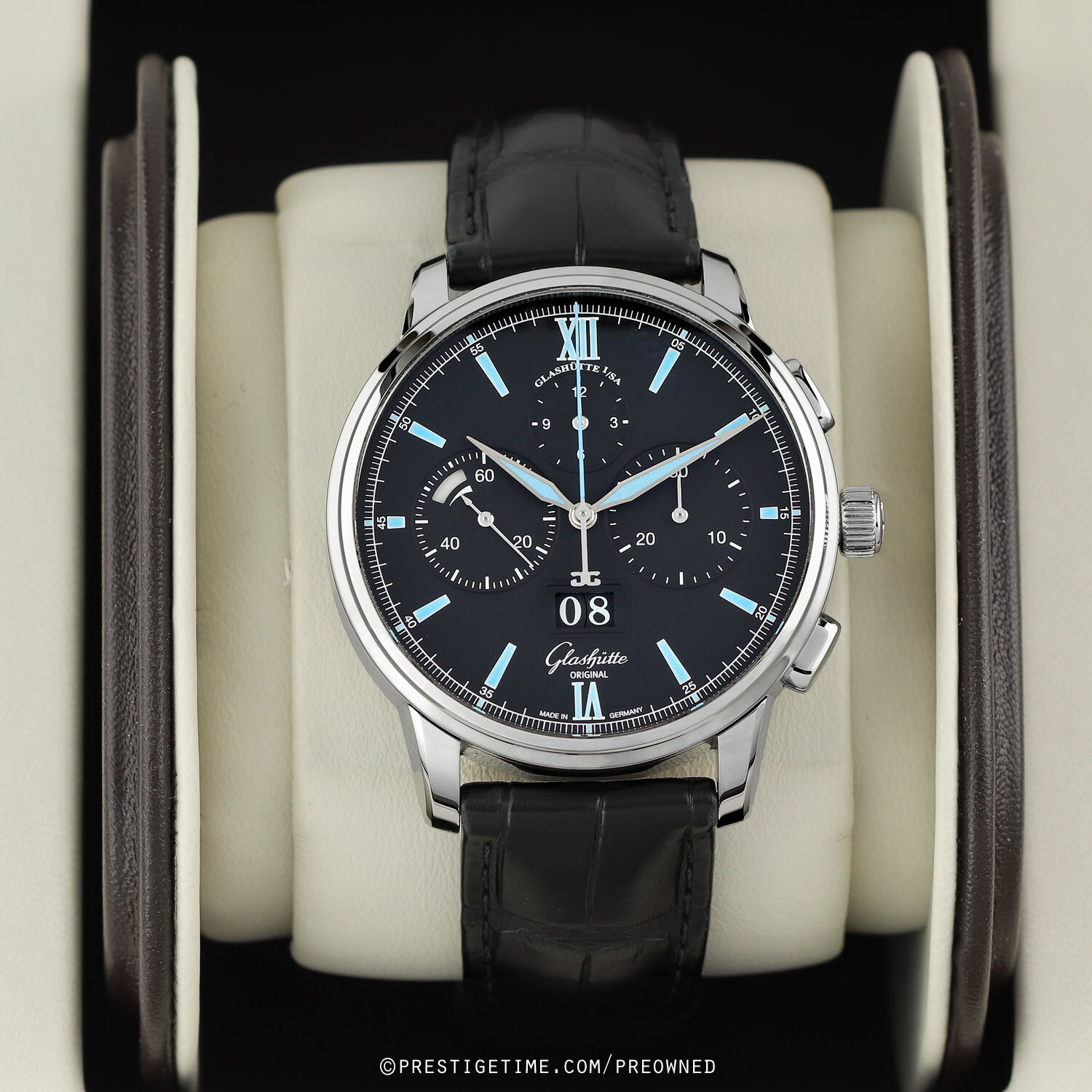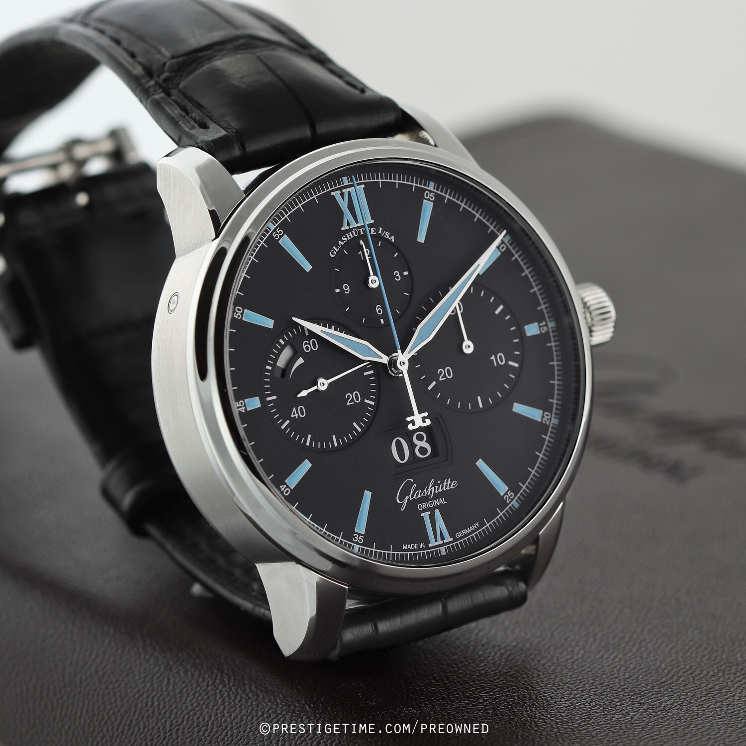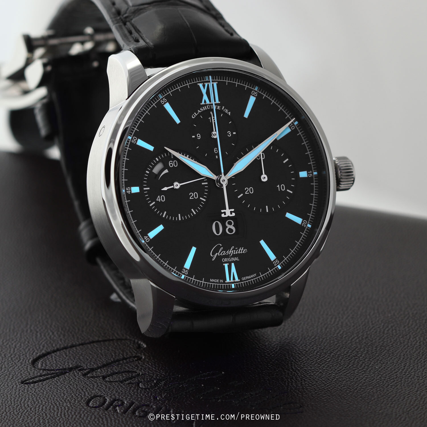 Strap: Fitted on an original/OEM Glashutte Original black alligator strap with deployant buckle. The strap is in excellent near-new condition with most of its wear life-span remaining. We would categorize this strap as being in 95% condition.