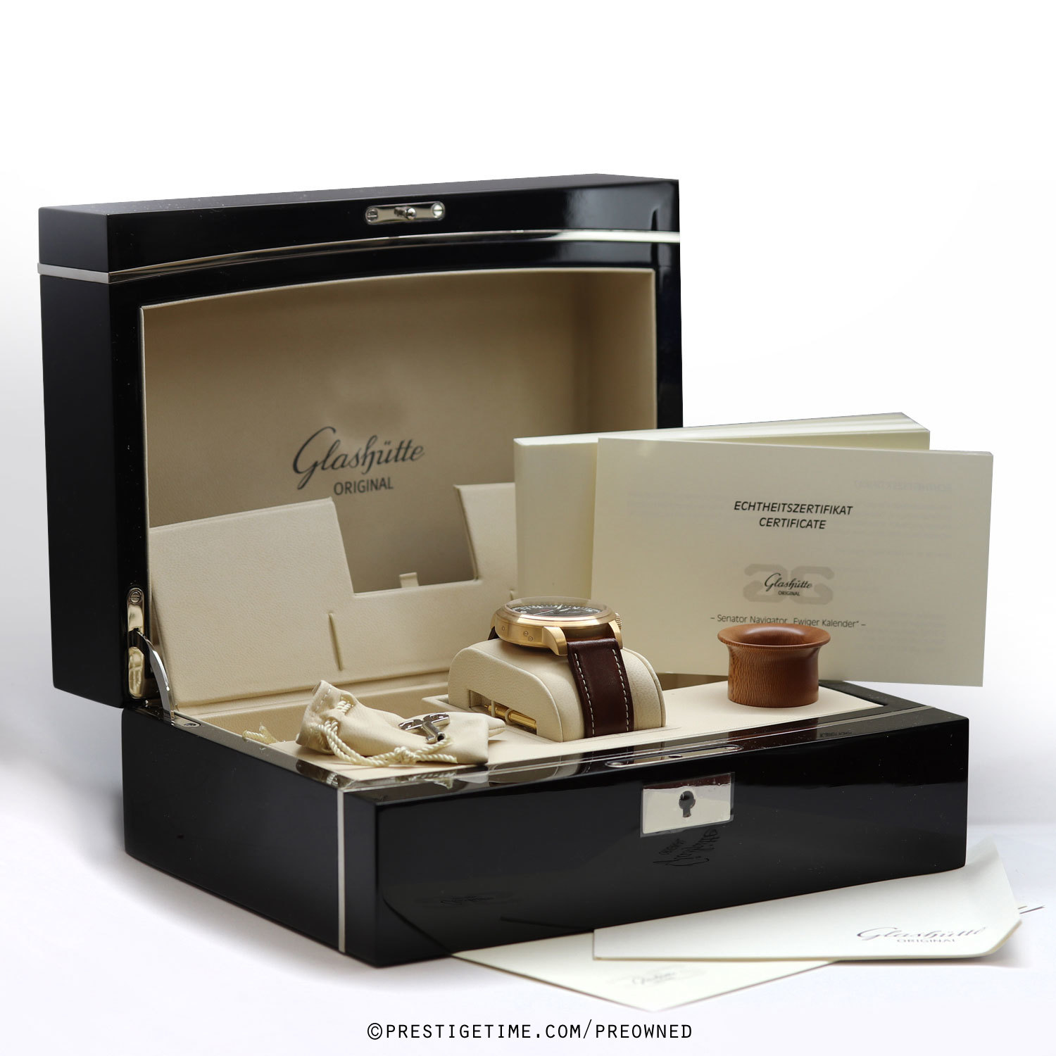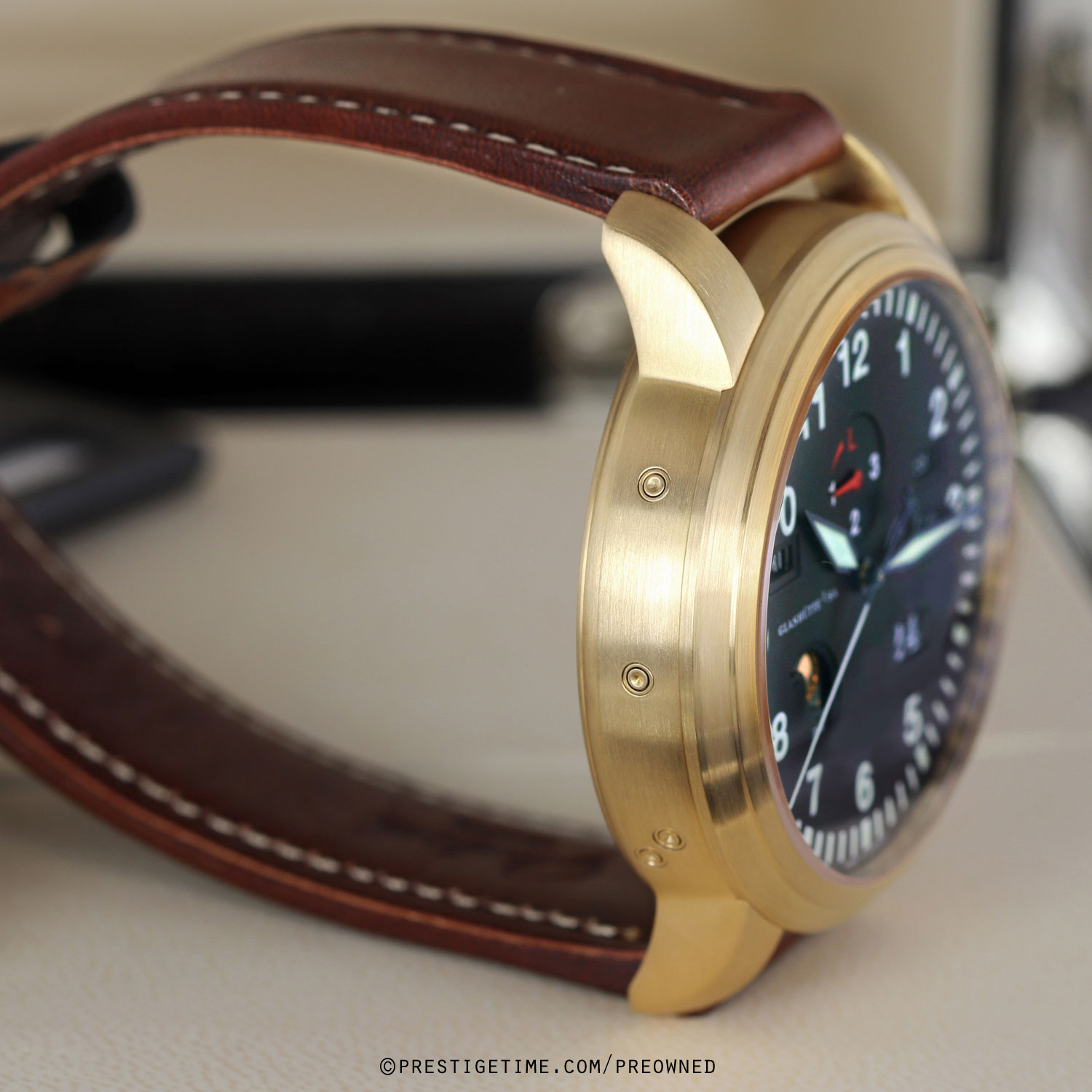 Movement: powered by Glashutte Original in-house caliber 100-07, beats at 28,800 vph, with 59 jewels & has a power reserve of +/- 55 hours. The movement is superbly decorated with a striped pattern & the rotor features the double G Glashutte Original logo.