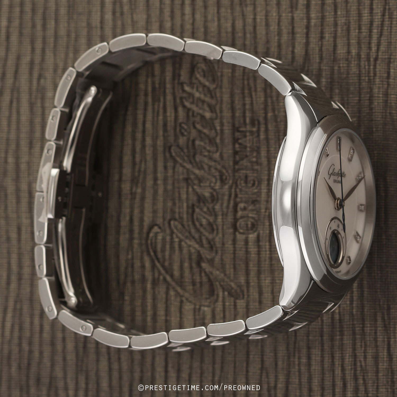 Movement: Powered by a Glashutte Original caliber 35-14, beats at 28,800 vph (4Hz), contains 32 jewels & has an power reserve of +/- 60 hours. Features a solid 18kt rose gold rotor hand decorated with a fine pattern. The movement is exquisitely finished with beveled corners, blued screws & Glashutte stripe finish.