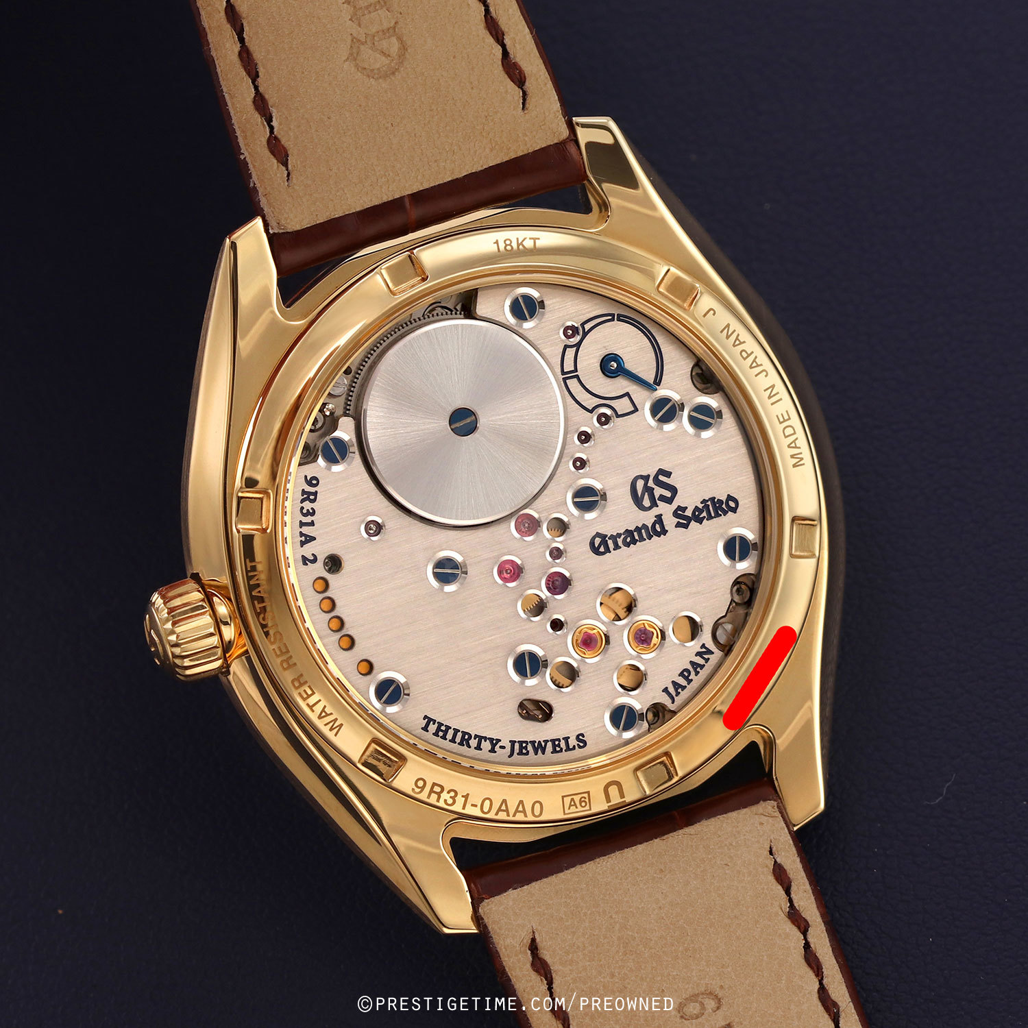 Movement: Powered by a GS manual-wind Spring Drive caliber 9R31, contains 30 jewels & has an approximate power reserve of 72 hours or 3 days.