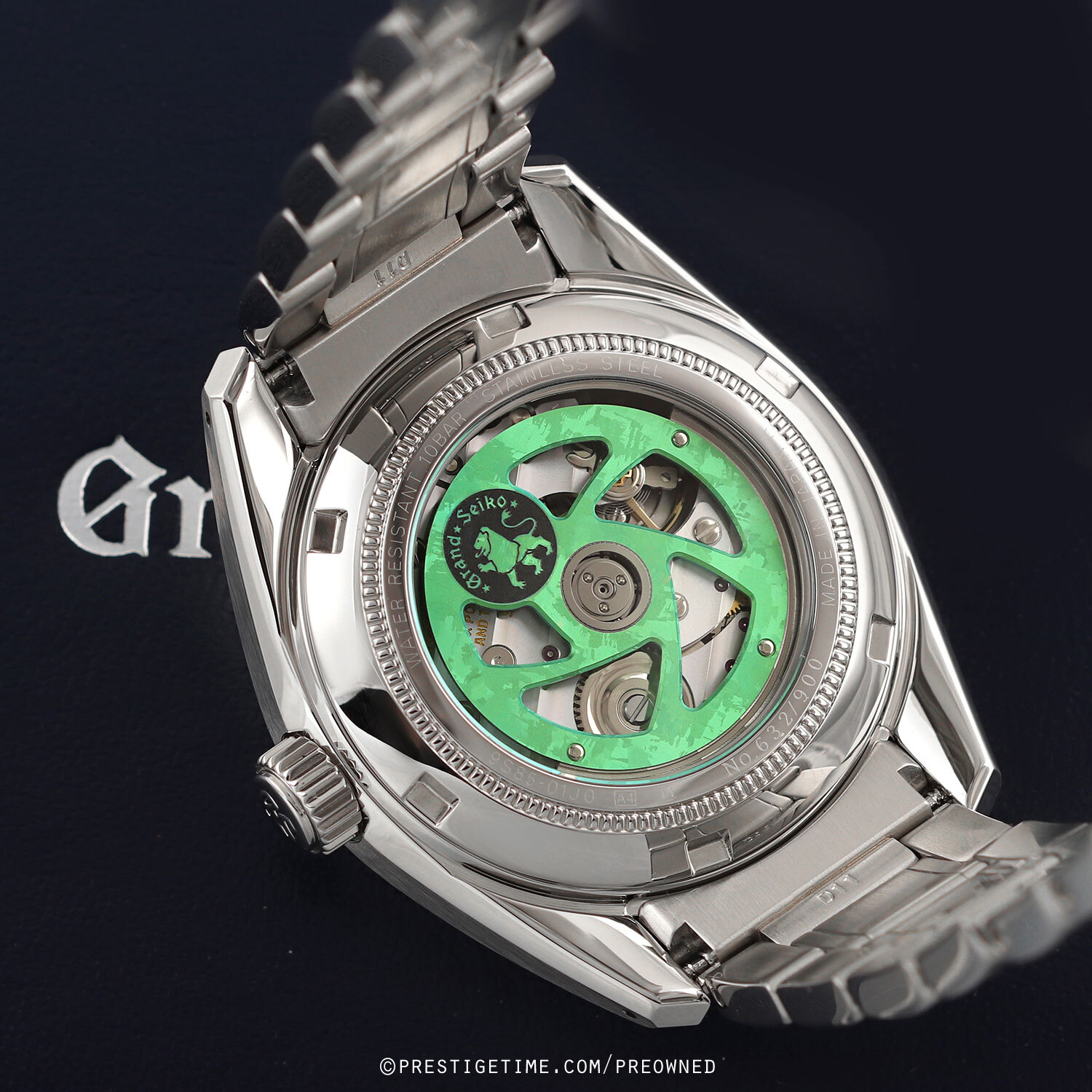 Movement: Powered by a Grand Seiko caliber 9s85, beats at 36,600 vph, contains 37 jewels & has an approximate power reserve of 55 hours. Fitted with a green anodized titanium and tungsten rotor.