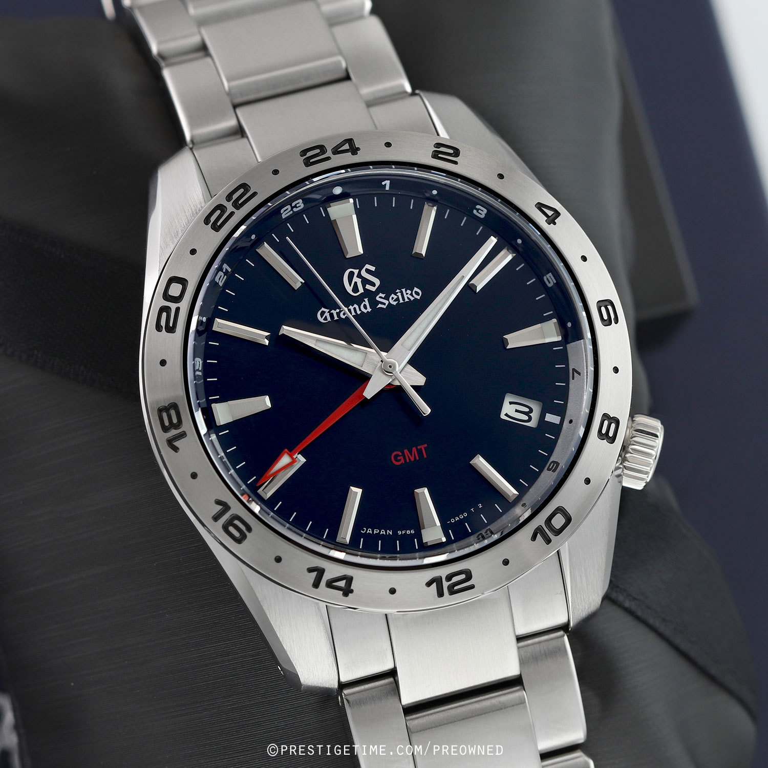 Case: Brushed & polished stainless steel case. Polished surfaces have been hand-polished using the famed Zaratsu polishing technique. Brushed & polished stainless steel bezel with 24 hour indications. Blue dial. Faceted brushed & polished hour & minute hands with luminous fill. Polished seconds hand. Applied faceted brushed & polished index hour markers, 12/3/6/9 with luminous fill. Fine printed minutes/seconds track. Date window at 4 o'clock. Blue & grey dial flange