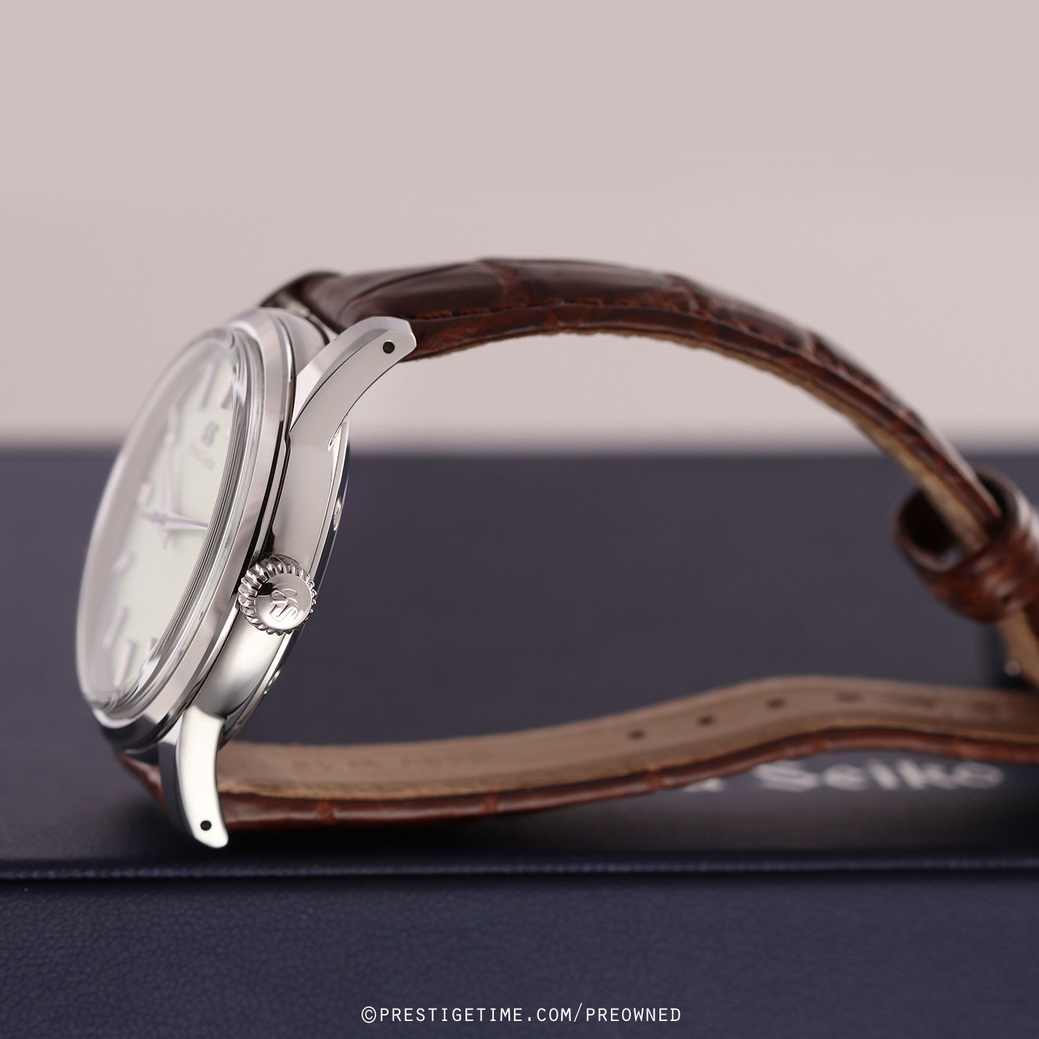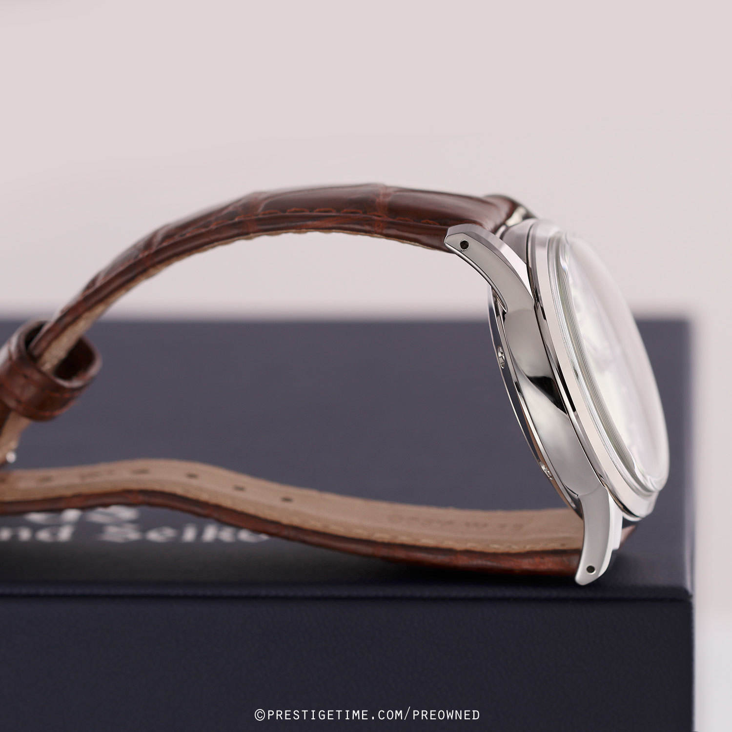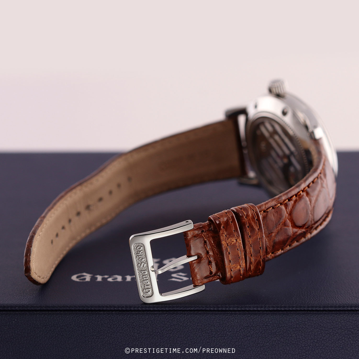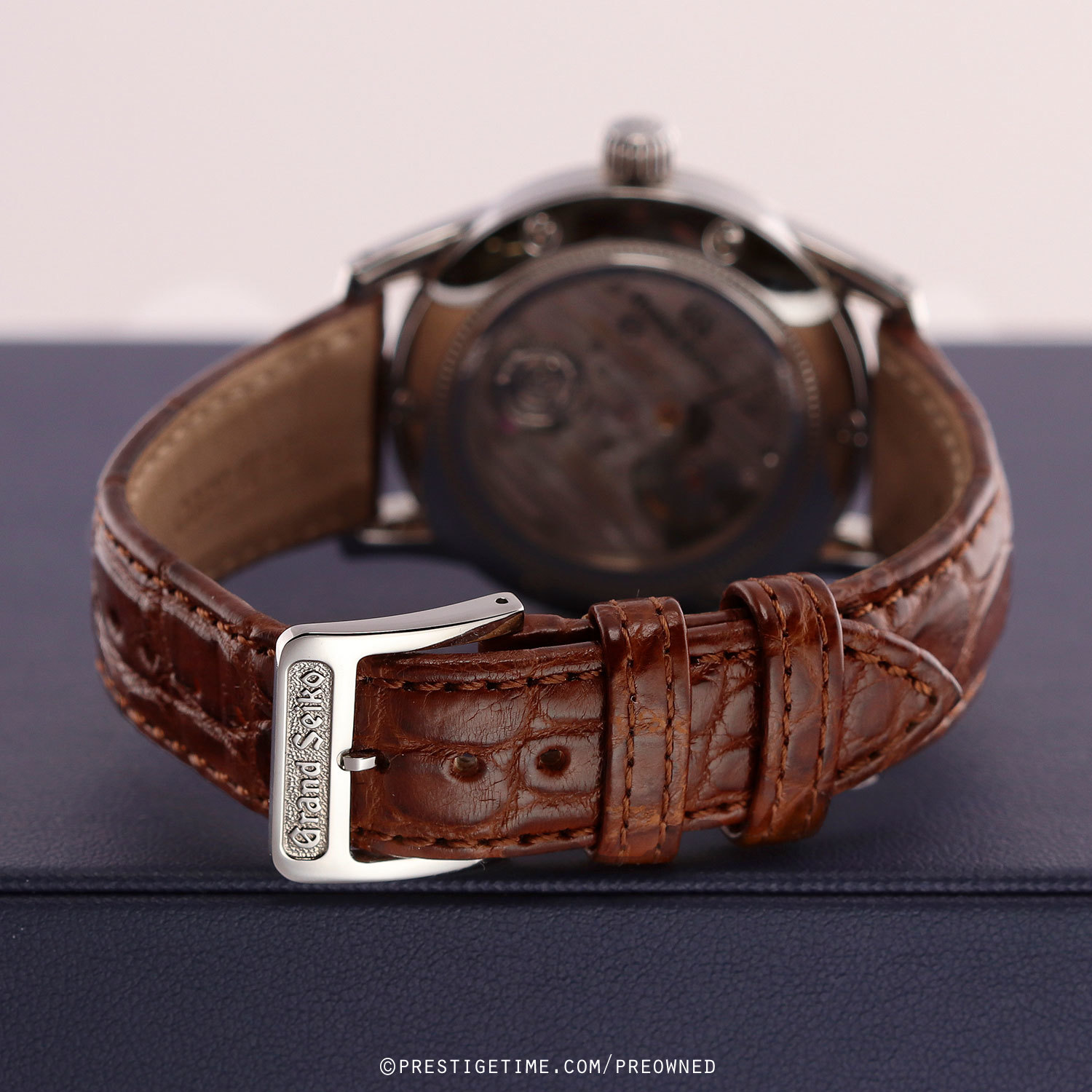 - Fitted on its original Grand Seiko brown alligator leather strap with a stainless steel tang buckle. The strap is in near perfect condition with the majority of its wear life-span remaining. We would rate this strap as in 96% overall condition.