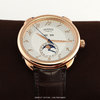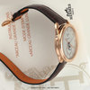 Case: Polished 18kt rose gold case. Silver dial with a fine wave guilloche finished center. Polished rose gold hour & minute hands, blued steel seconds & date hands. Applie polished rose gold numeral hour markers. Fine printed dot minute/seconds track.