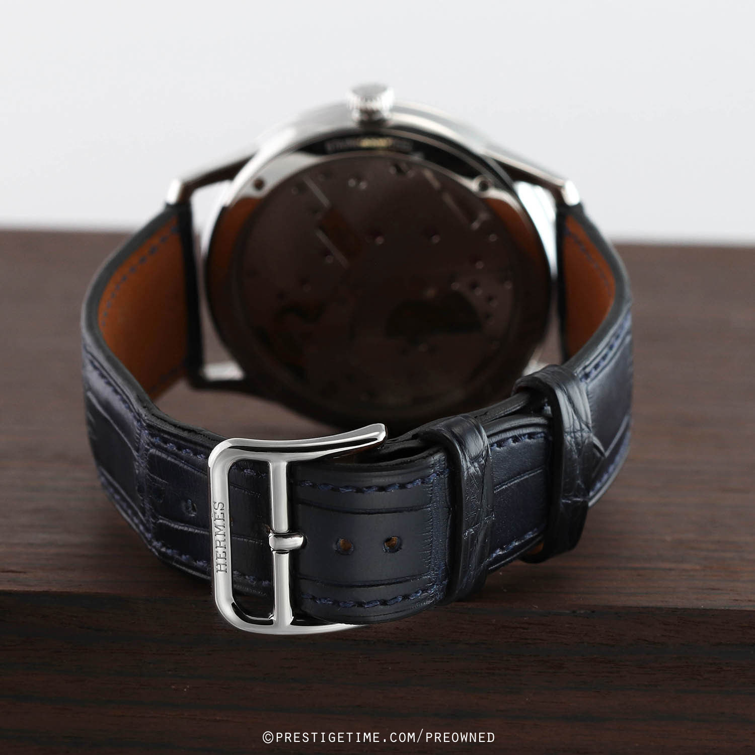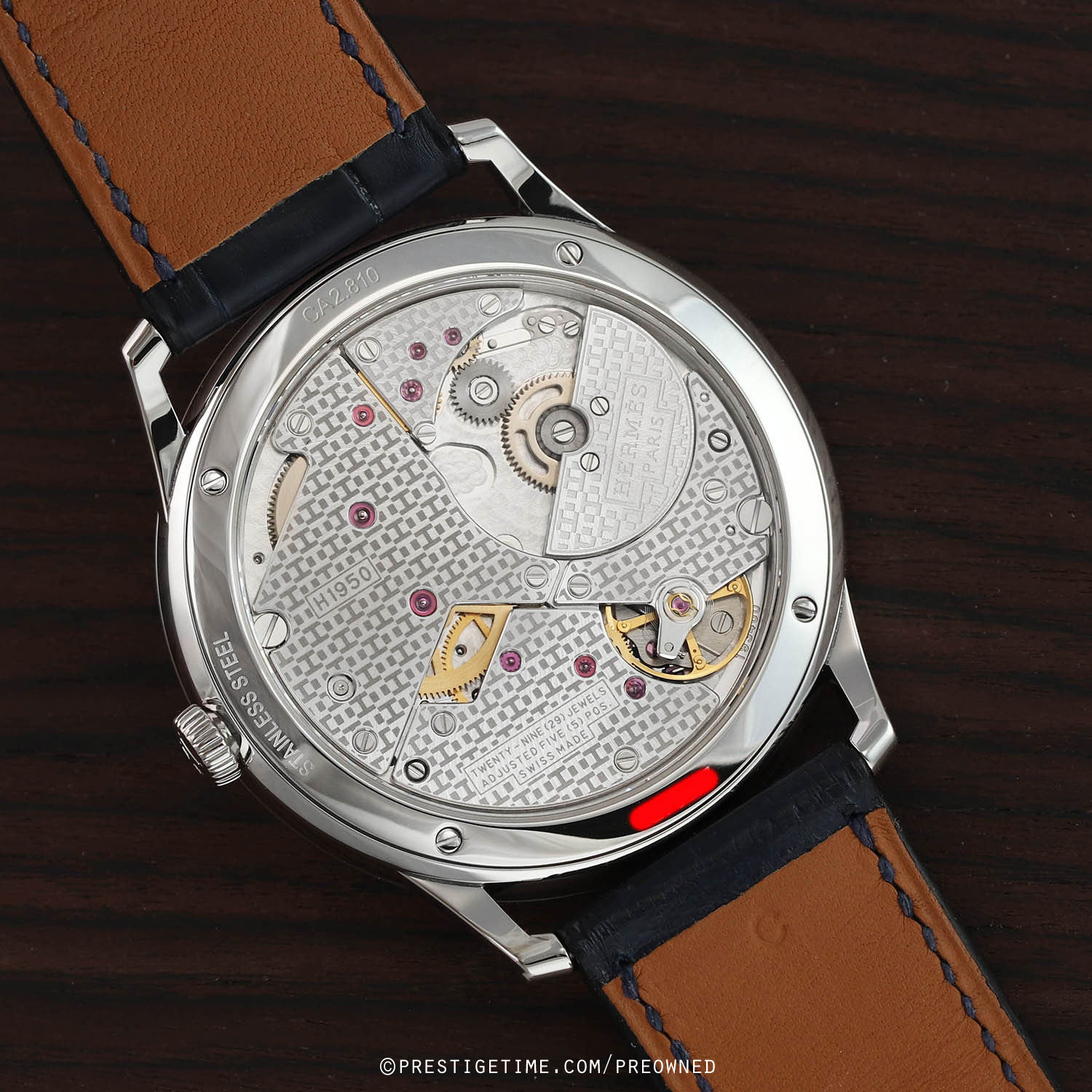 Movement: Powered by a Hermes caliber H1950, beats at 21,600 vph (3.5Hz), contains 29 jewels & has a power reserve of +/- 42 hours.