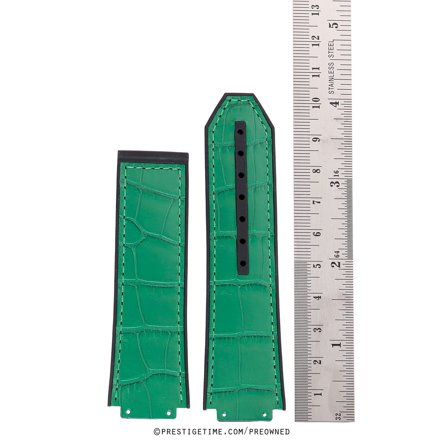 Genuine Hublot green alligator strap with black rubber lining & sides.