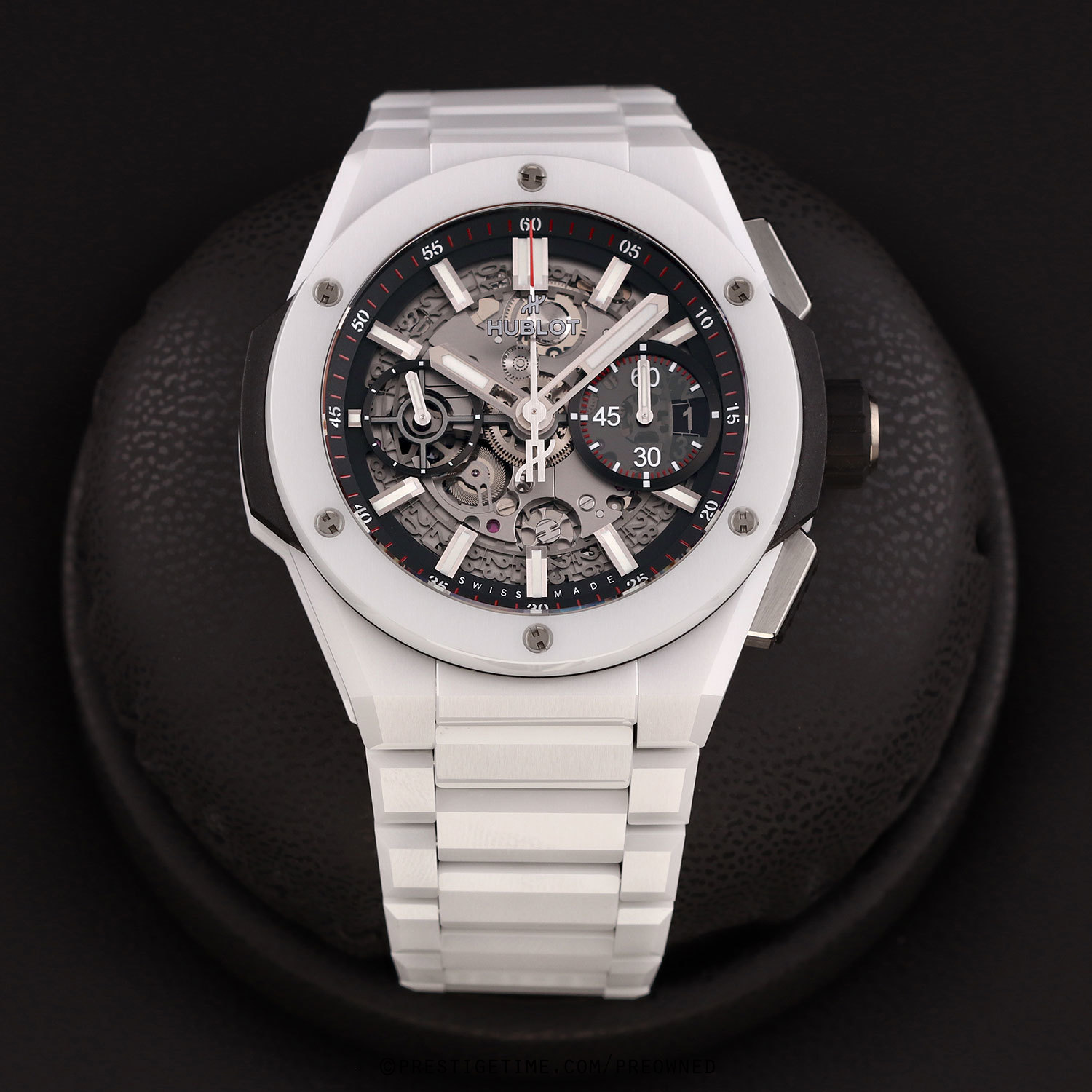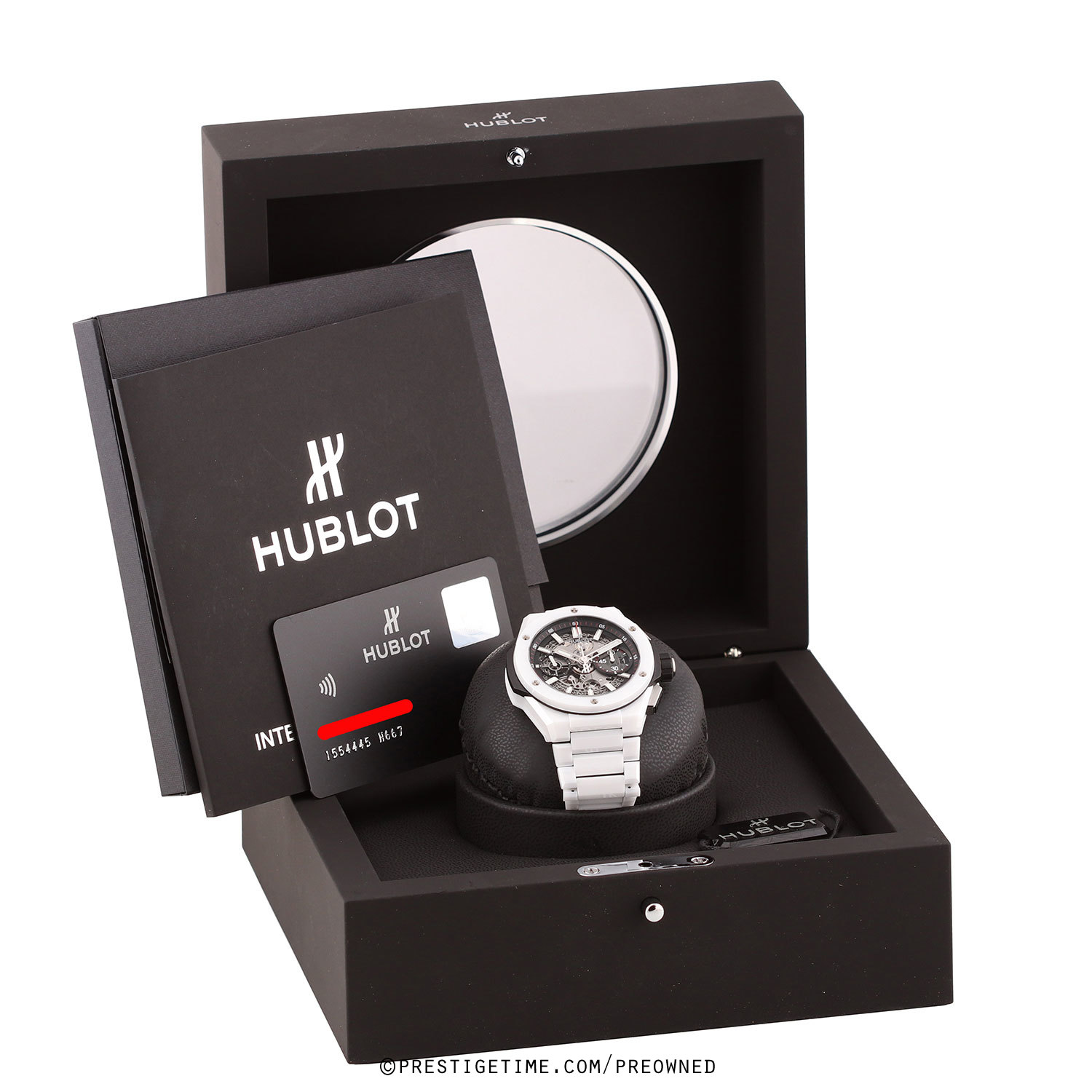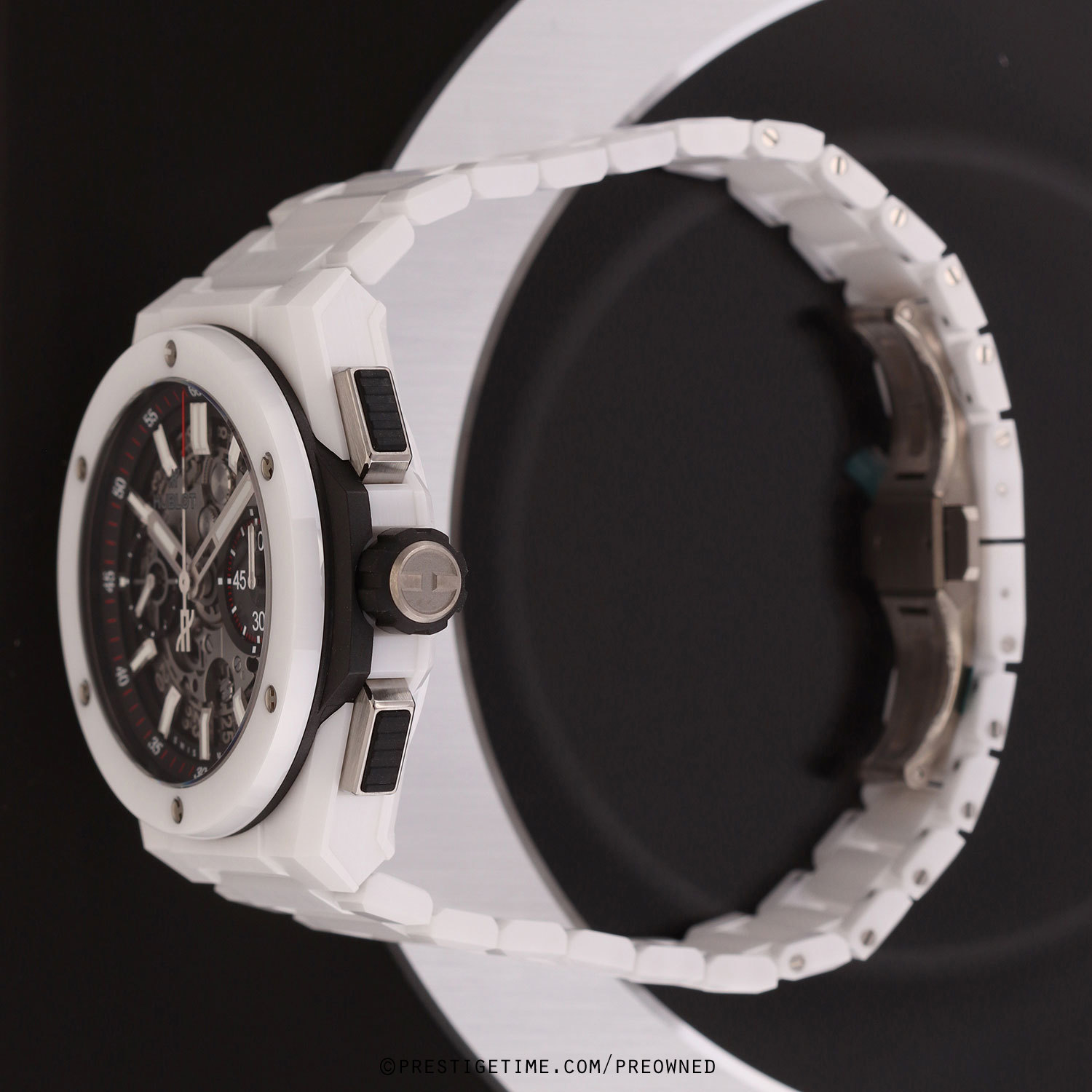 Bracelet: Fitted on its Hublot original brushed & polished white ceramic bracelet with push-button titanium hidden folding clasp. The bracelet is fully linked & will fit up to a 8.25" wrist.