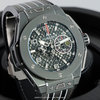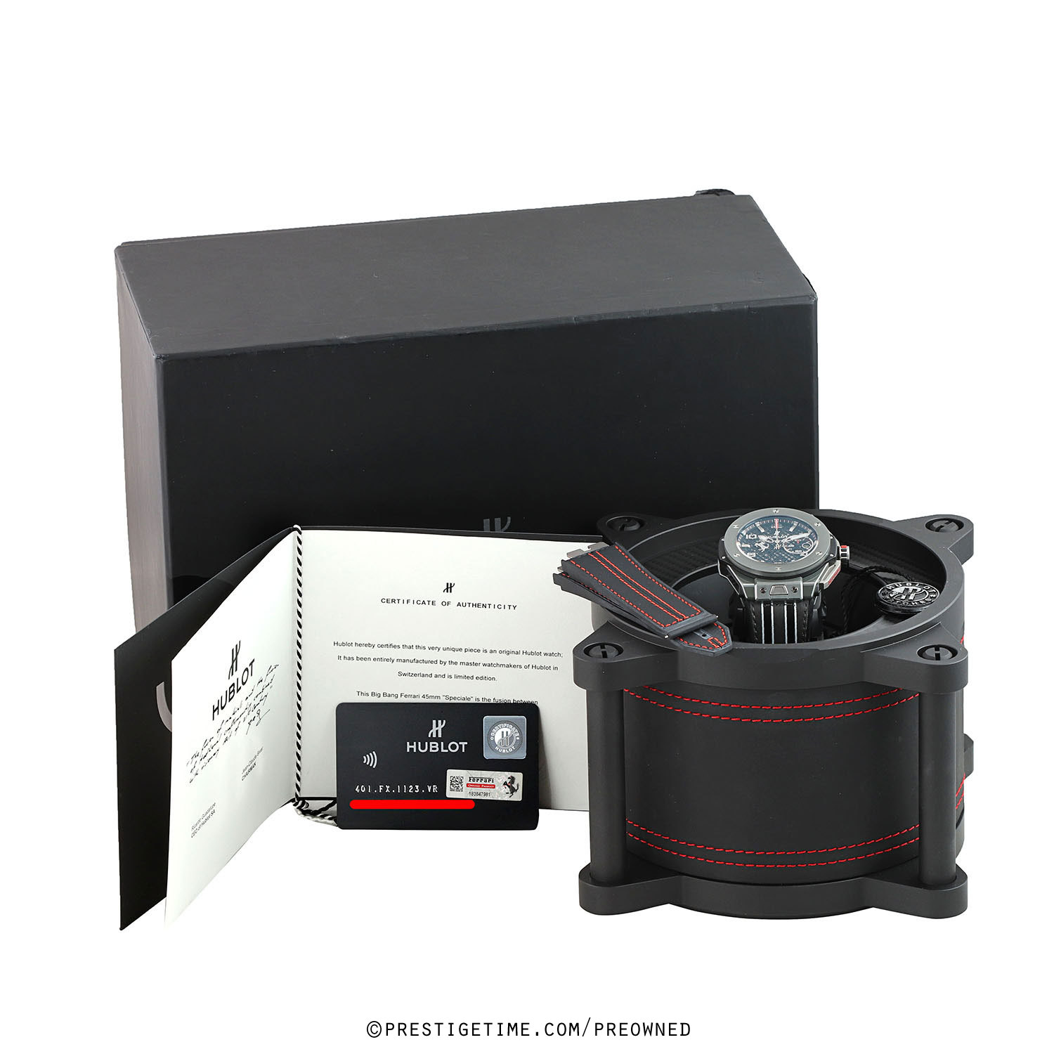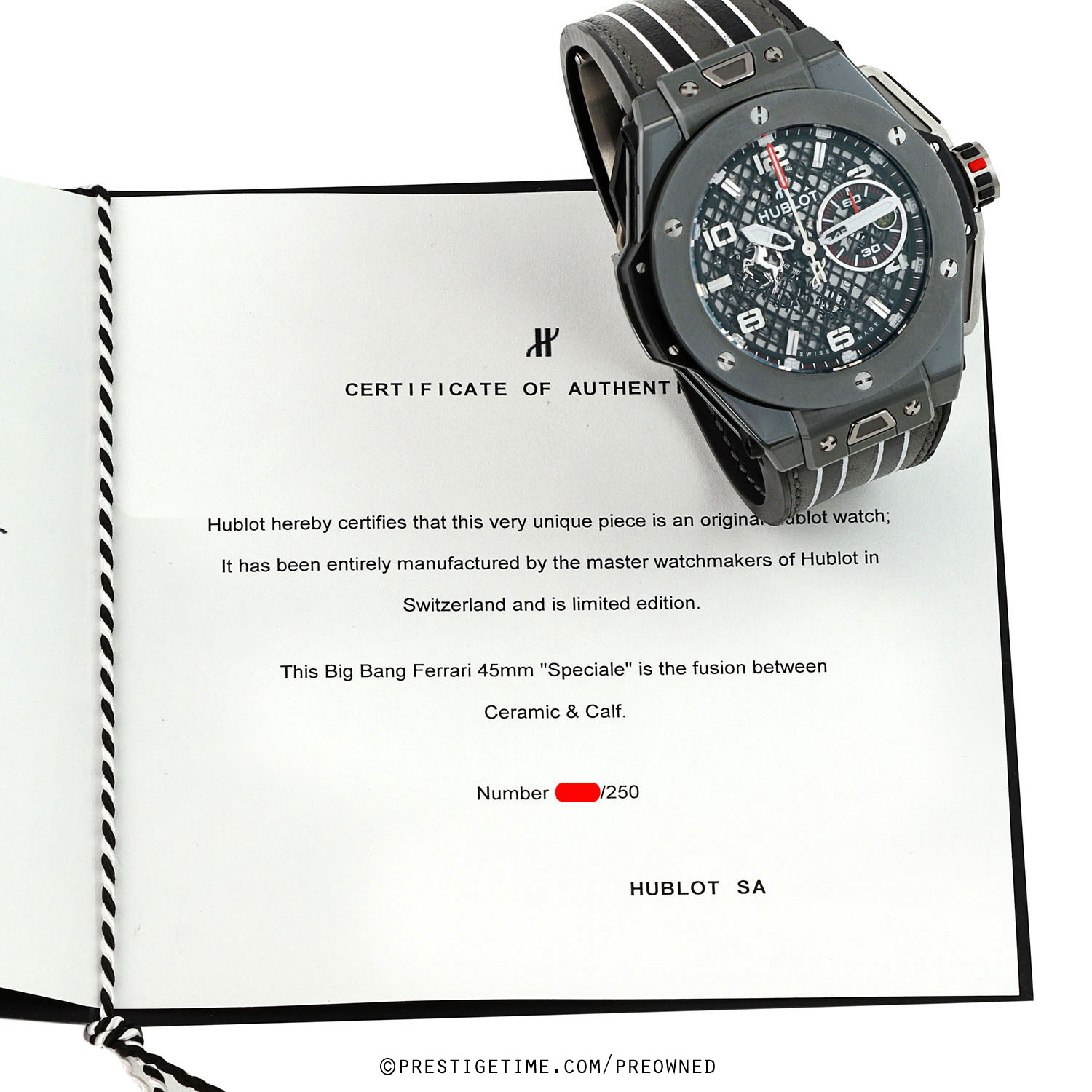 - An additional Hublot original black alcantara leather strap with red stitching is included. This strap is unworn in brand new condition with its full wear lifespan remaining.