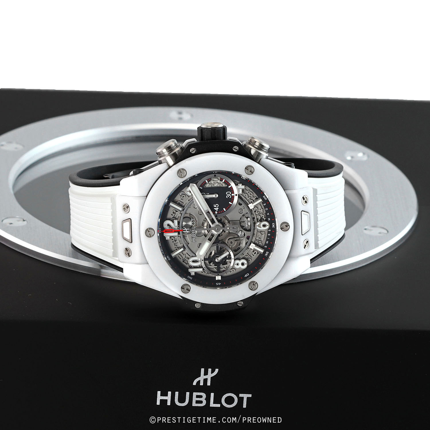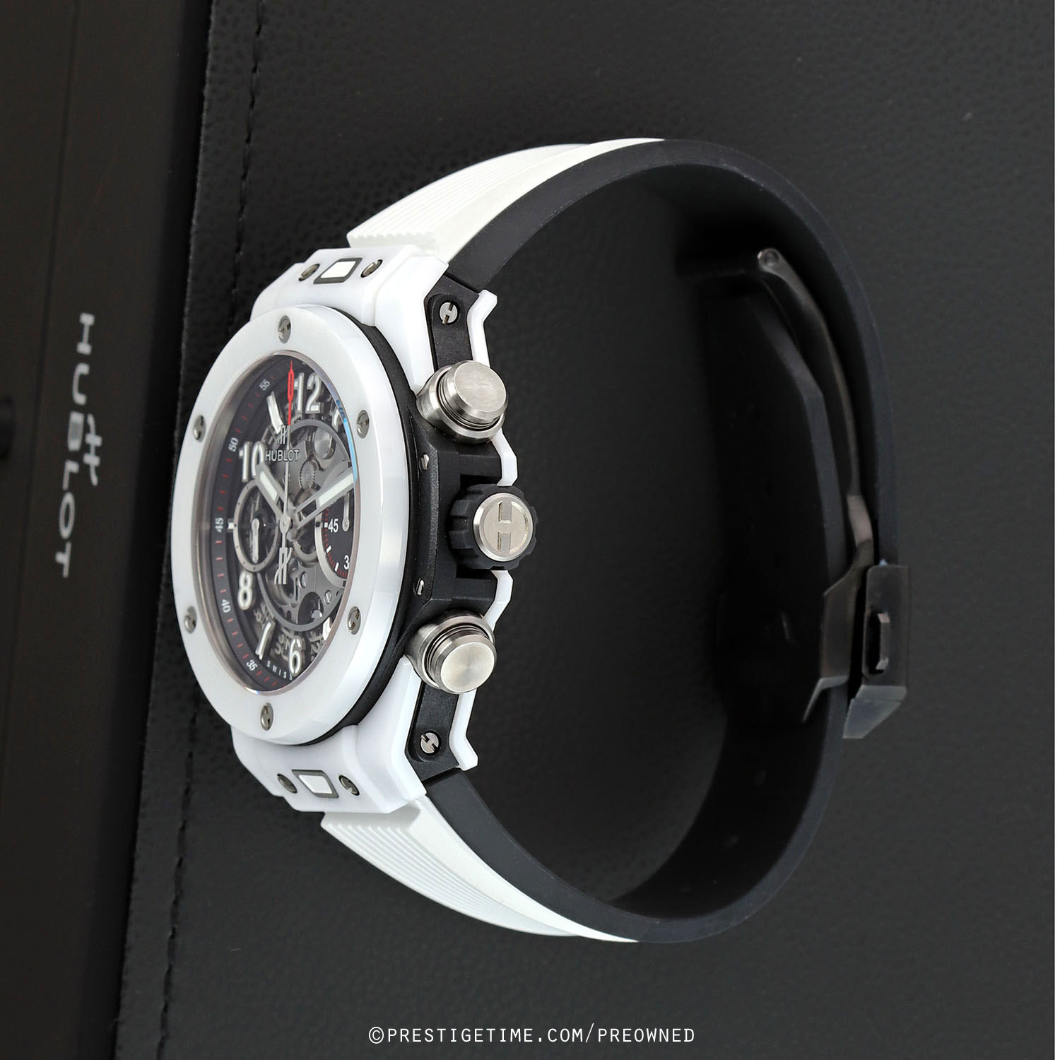 Movement: Powered by an in-house Hublot caliber UNICO HUB1280, which beats at 28,800 vph (4Hz), contains 43 jewels & has a power reserve of +/- 72 hours. Micro-blasted anthracite & ruthenium plated main-plate bridges & rotor. Tungsten rotor.