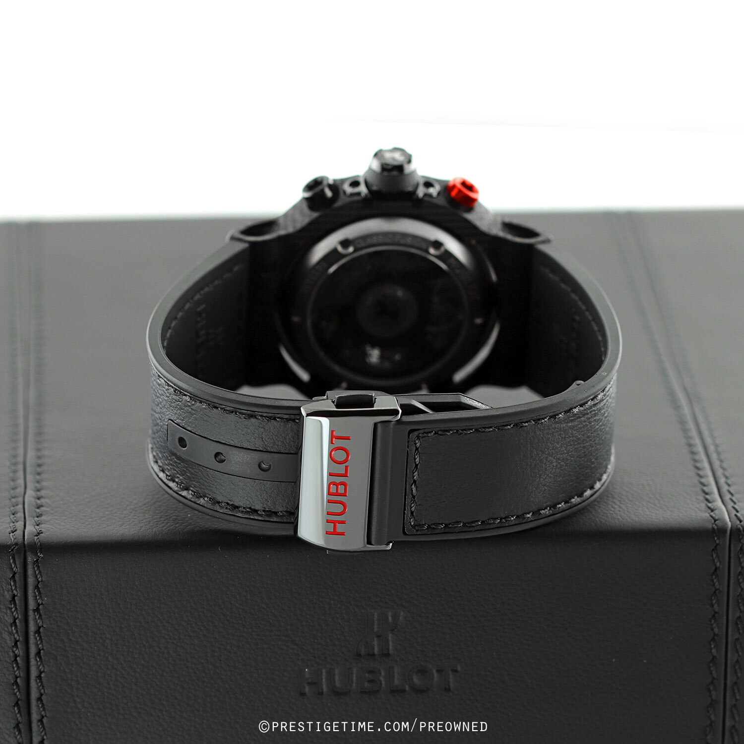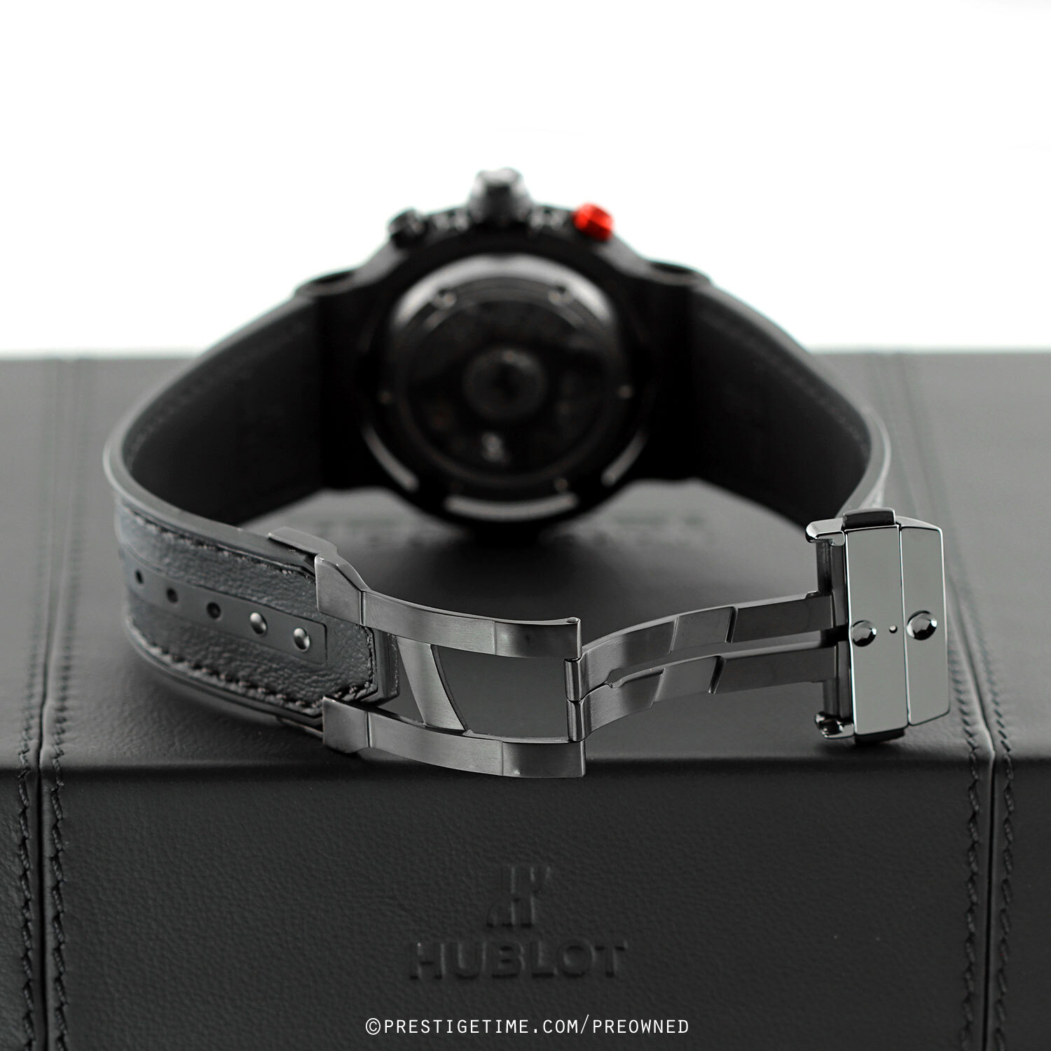 Strap: Fitted on its Hublot original black rubber with soft black schedoni leather inlay strap & a black push-button deployant buckle. The strap is in excellent near new condition with the majority of its wear-lifespan remaining. We would rate the strap in 97%+ condition.