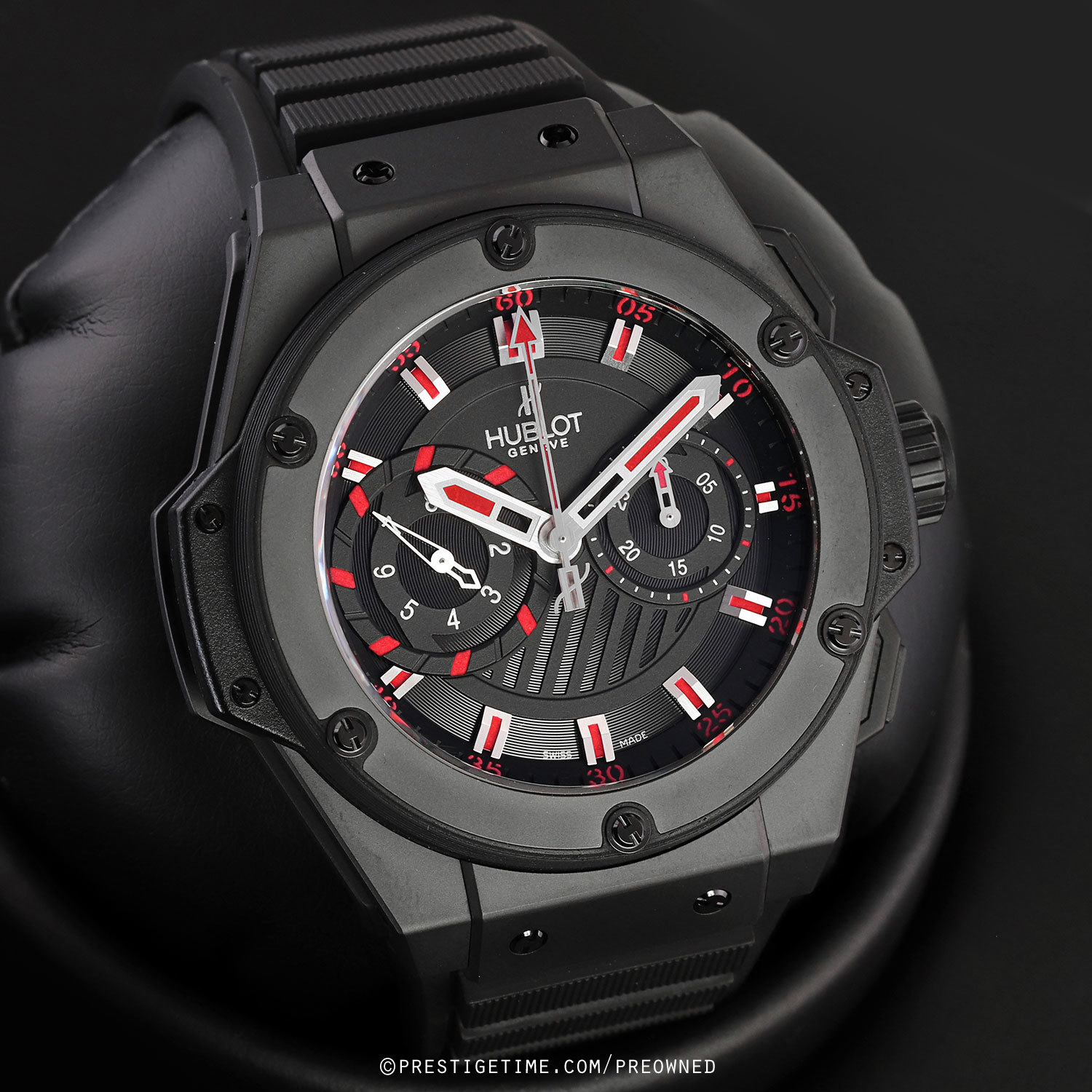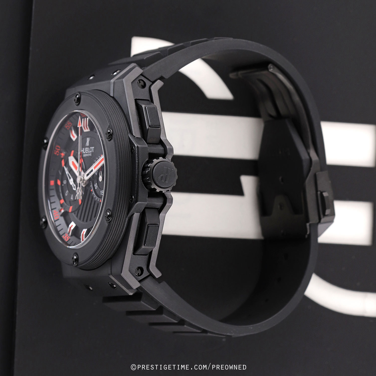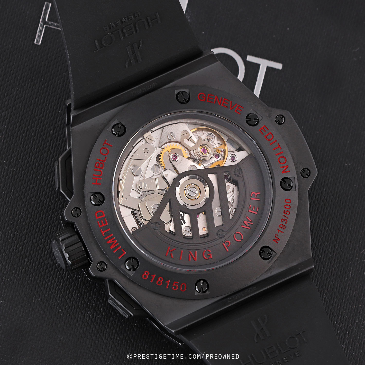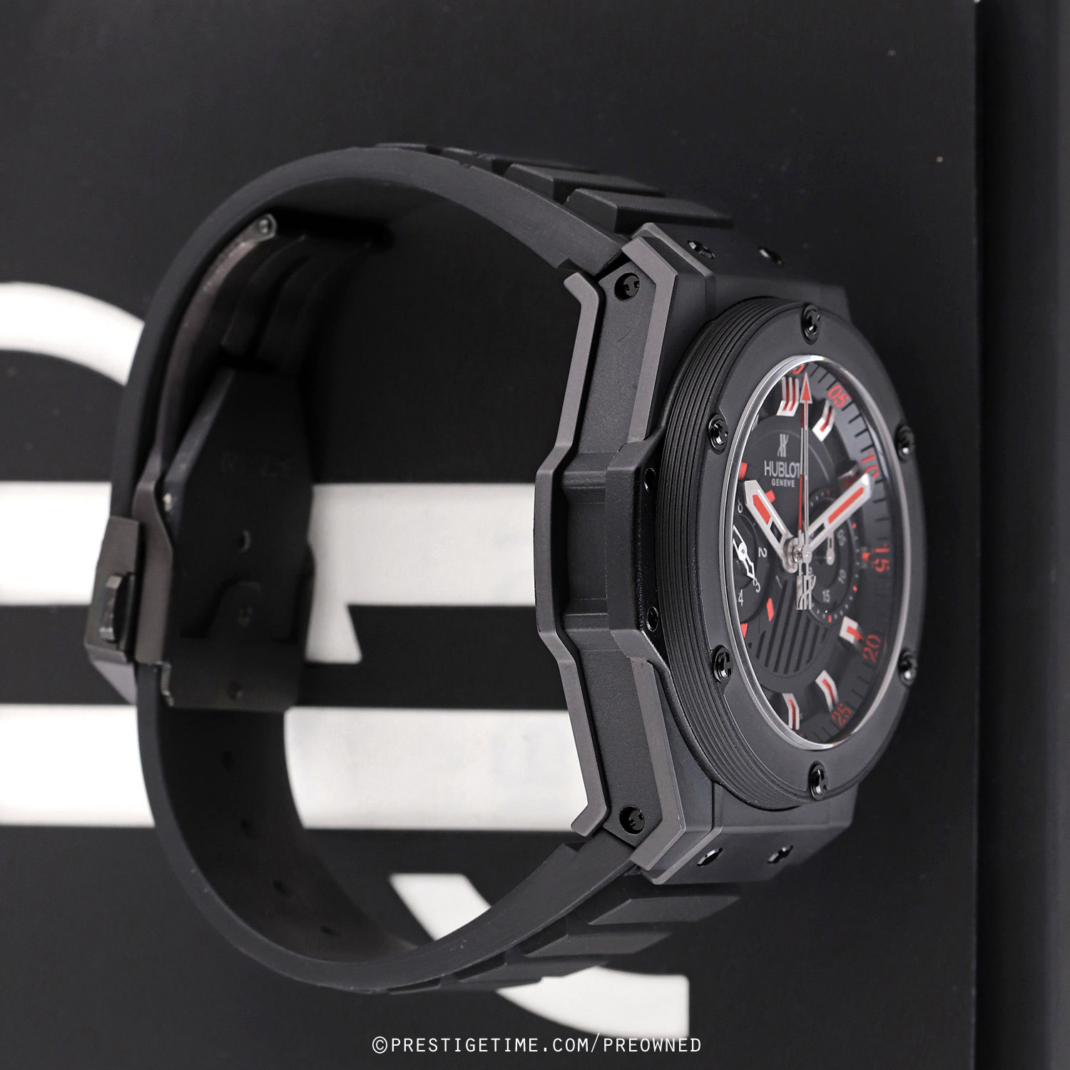Movement: Powered by a Hublot caliber HUB 44 RTF developed in collaboration with La Joux-Perret (base ETA/Valjoux 7750, beats at 28,800 vph (4Hz), contains 40 jewels & has a power reserve of +/ 42 hours.