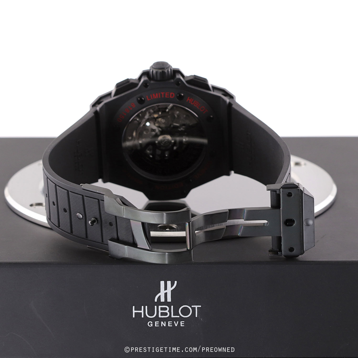 Strap: Fitted on its original Hublot black structured rubber strap with a black PVD coated push-button deployant buckle. The strap is in excellent near new condition with the majority of its wear lifespan remaining. We would be comfortable rating the strap in 97%+ condition.