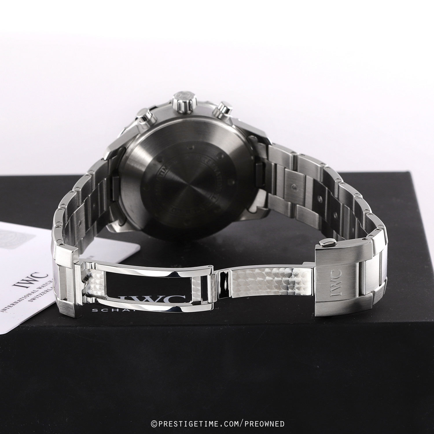 Bracelet: Fitted on its original IWC brushed & polished stainless steel bracelet with a push-button folding clasp. The bracelet features quick-change system via spring loaded levers on the end-links & a quick sizing system which allows the links to be removed easily. The bracelet is fully linked & will fit up to an 8"" wrist.