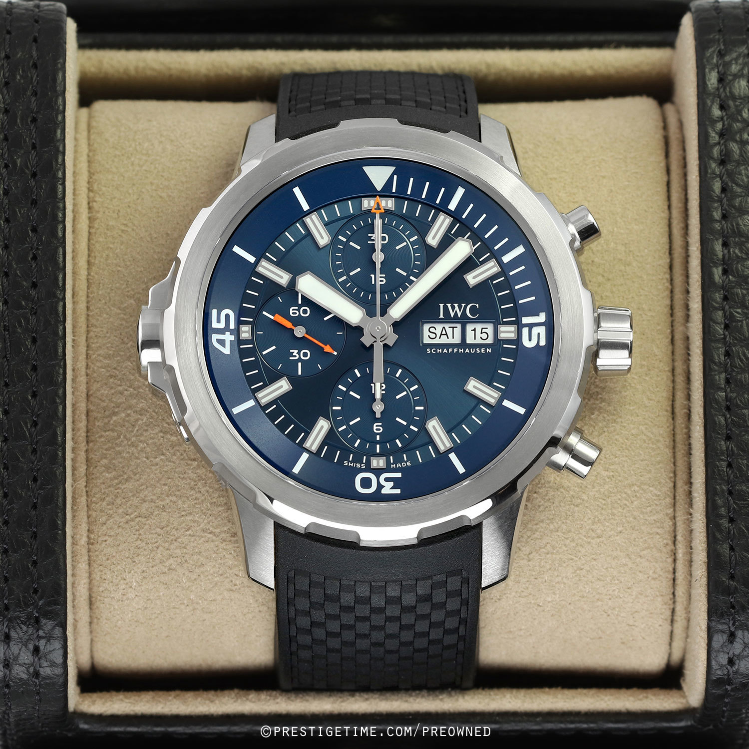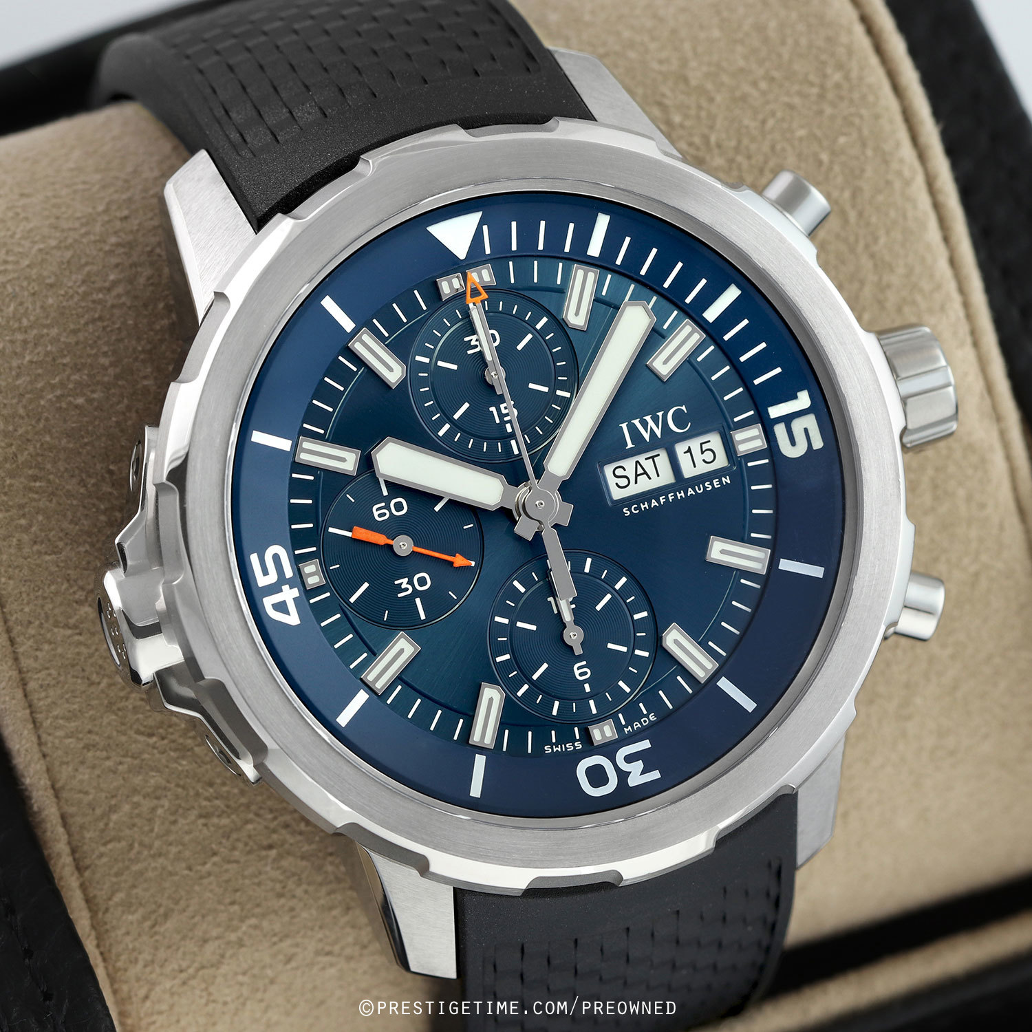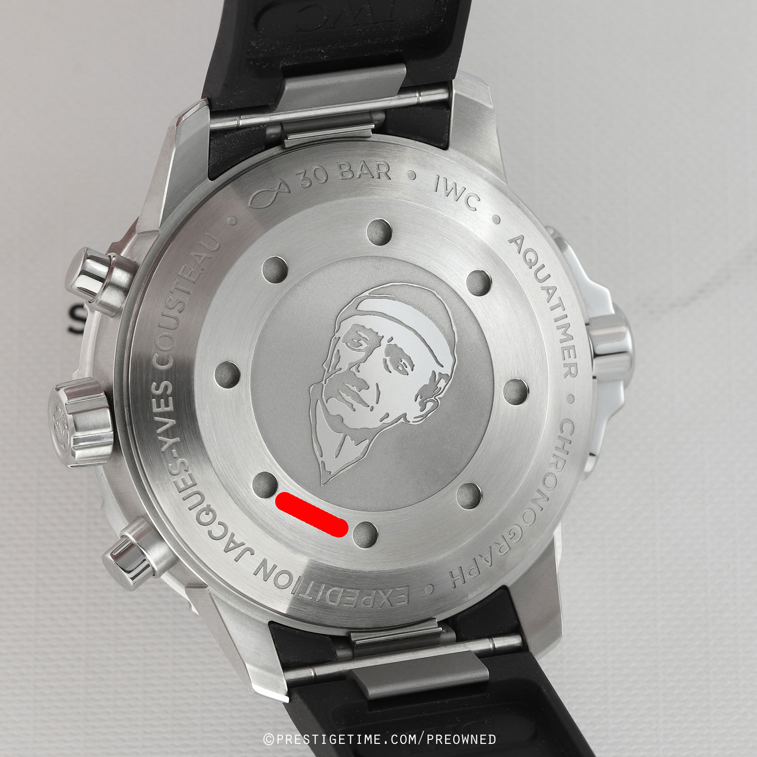 Aquatimer Chronograph Edition Expedition Jacques-Yves Cousteau - IWC pays tribute in honor of the French diving pioneer and oceanographer Mr. Jacques-Yves Cousteau with this special edition. Featuring a case back engraving depicting the "Commandant" Jacques Cousteau with his trademark beanie.