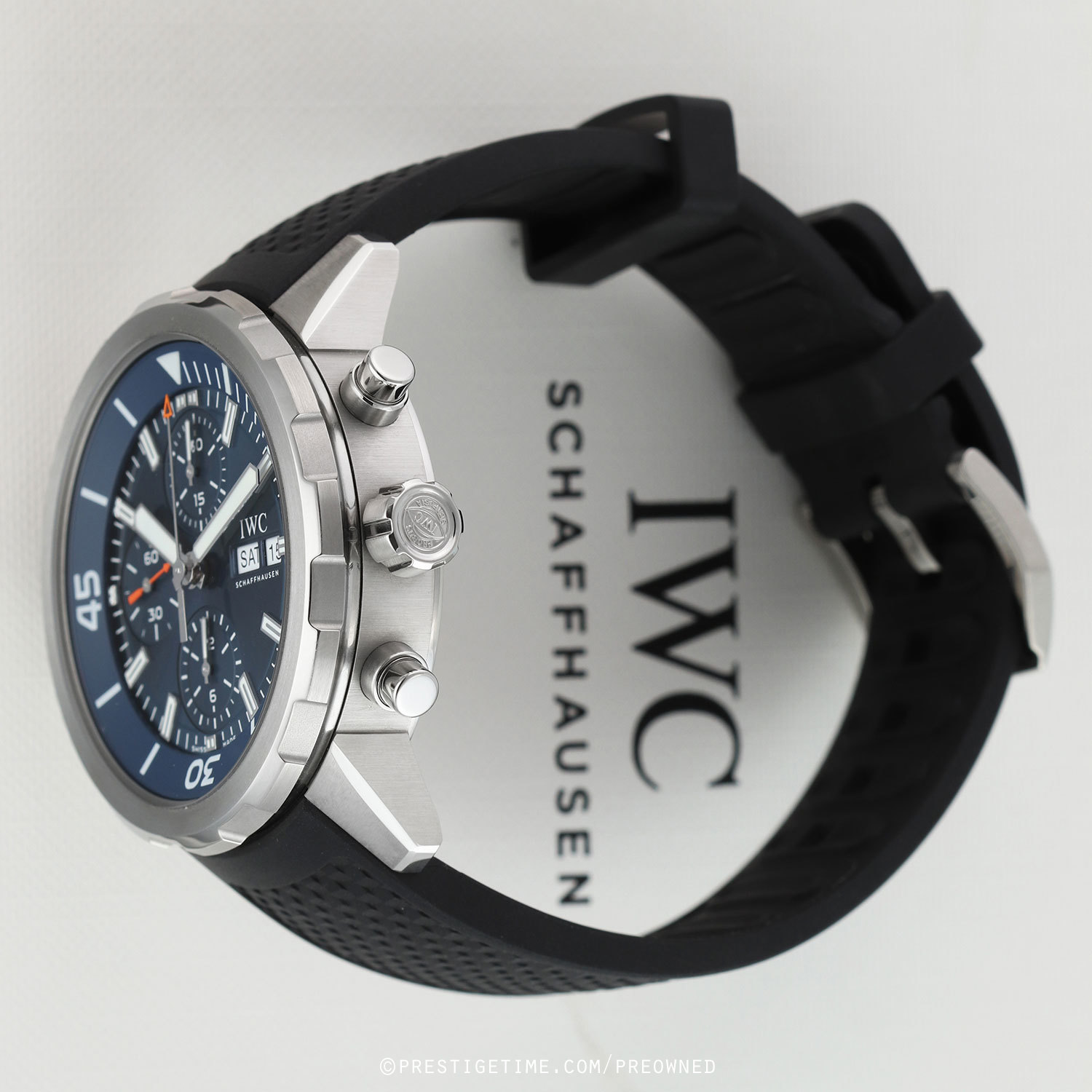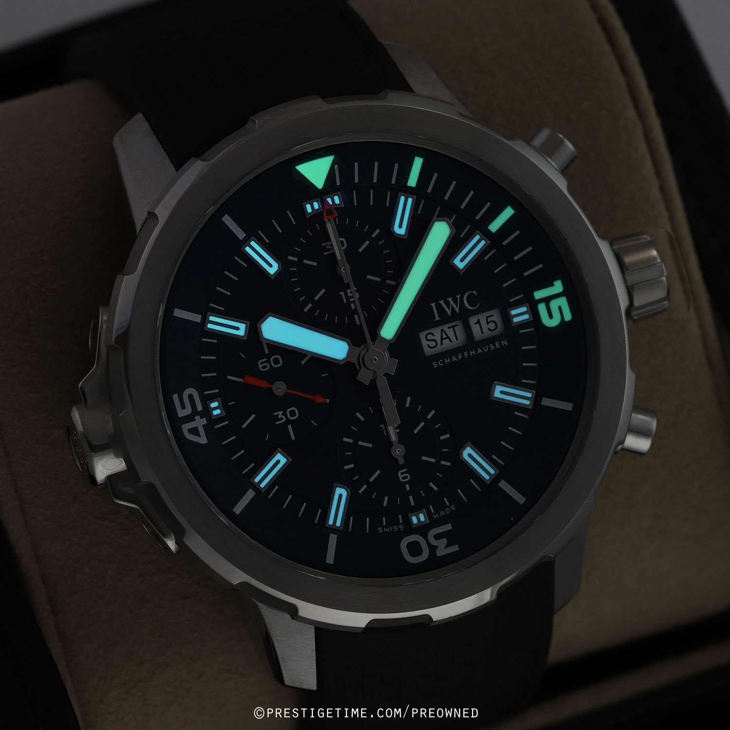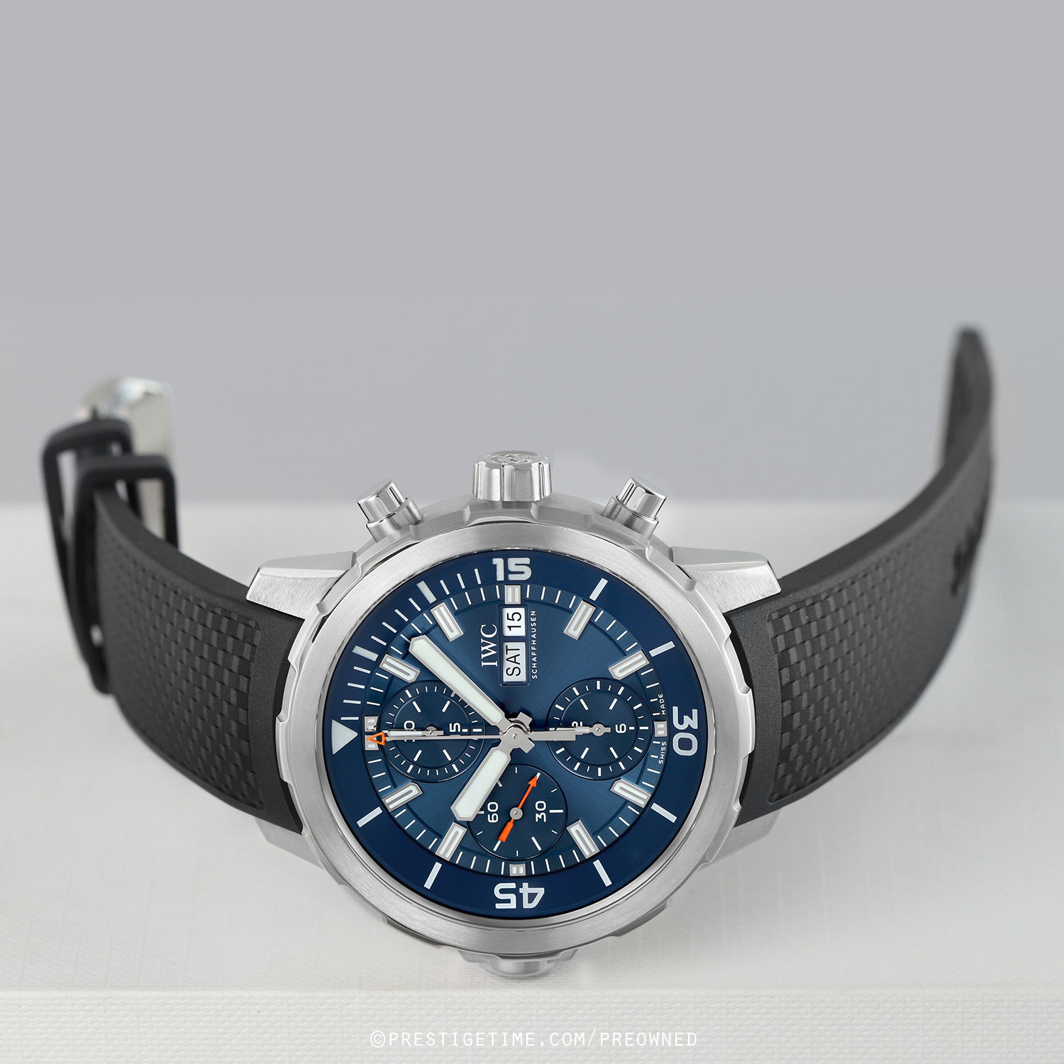 Aquatimer Chronograph Edition Expedition Jacques-Yves Cousteau - IWC pays tribute in honor of the French diving pioneer and oceanographer Mr. Jacques-Yves Cousteau with this special edition. Featuring a case back engraving depicting the "Commandant" Jacques Cousteau with his trademark beanie.