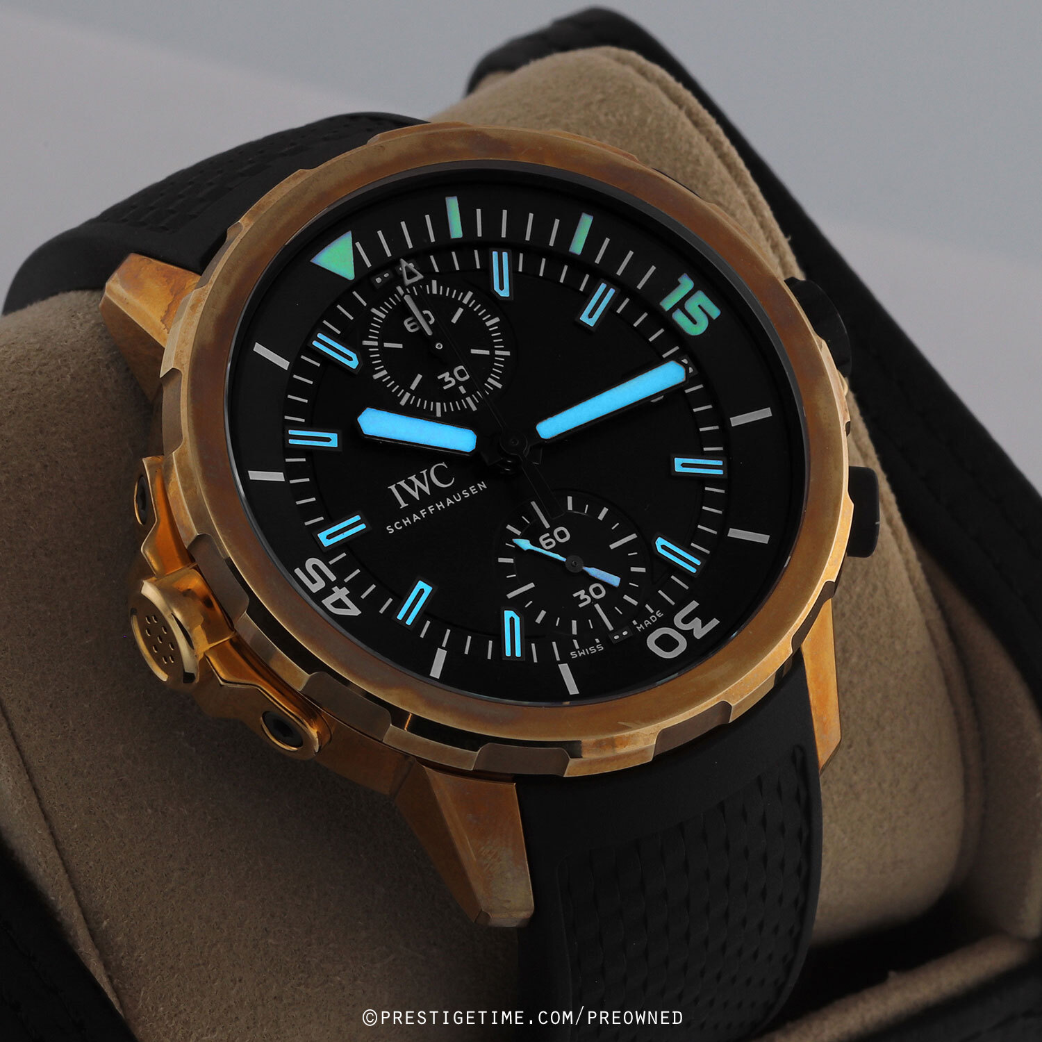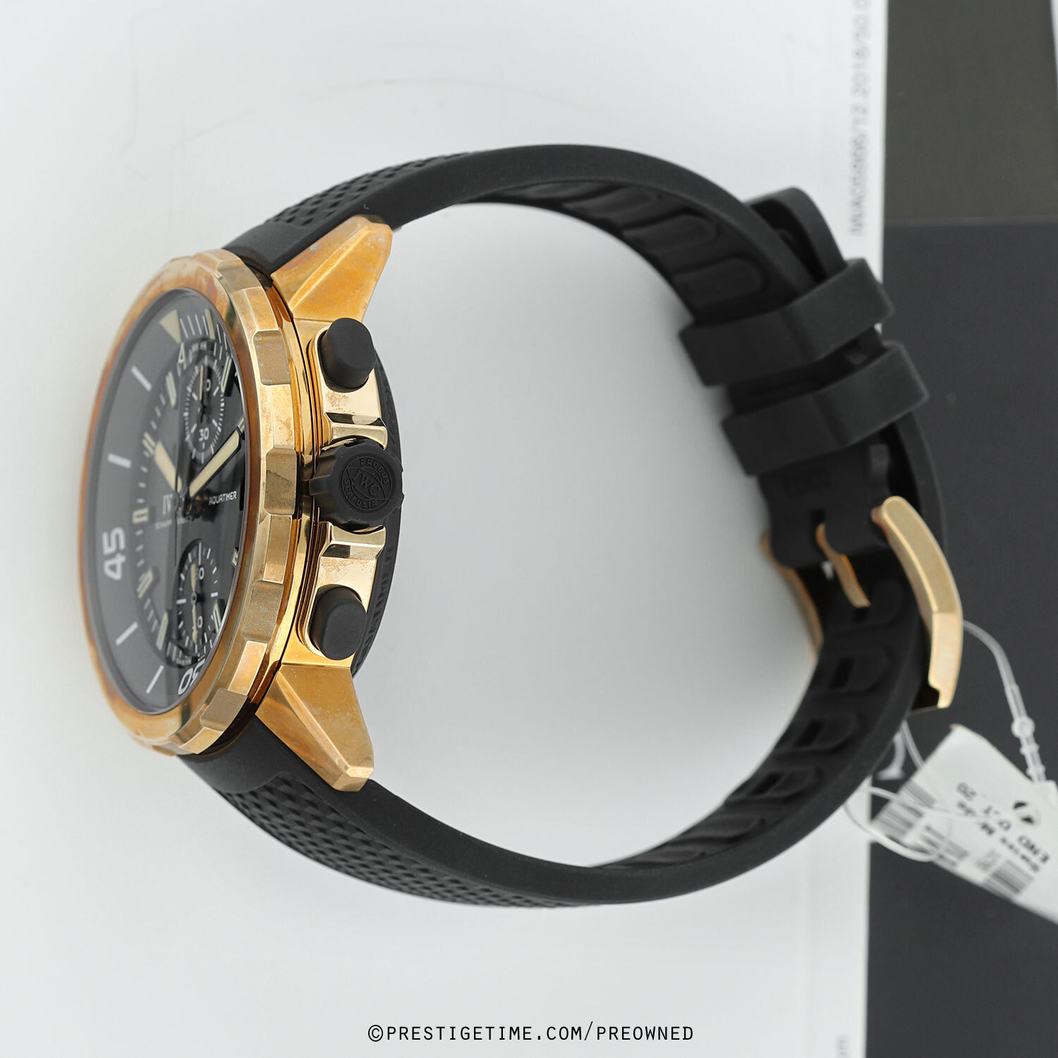 Condition: This watch is in excellent near new overall condition, worn a handful of times at the most. A slight patina, characteristic for bronze has begun to develop on this timepiece. The watch does not have any noticeable scratches, dents or dings. The protective back sticker is still in place. We would rate this watch in a solid 98% overall condition. Delivered in its original box with all papers. The original owner has had the factory warranty extended through the IWC care program until 06/26/2026.