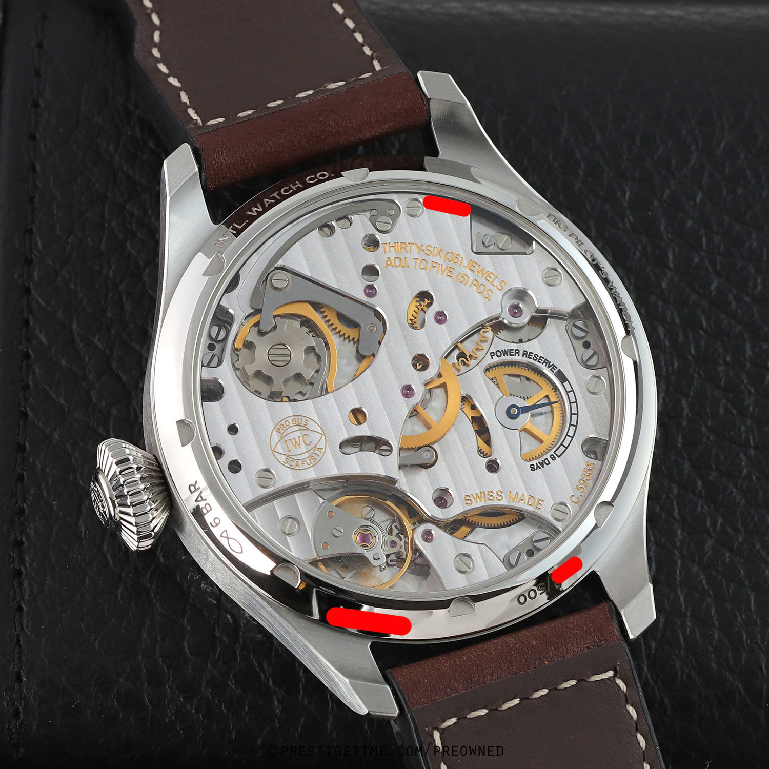 Movement: Powered by a manual-winding IWC in-house calibre 59365, with hacking seconds, beats at 28,800 vph (4Hz), contains 36 jewels & has an impressive 8 day (192 hours) power reserve.