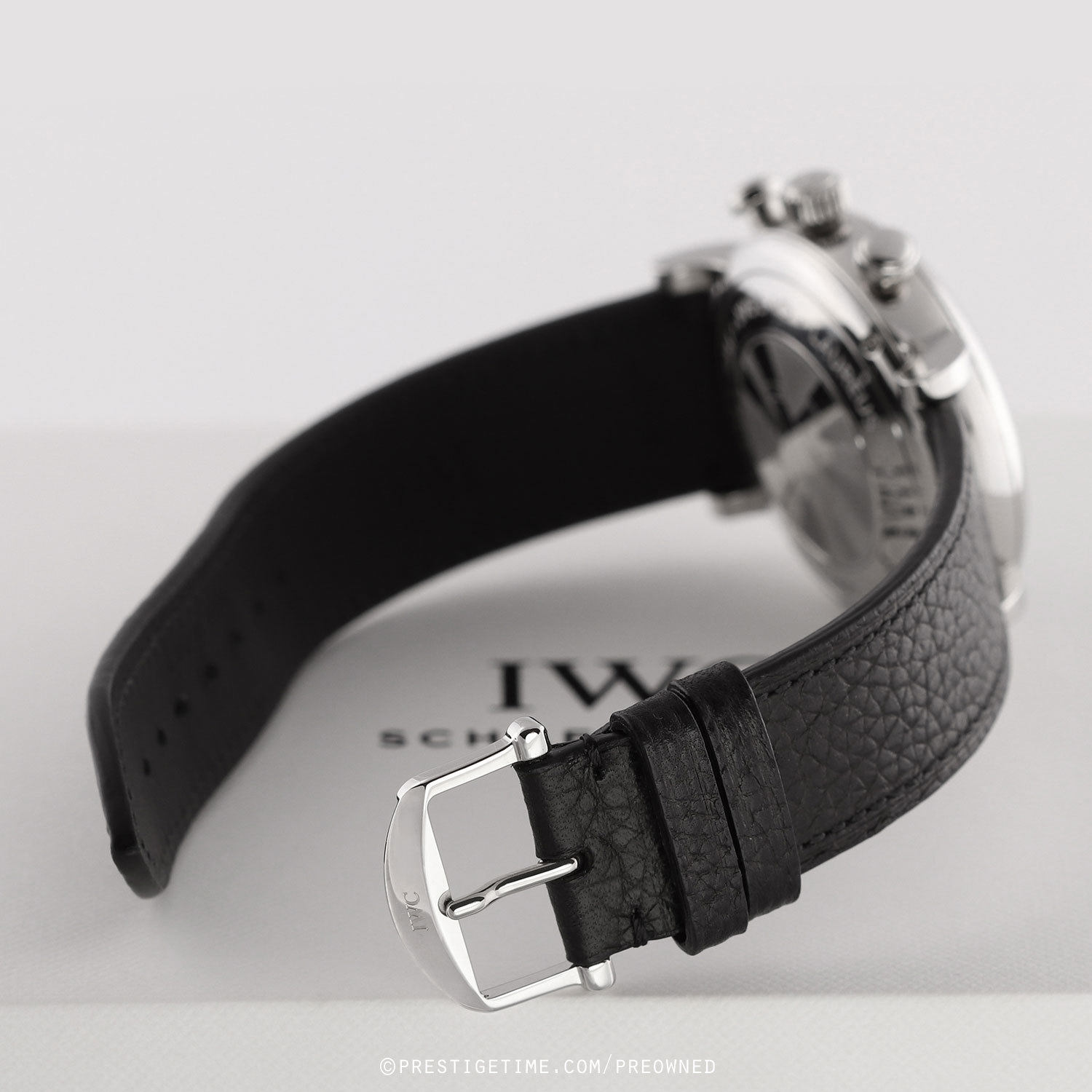 Strap: Fitted on its IWC original black grained calfskin leather strap with a stainless steel tang buckle. The strap is in excellent, near new condition with it full wear lifespan remaining. We would be comfortable rating the strap as in 99% condition.