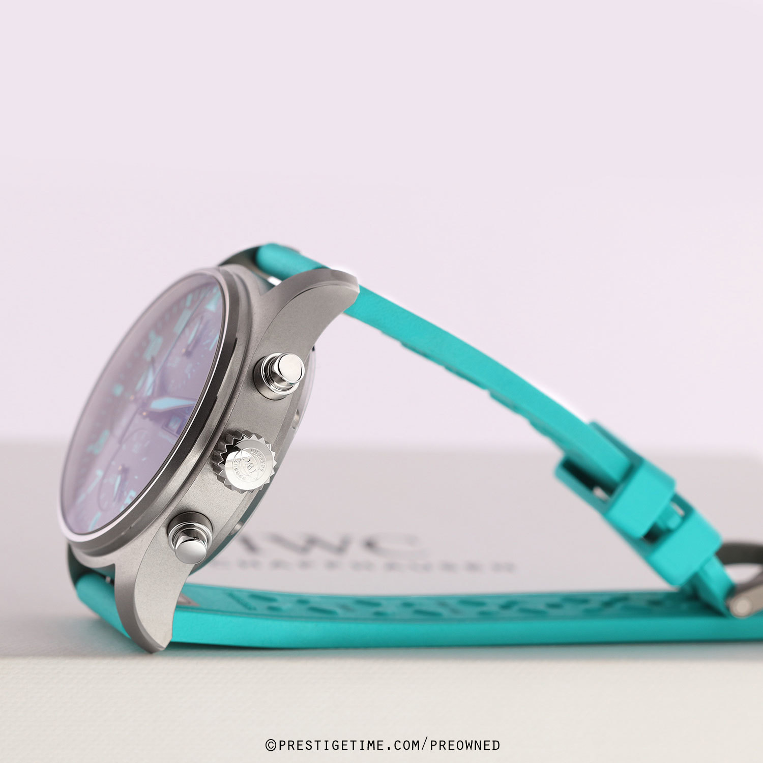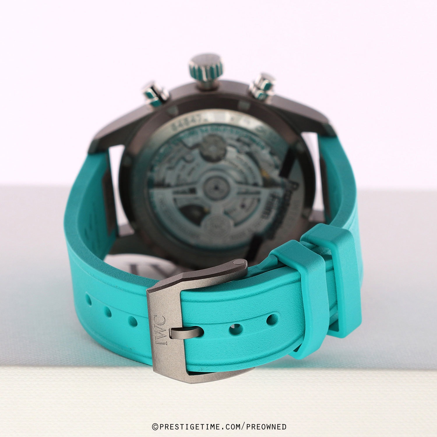 - Fitted on its original IWC Petronas=green colored rubber strap with a sandblasted titanium buckle. The strap is brand new & unworn with its complete wear lifespan remaining.