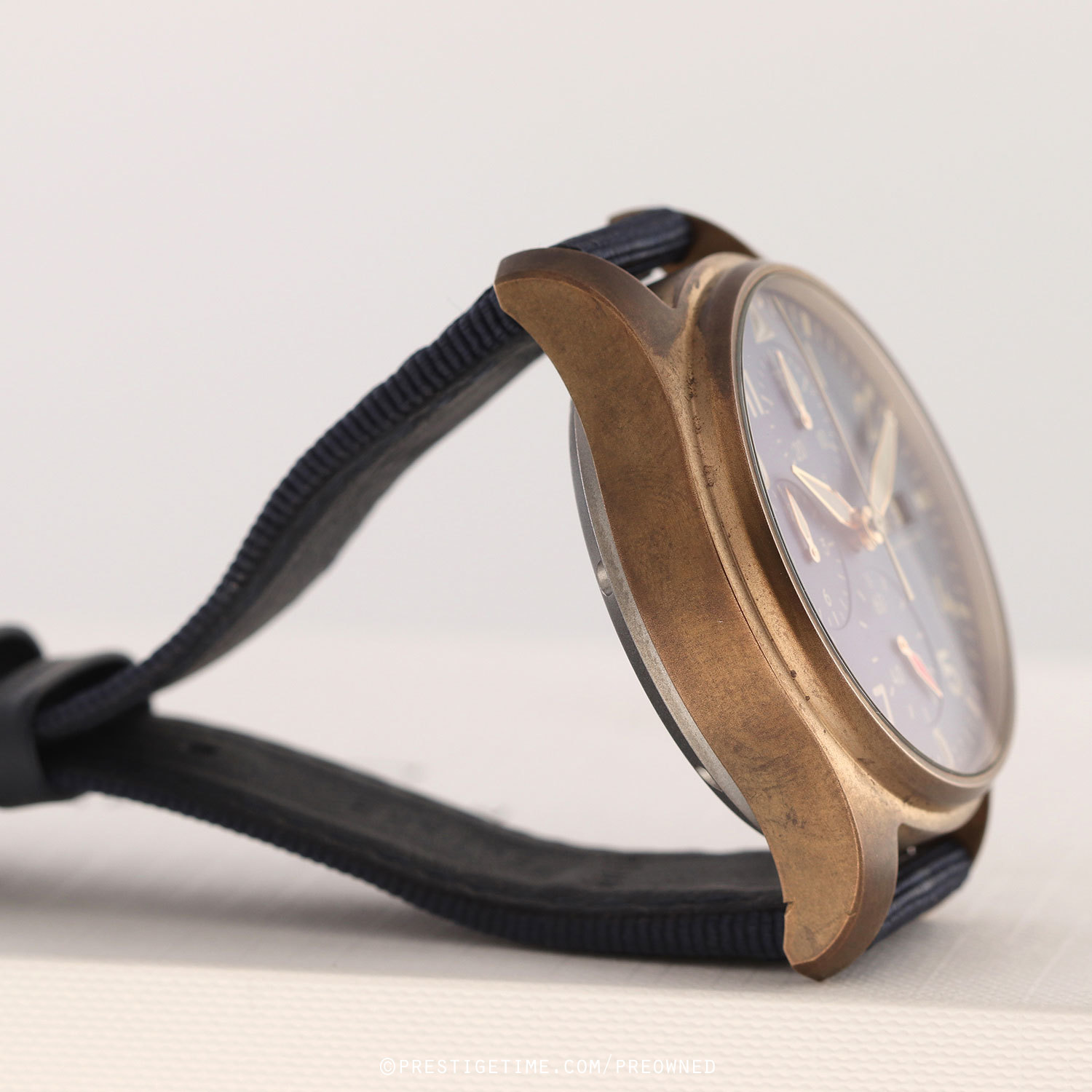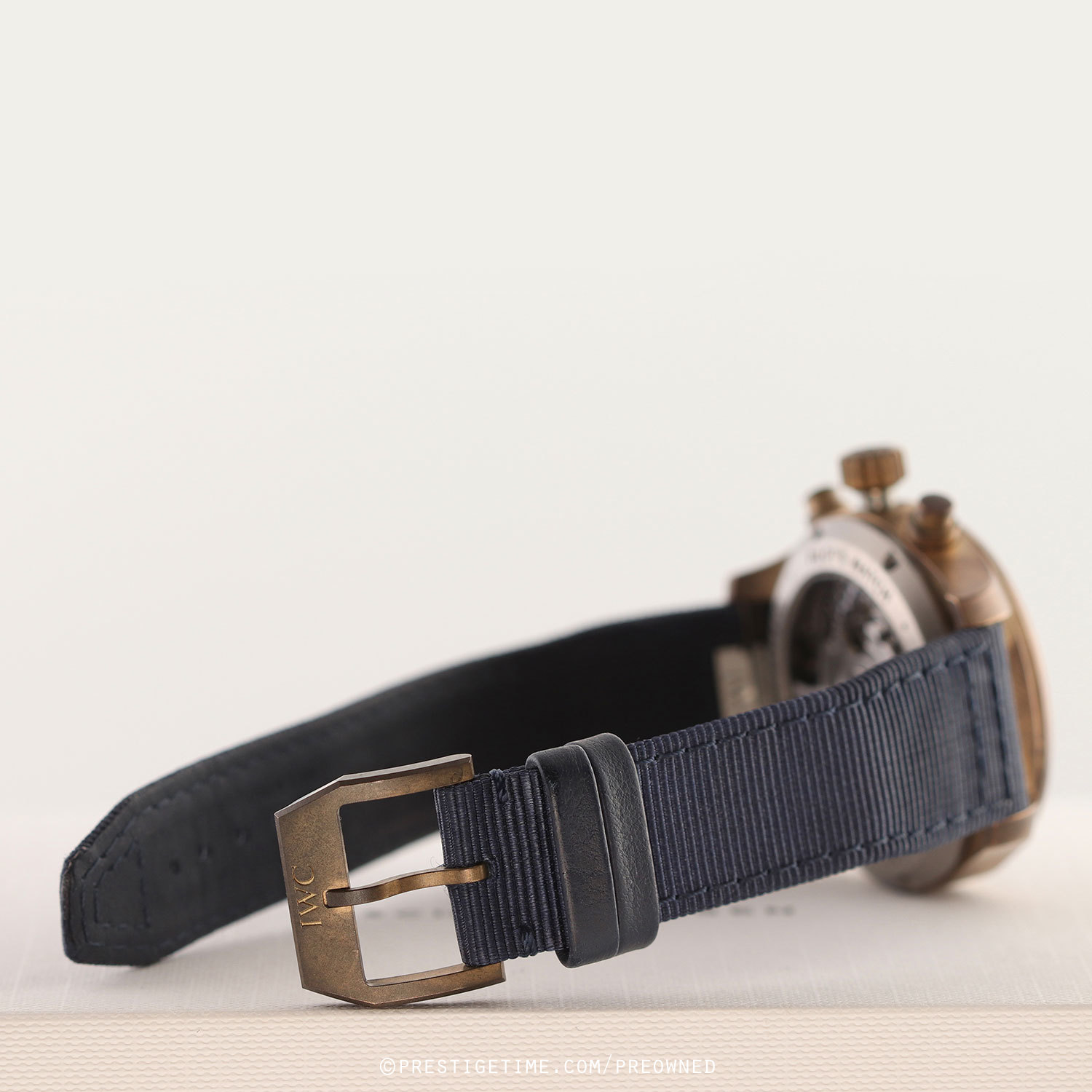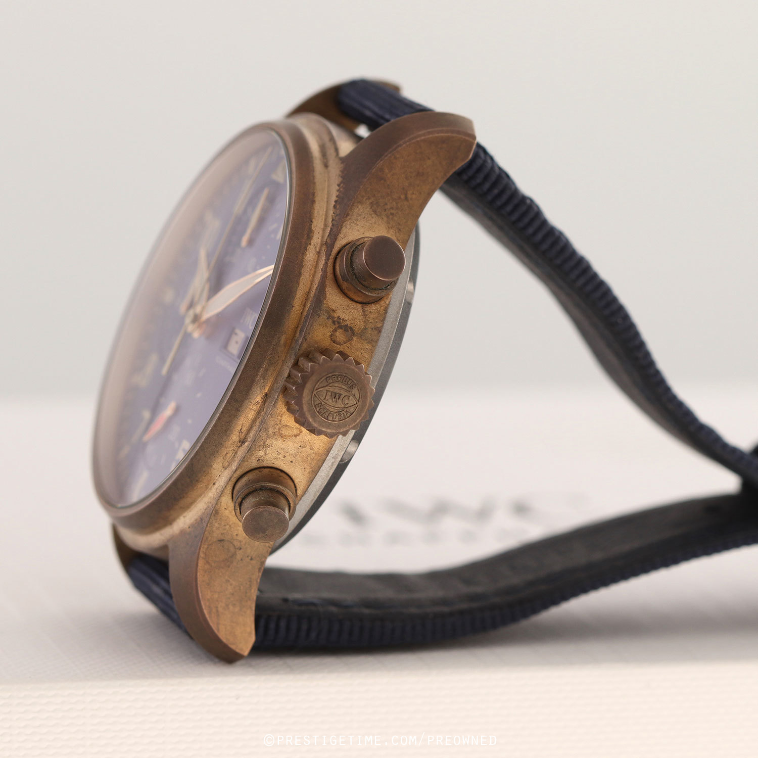 Strap: Fitted on its original IWC blue fabric strap with a bronze deployant buckle.