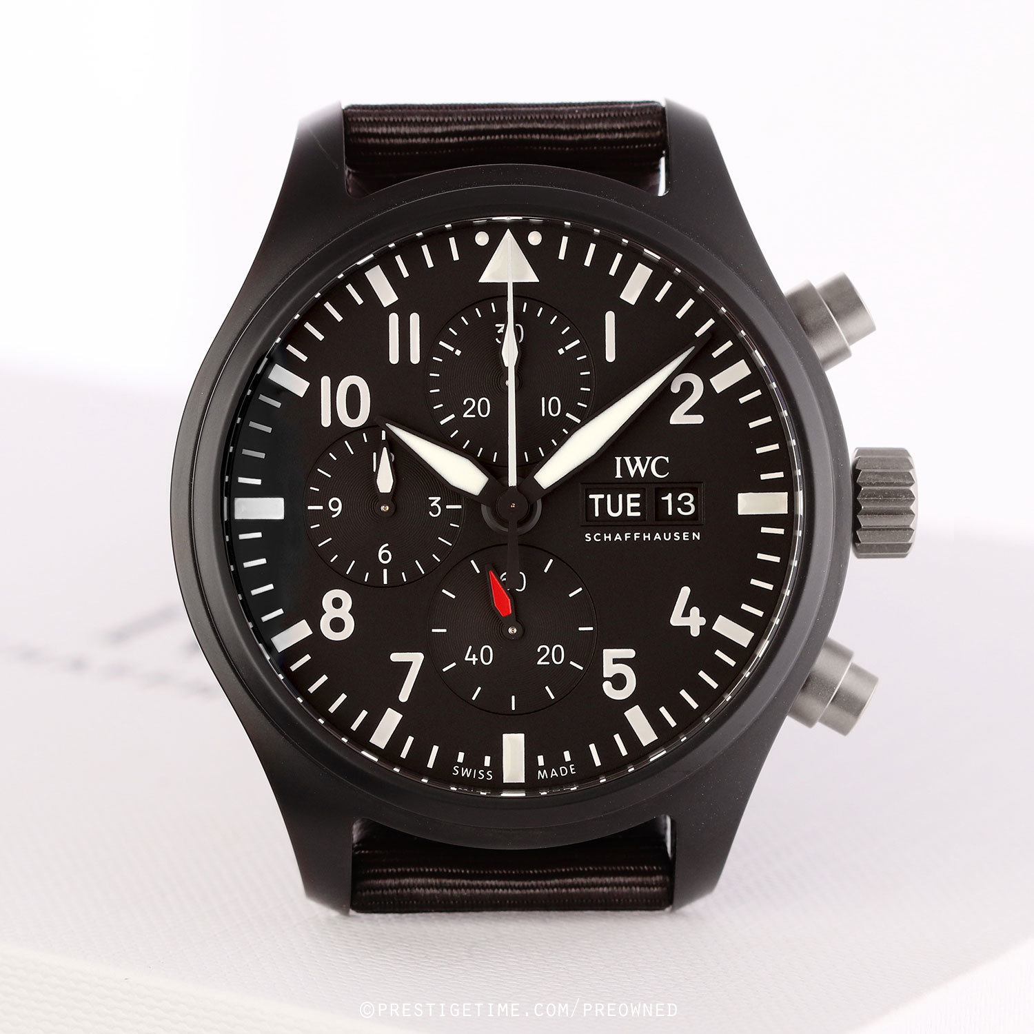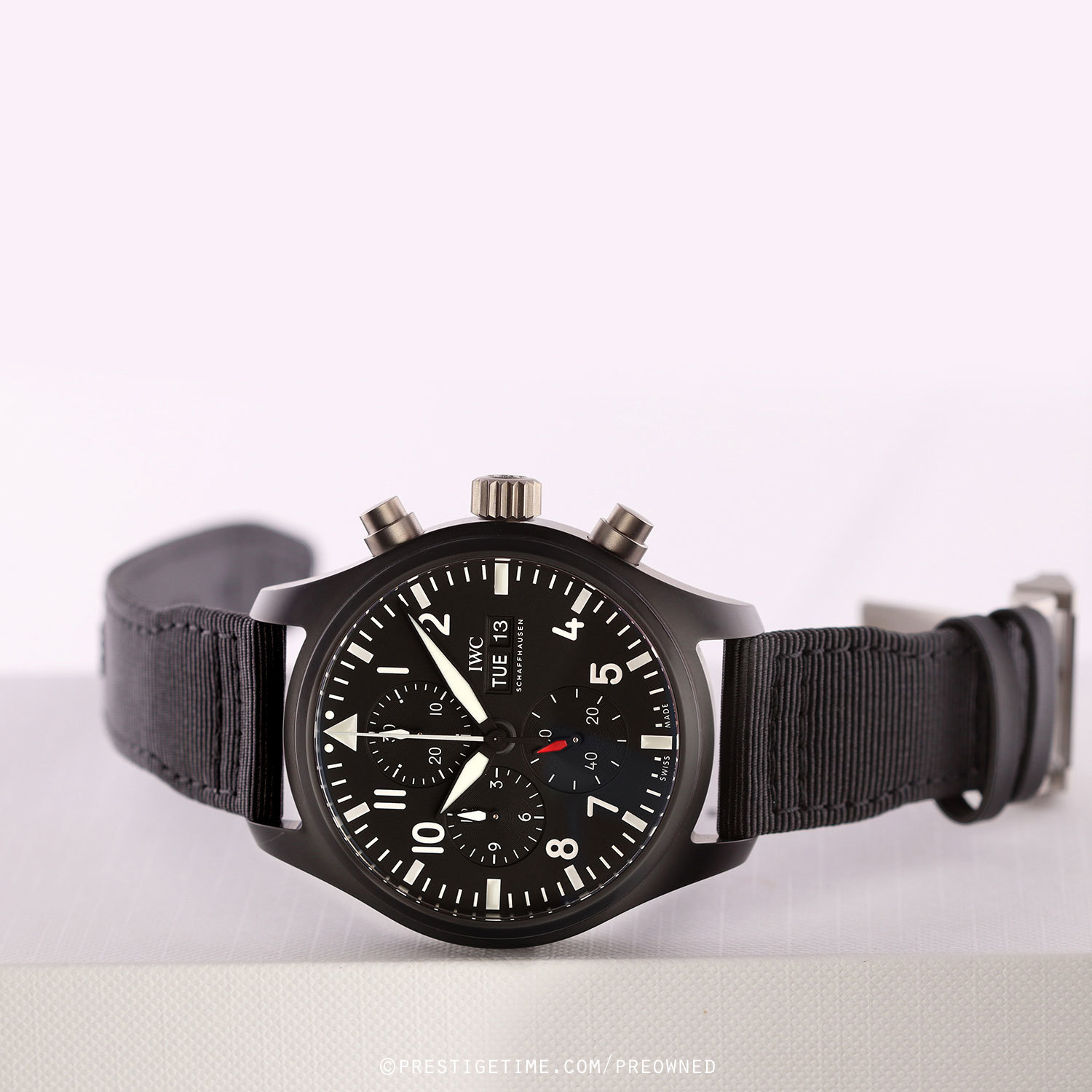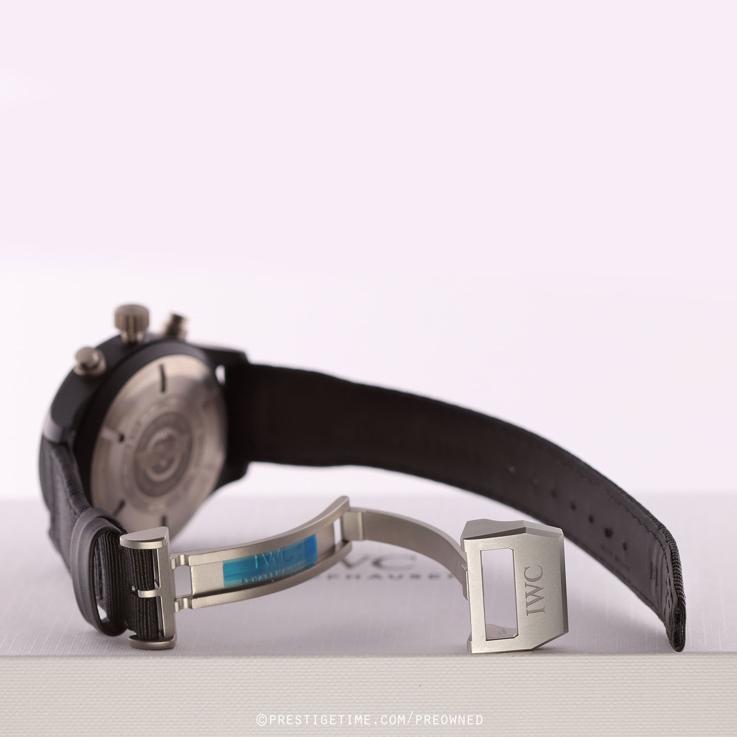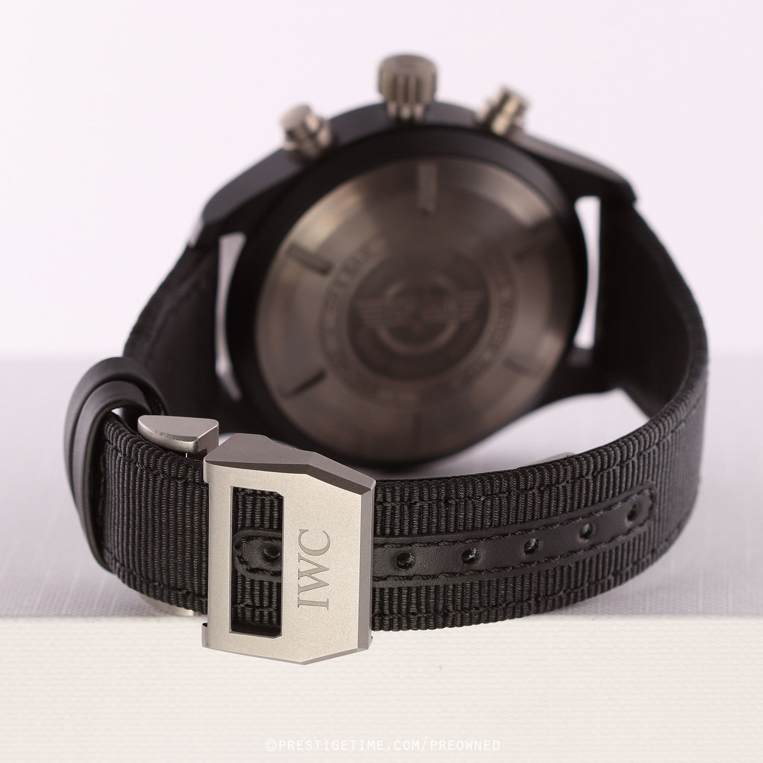 Strap: Fitted on its IWC original black fabric strap with a titanium deployant buckle. The strap is unworn, in near new condition with its full wear lifespan remaining.