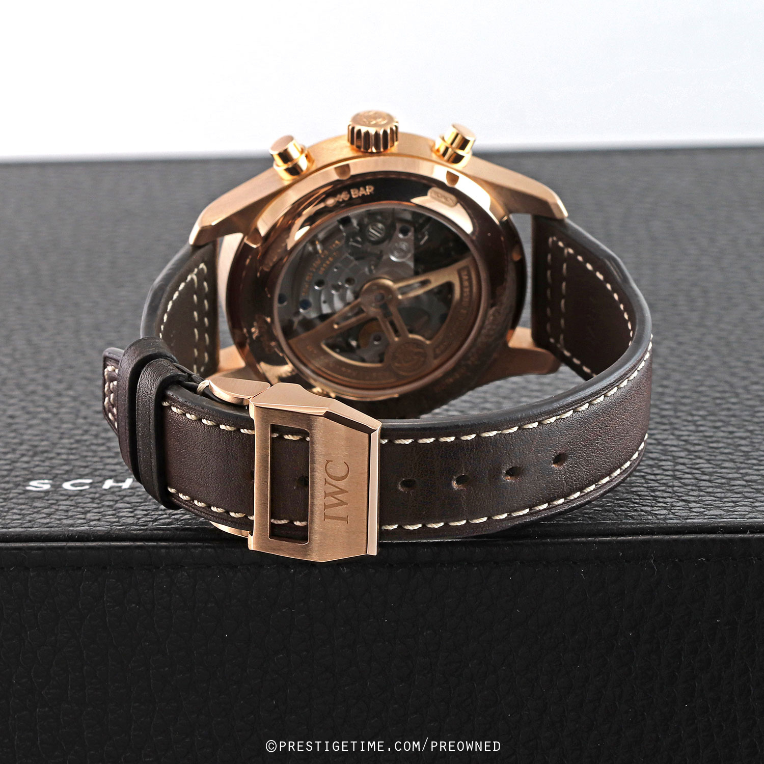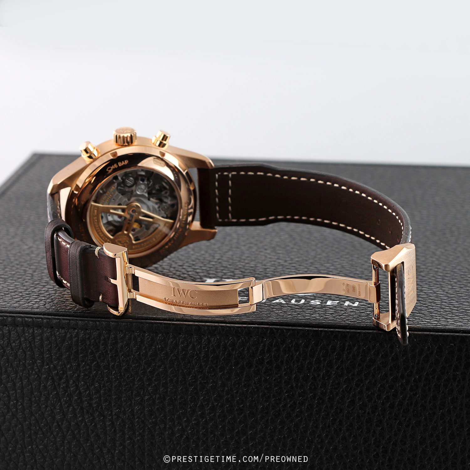 Strap: Fitted on its original IWC brown calfskin leather strap with contrasting off-white stitching and a solid 18kt rose gold tang buckle. The strap is in excellent, near new condition with the majority of it wear lifespan remaining. We would be comfortable rating the strap as in 97%+ condition.