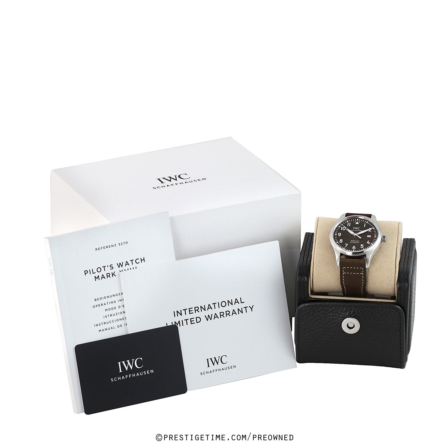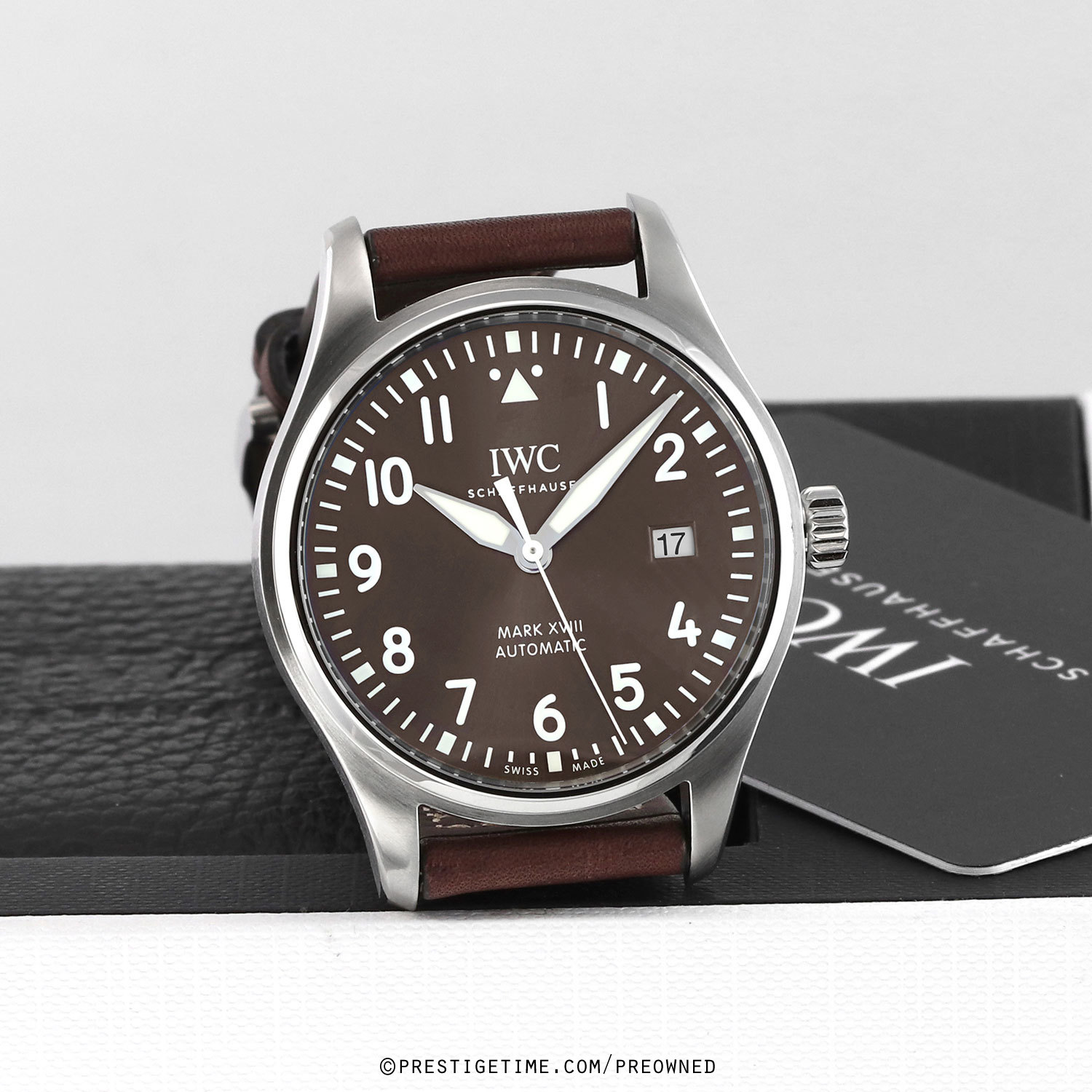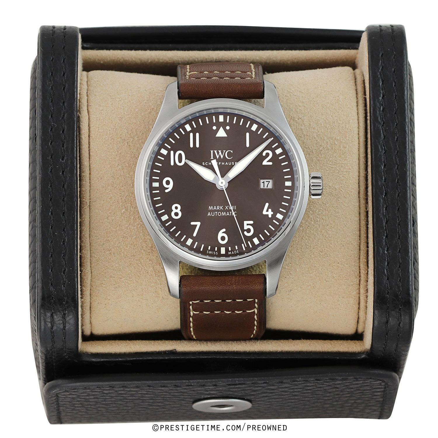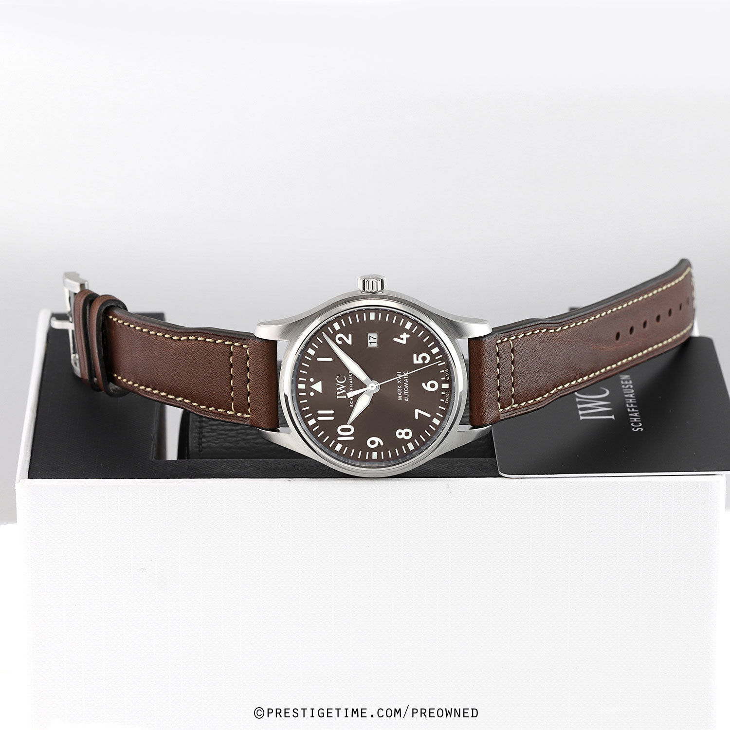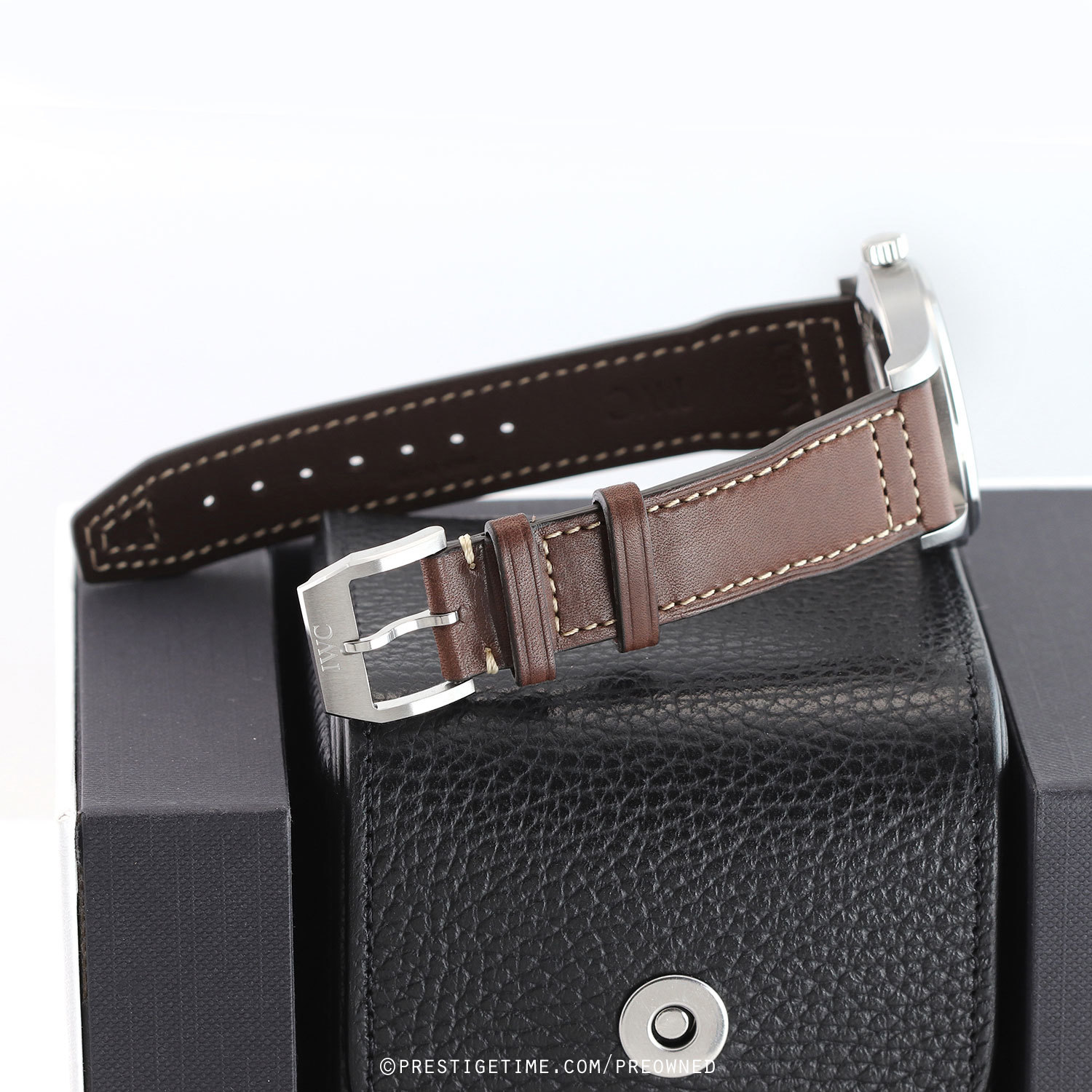 Strap: Fitted on a new IWC original pilot style brown calfskin leather strap with off-white stitching & a stainless steel tang buckle. The strap is brand new & unworn condition with its full wear lifespan remaining.