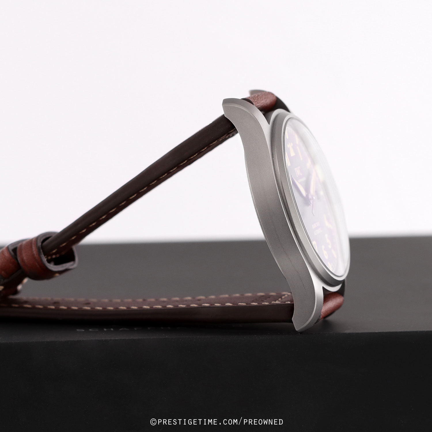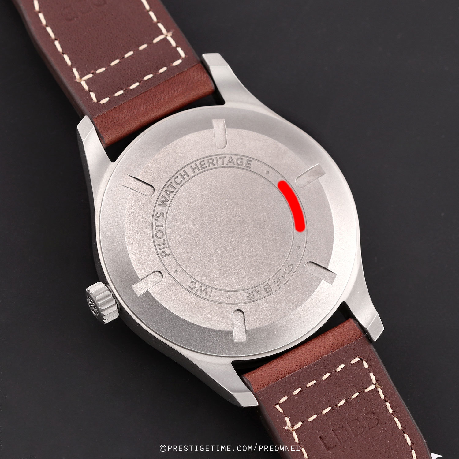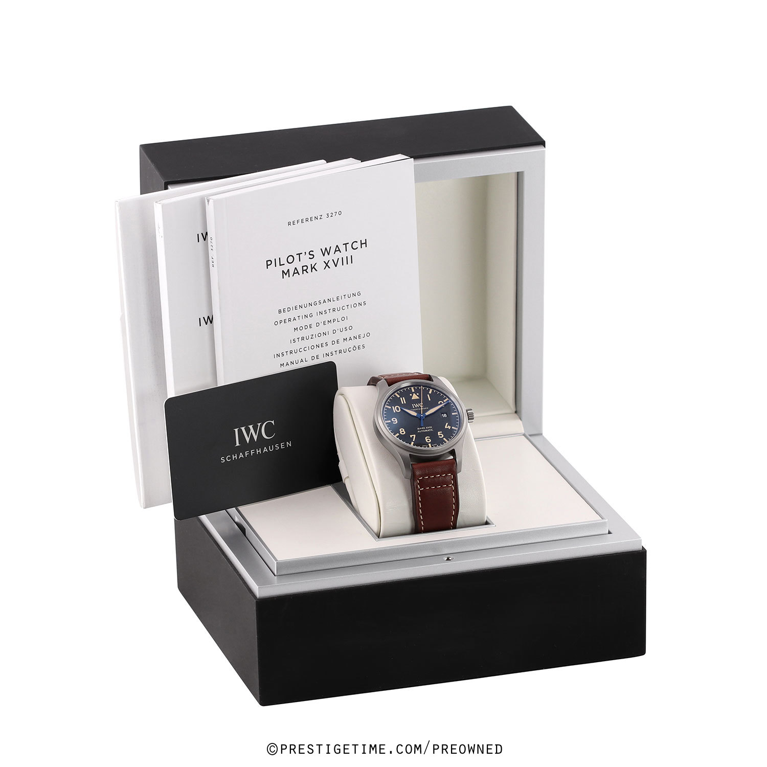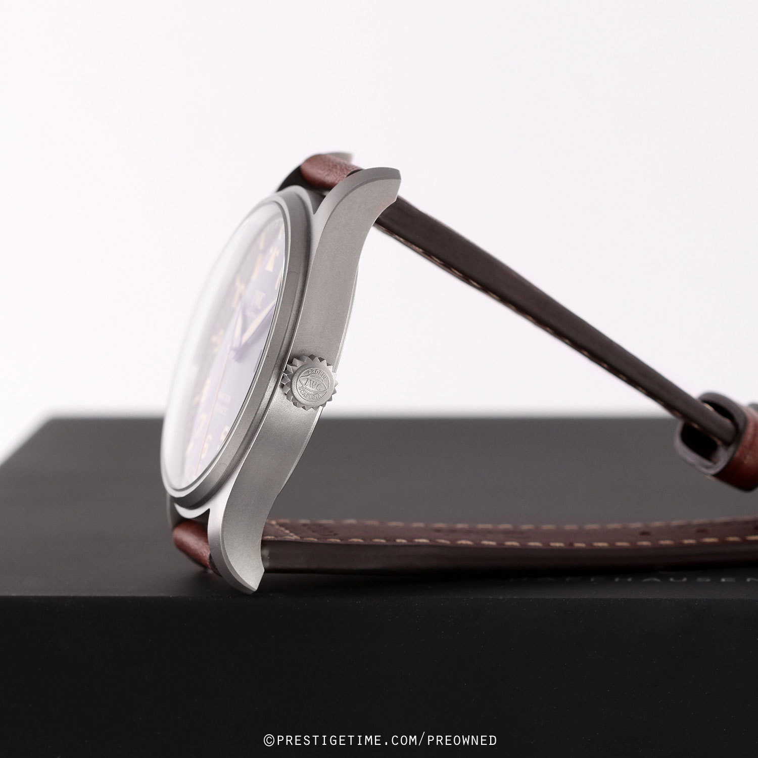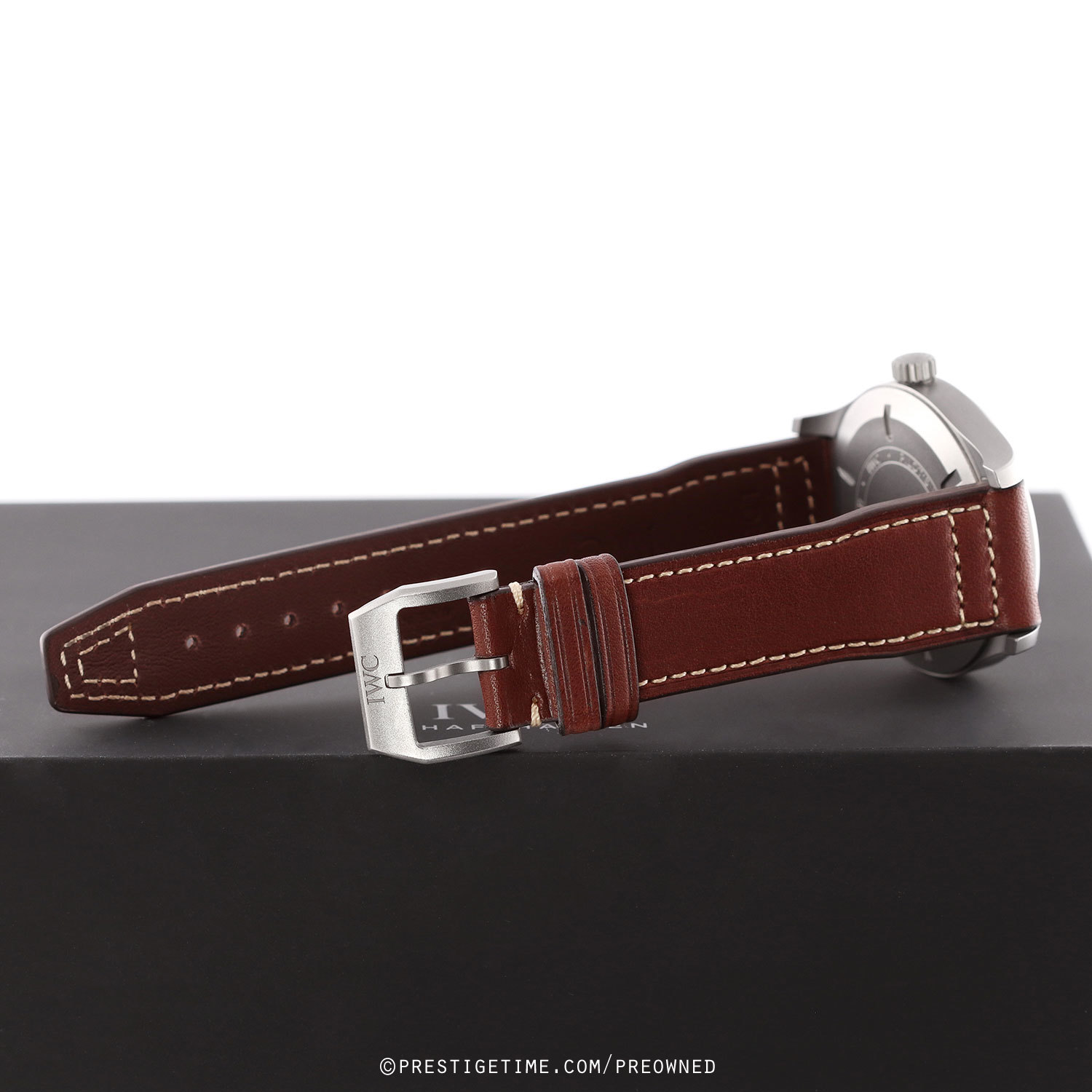 Strap: Fitted on a new IWC original brown calfskin leather strap with a matte finished tang buckle. The strap is unworn, in brand new condition with its full wear lifespan remaining.