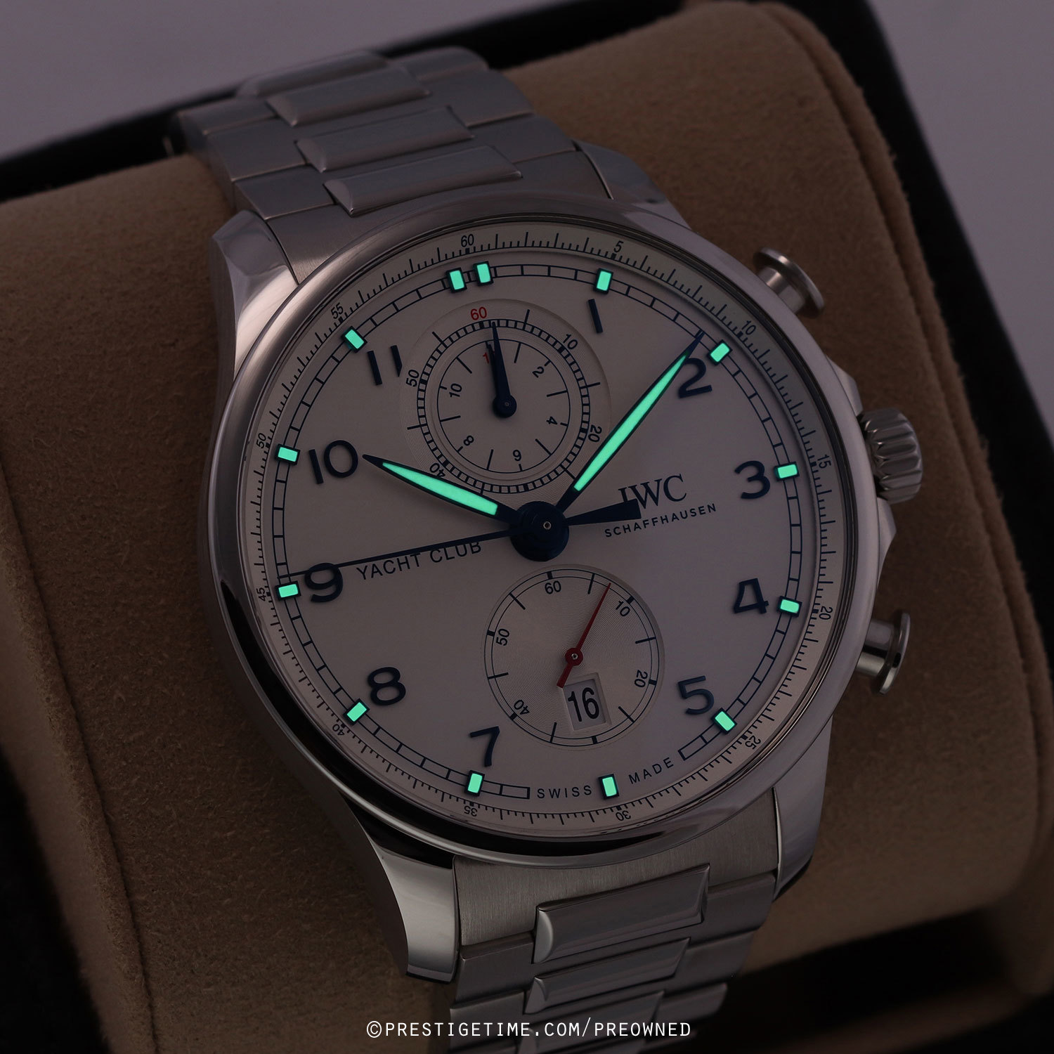 Bracelet: Fitted on its original IWC brushed & polished stainless steel bracelet with a push-button folding clasp featuring a micro-adjustment mechanism via the logo-button. The bracelet is fully linked & will fit up to an 7.75" wrist.