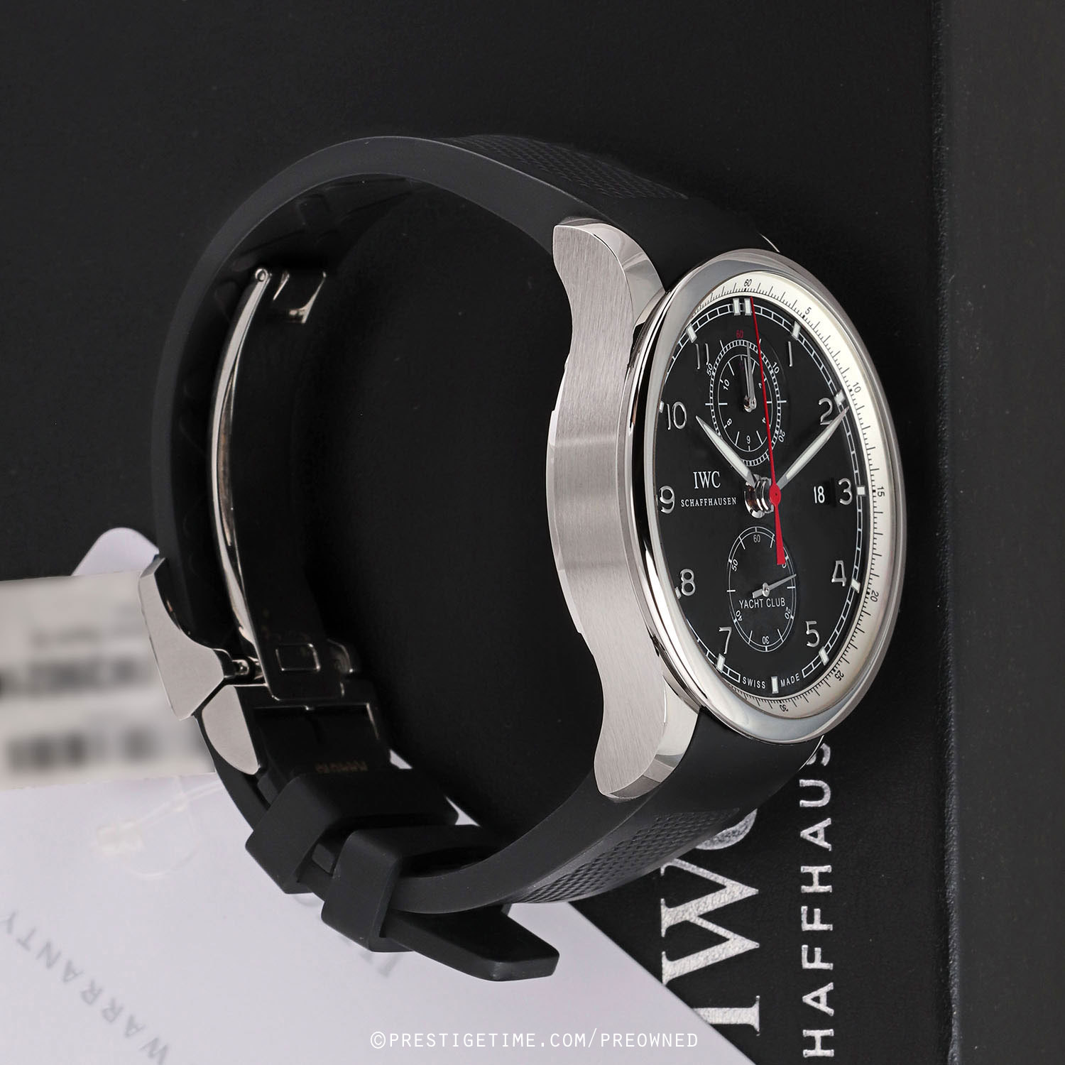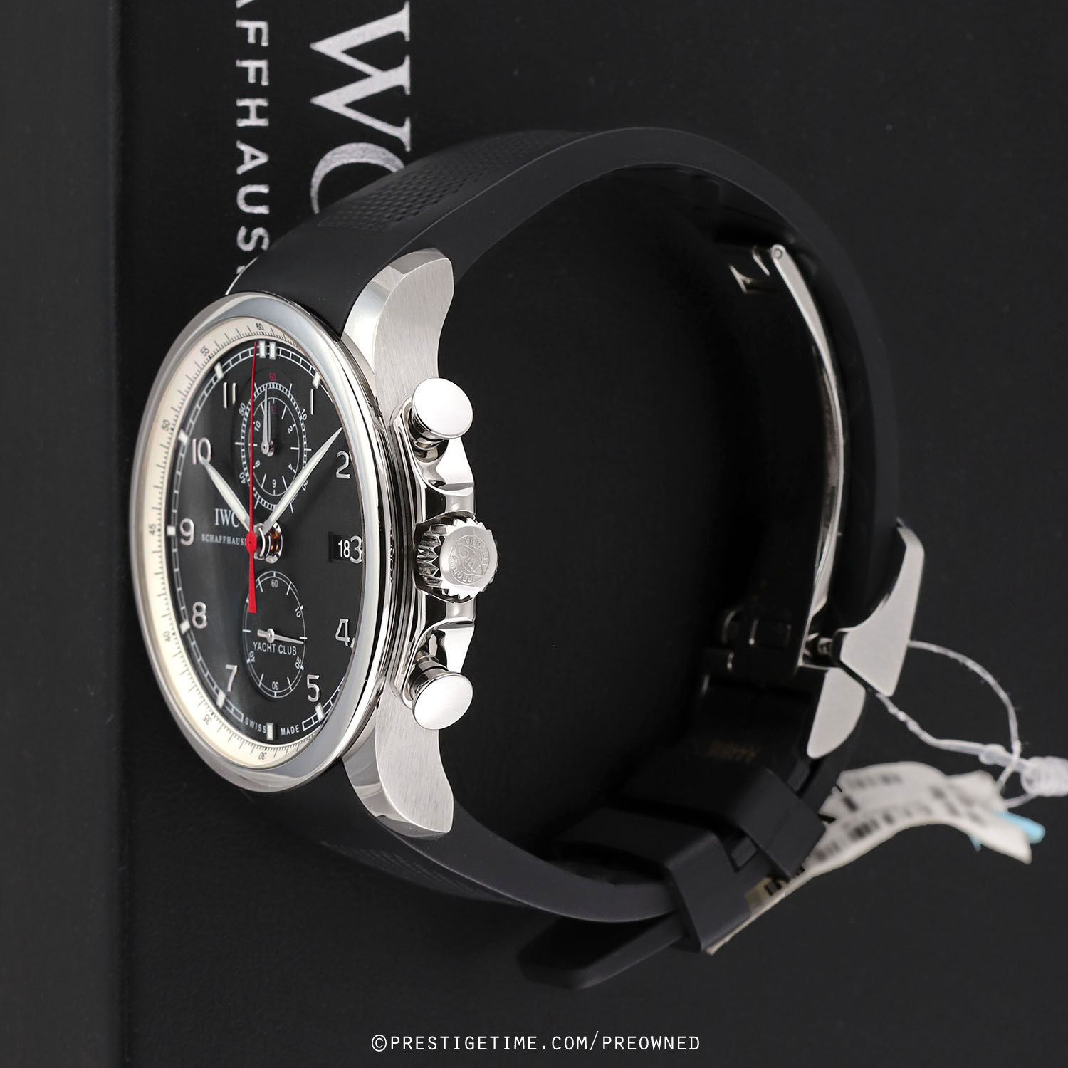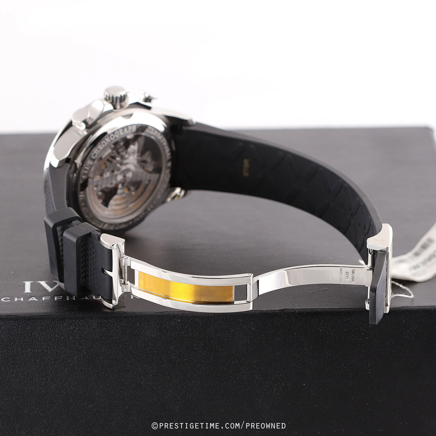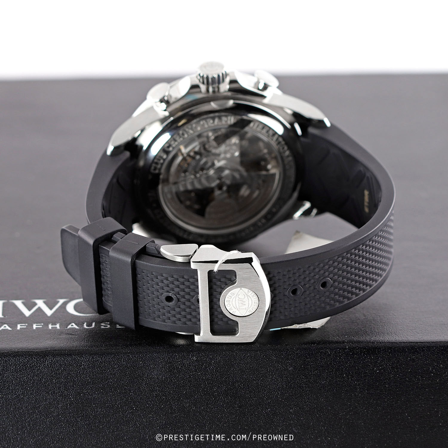 Strap: Fitted on its original IWC black rubber strap with a stainless steel deployant buckle. The strap is unworn in new condition.