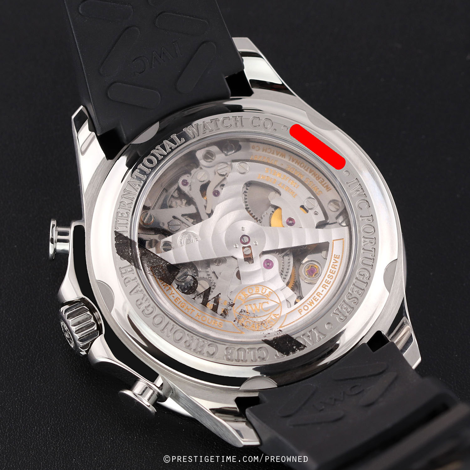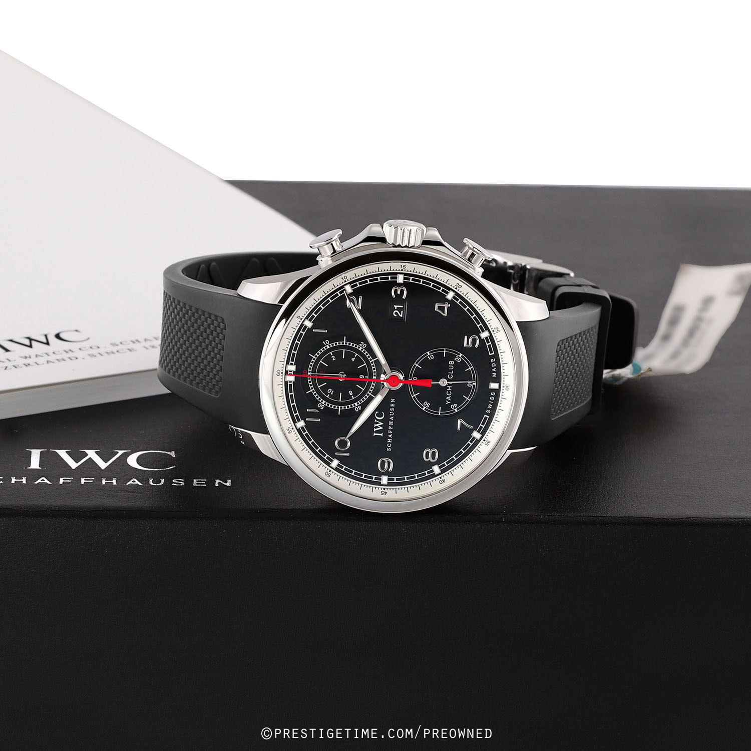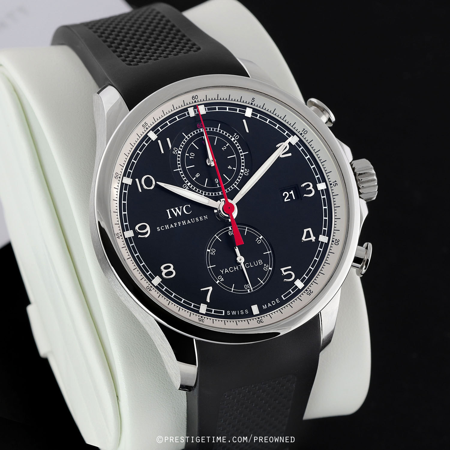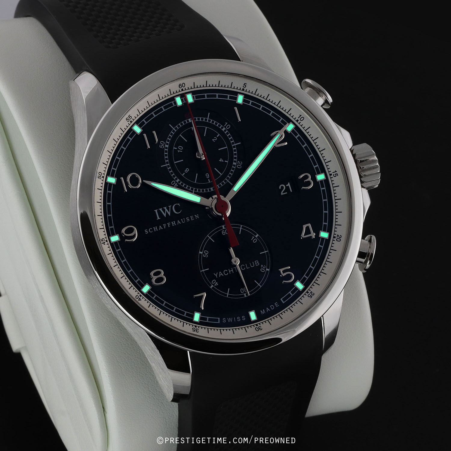 Strap: Fitted on its original IWC black rubber strap with a stainless steel deployant buckle. The strap is unworn in new condition.