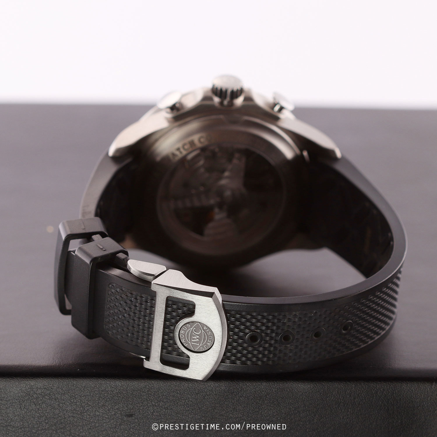 Strap: Fitted on its original IWC black rubber strap with a titanium deployant buckle. The strap is in very good condition with plenty of it wear lifespan remaining. We would be comfortable rating the strap as in 90% condition.
