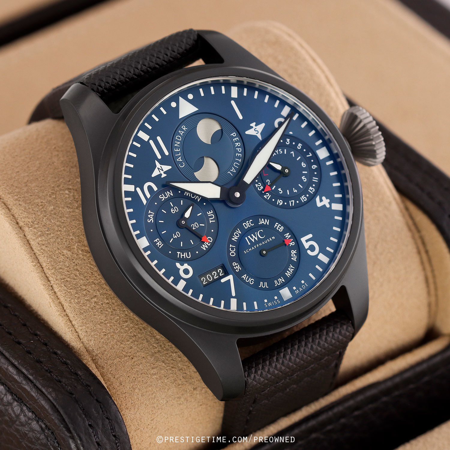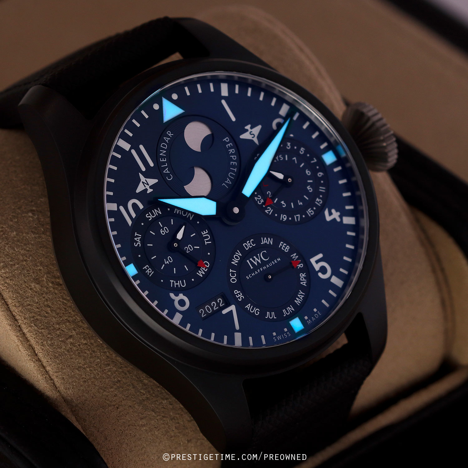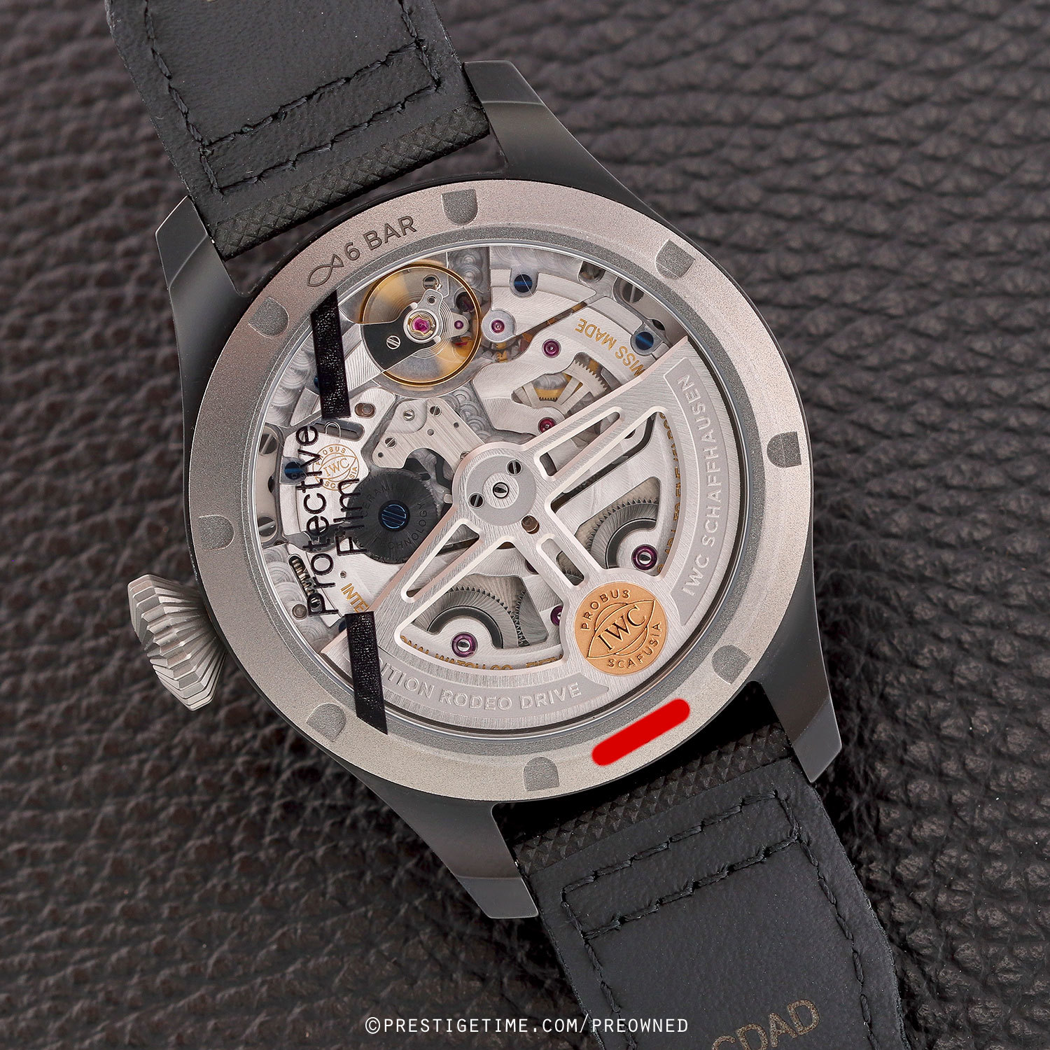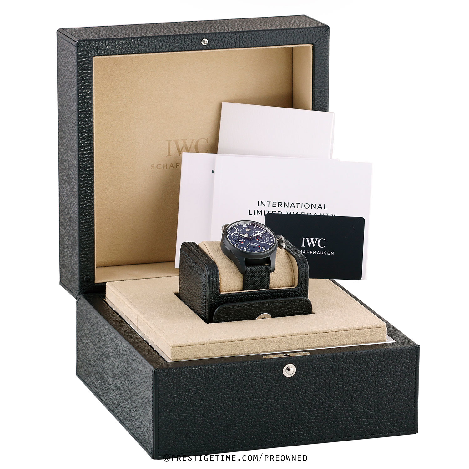 Strap: Fitted on its IWC original black calfskin leather strap with a titanium deployant buckle. The strap is unworn in new condition with its full wear lifespan remaining.
