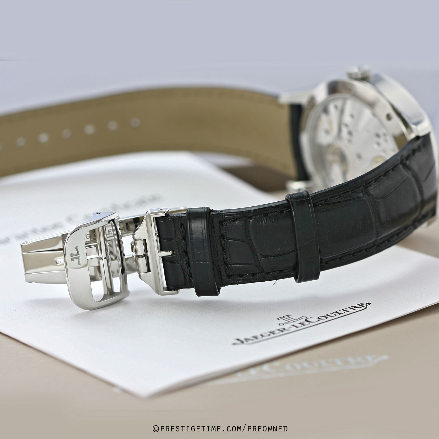 Fitted on its original, barely worn, black alligator strap with a deployant buckle.