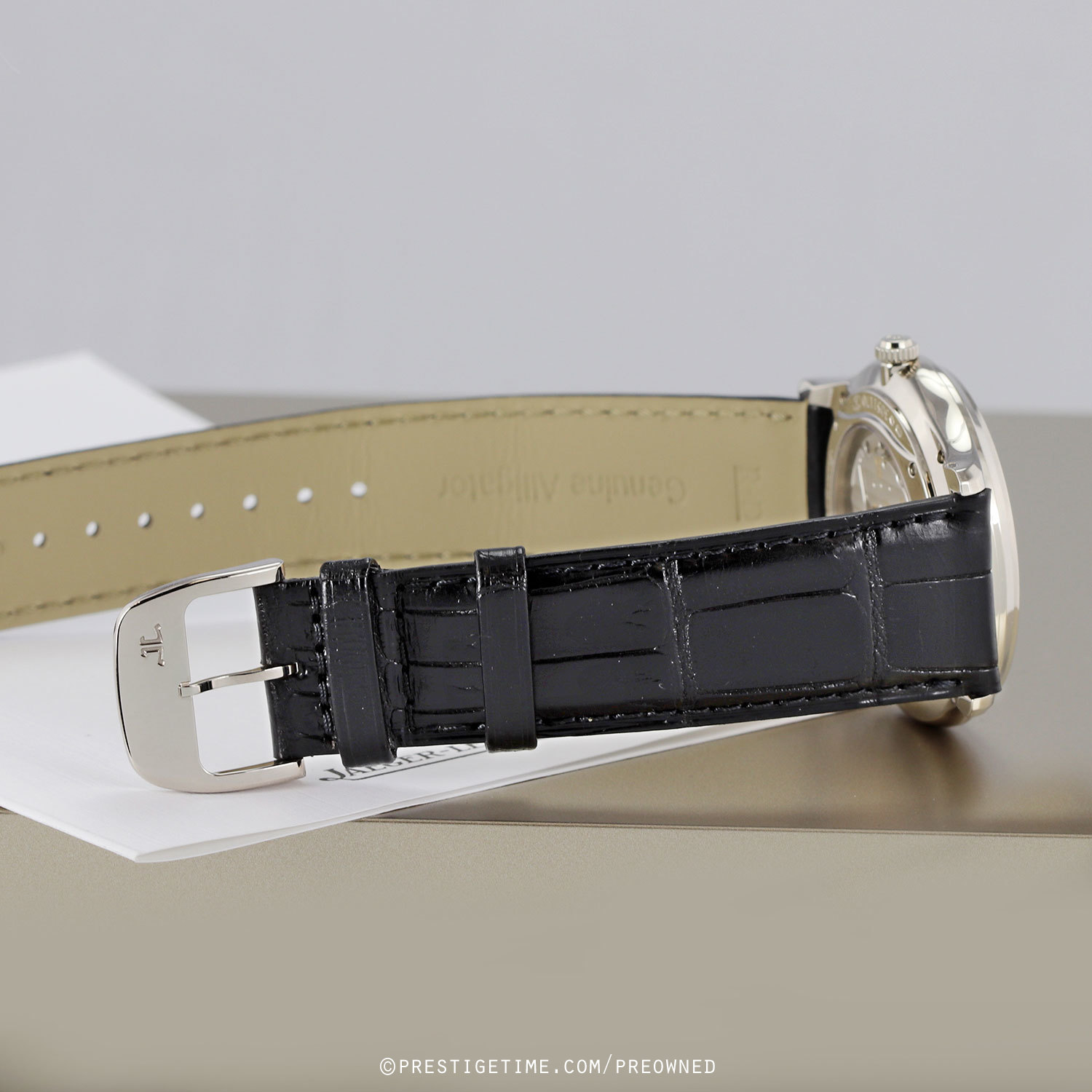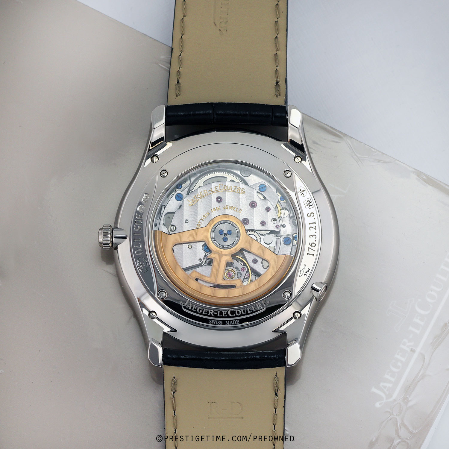 Movement: Powered by a JLC in-house caliber 868 which beats at 28,800 vph, contains 46 jewels & has an approximate power reserve of 43 hours. 1000 Hour Master Control test.