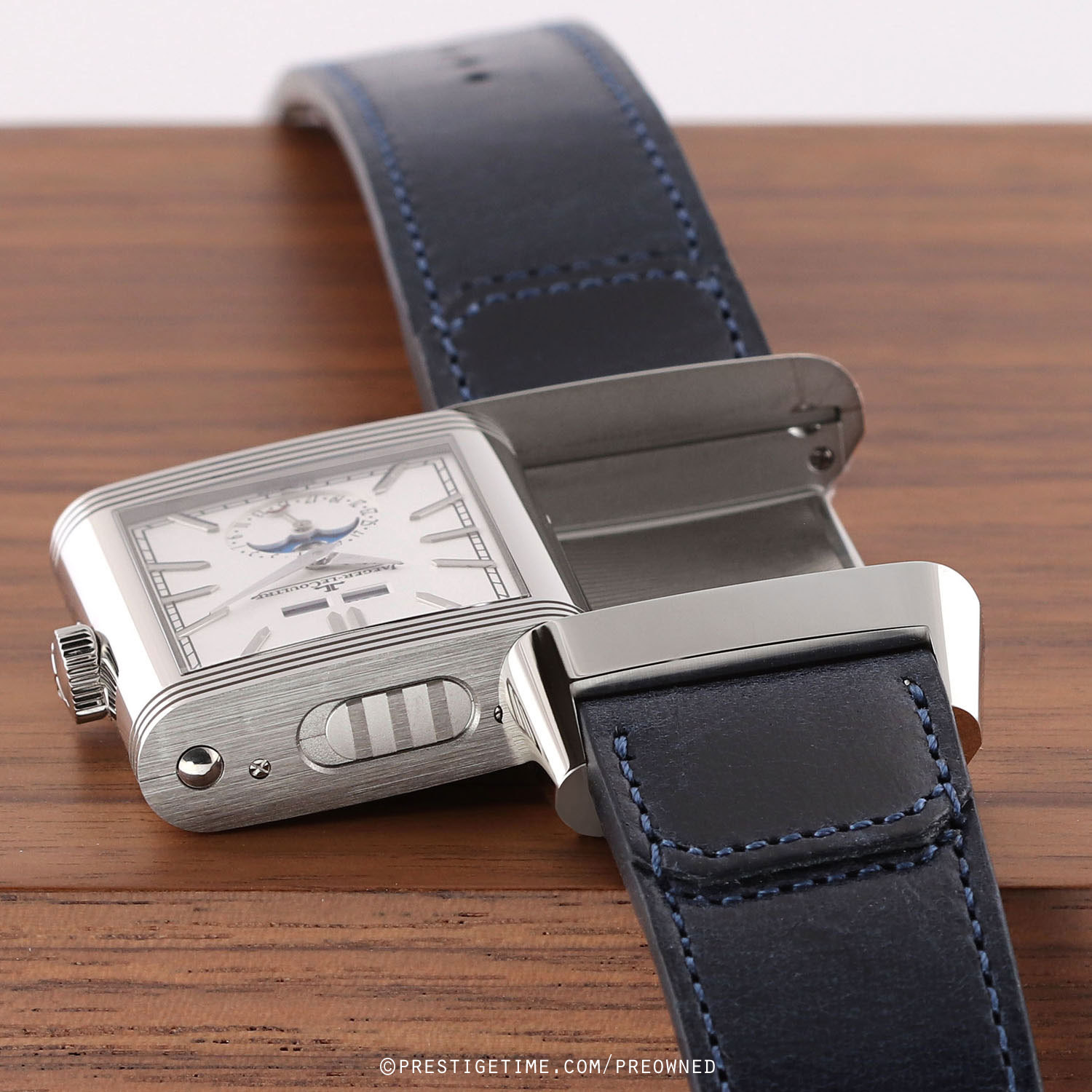 - Fitted on its original Jaeger LeCoultre Casa Fagliano blue cordovan leather strap with a stainless steel deployant buckle. The strap is in excellent, near new condition with the majority of it wear lifespan remaining. We would be comfortable rating the strap as in 98%+ condition.
